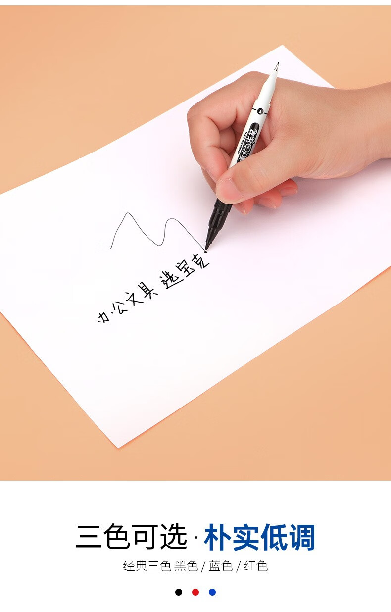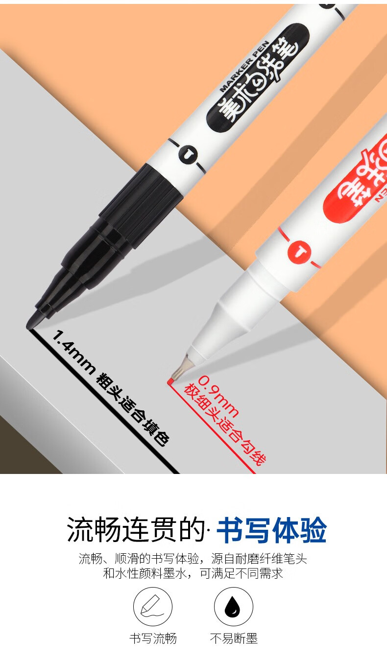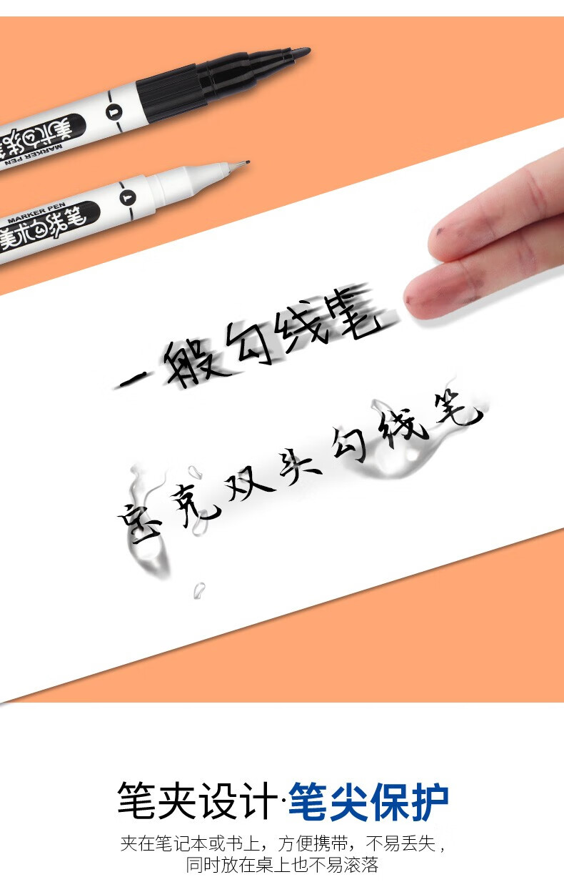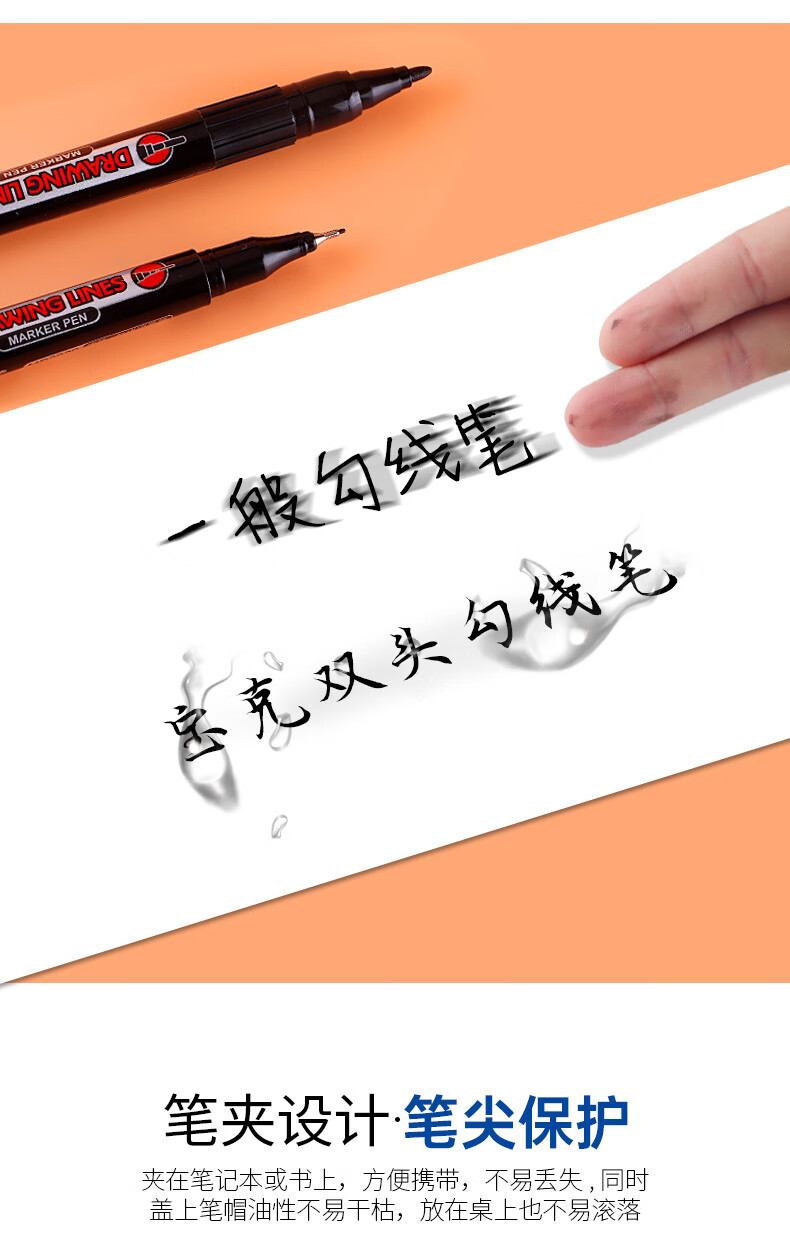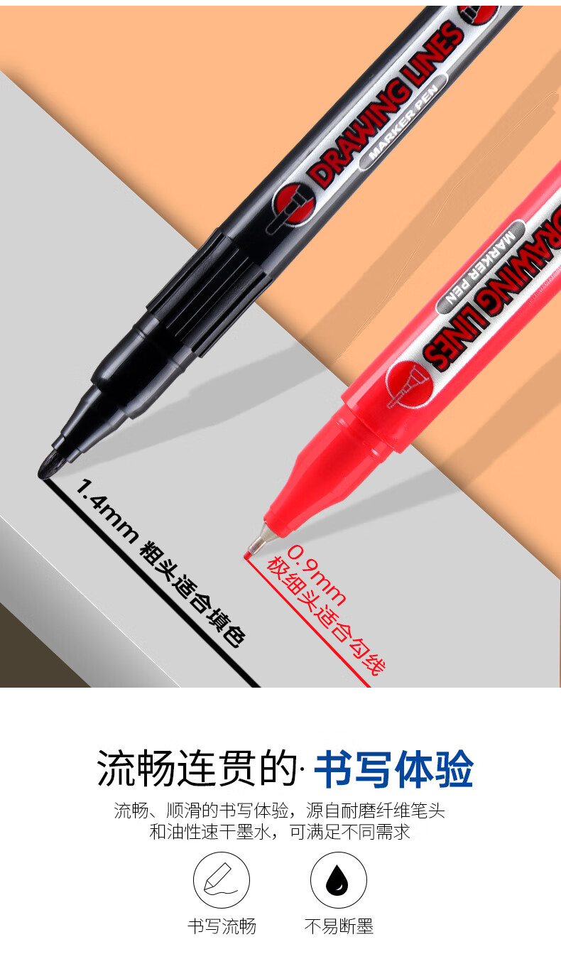 宝克(BAOKE)MP2934 美术勾线笔 大小双头办公记号笔 会议签字笔 学习标记办公文具 黑色【不可加墨款 水性墨水 无气味】 单支体验装