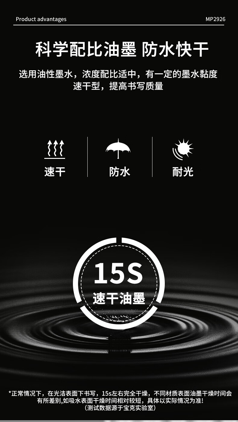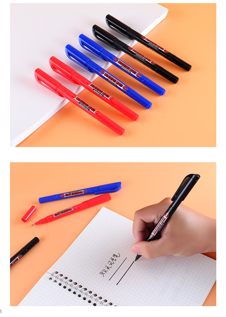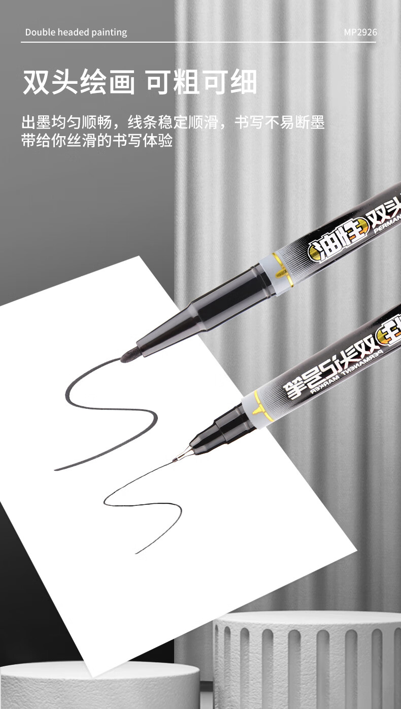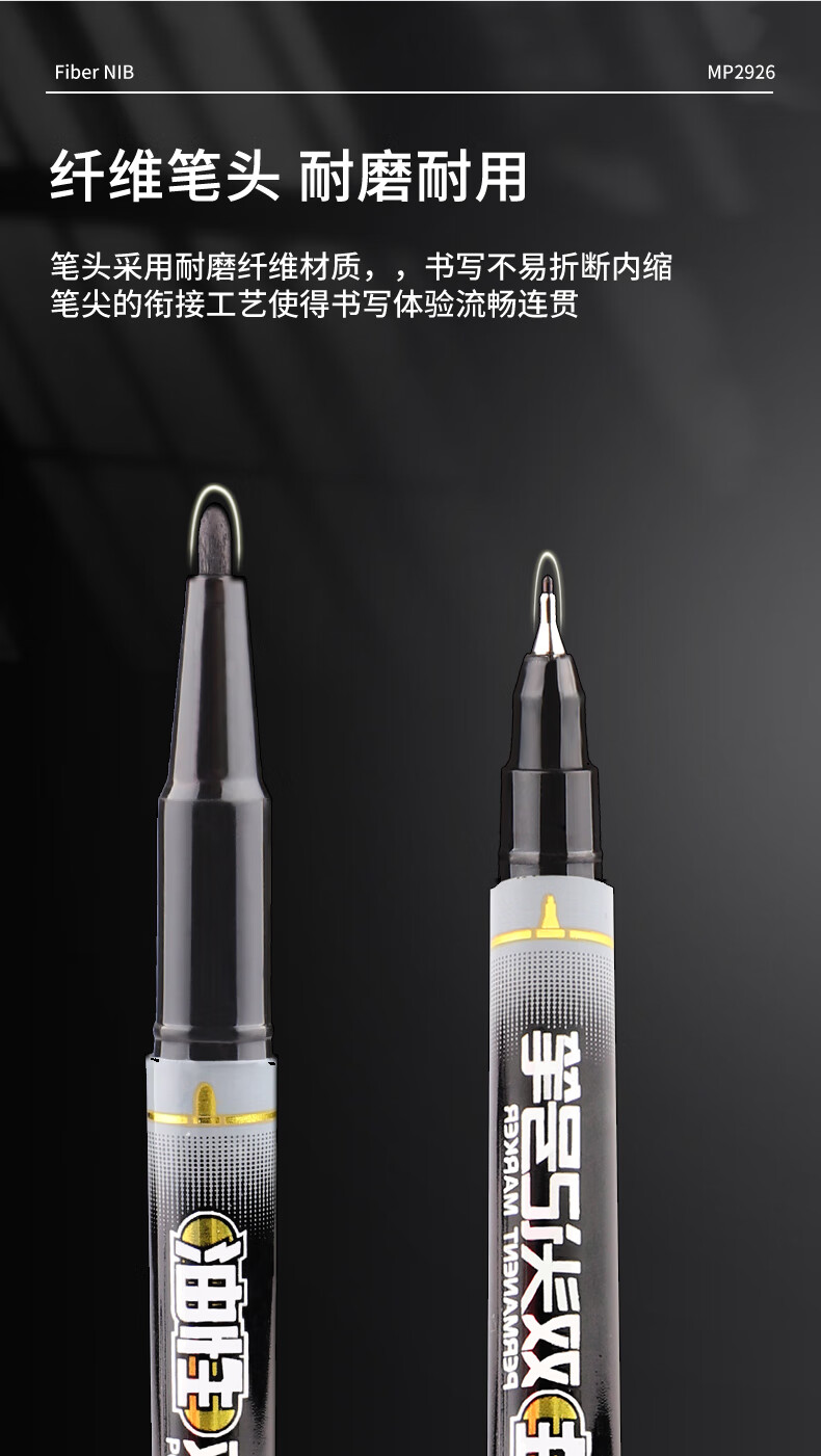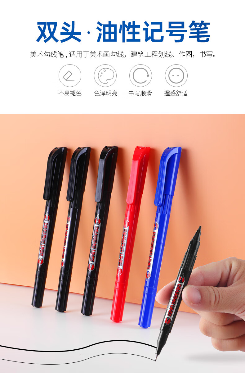 宝克(BAOKE)MP2934 美术勾线笔 大小双头办公记号笔 会议签字笔 学习标记办公文具 黑色【不可加墨款 水性墨水 无气味】 单支体验装