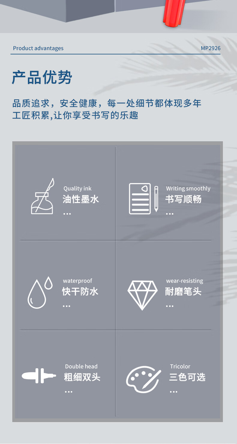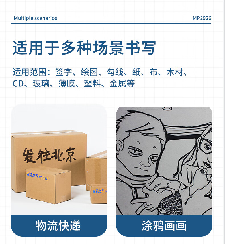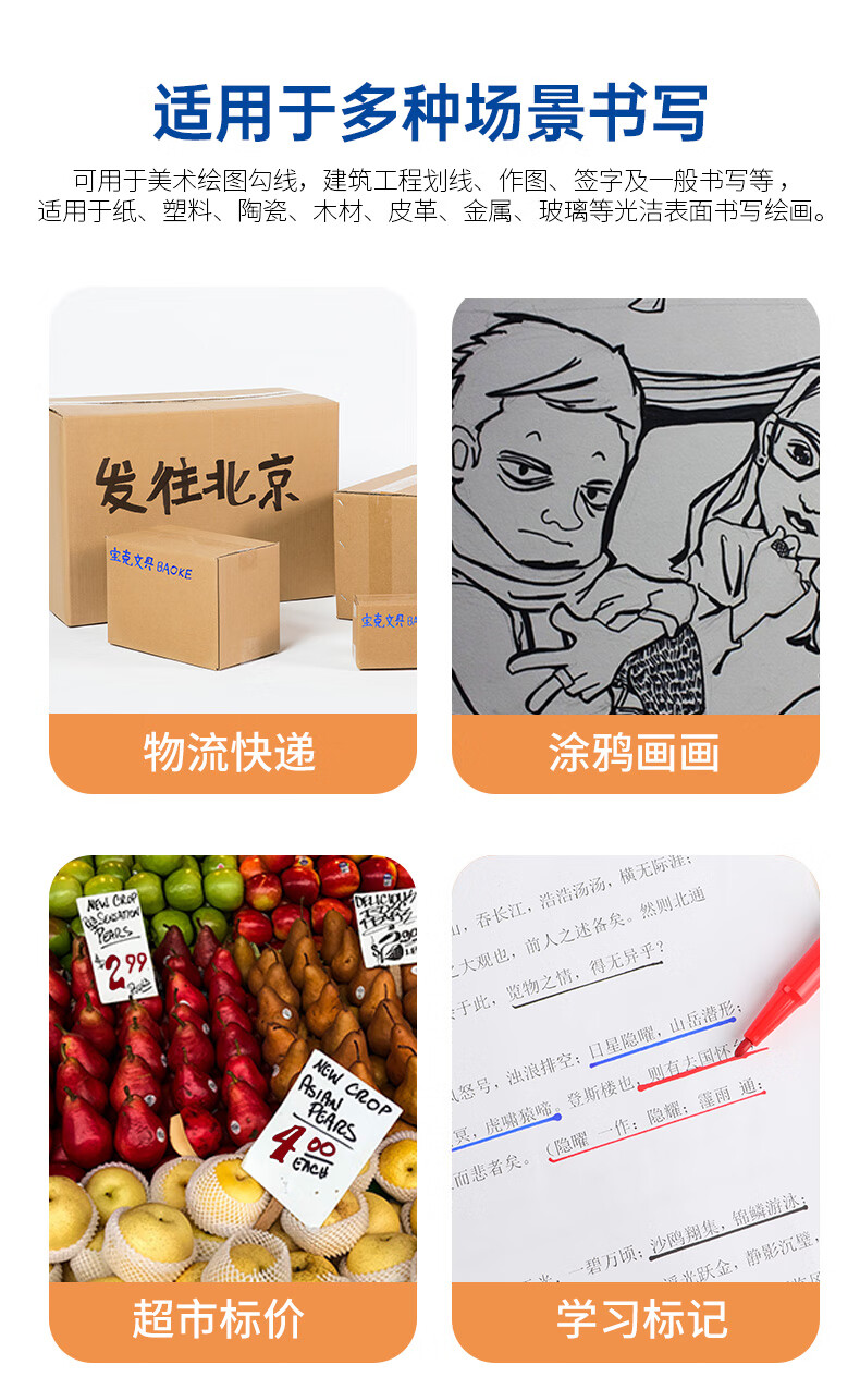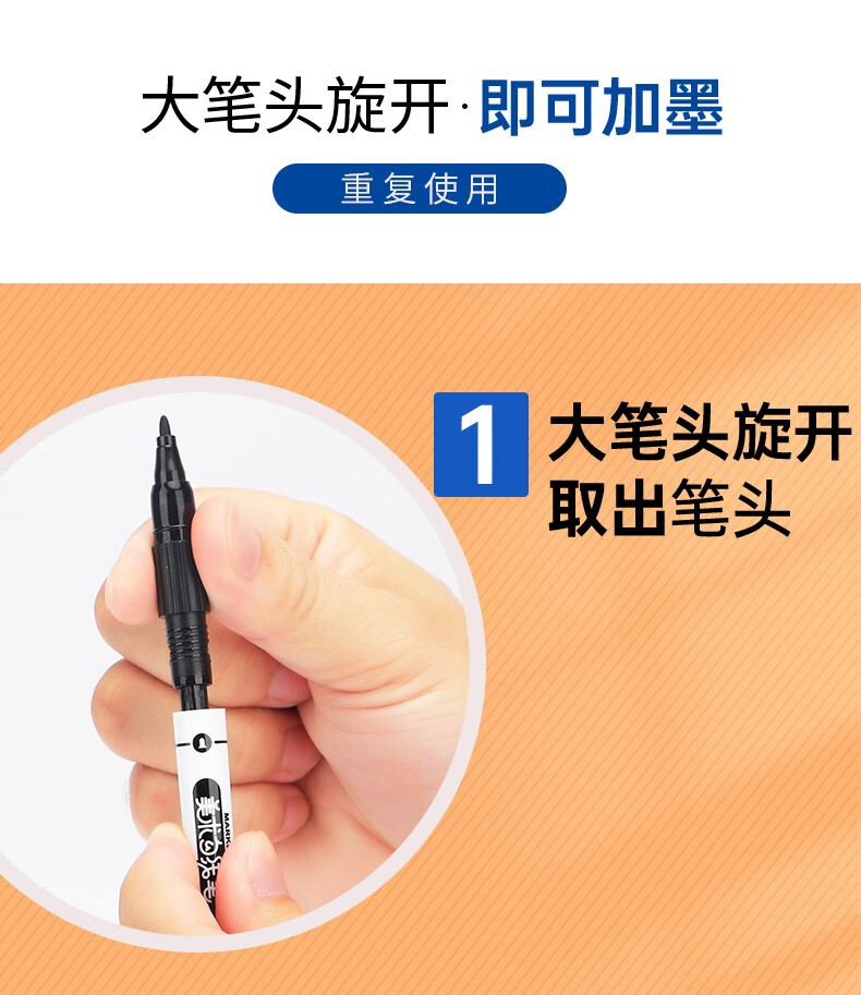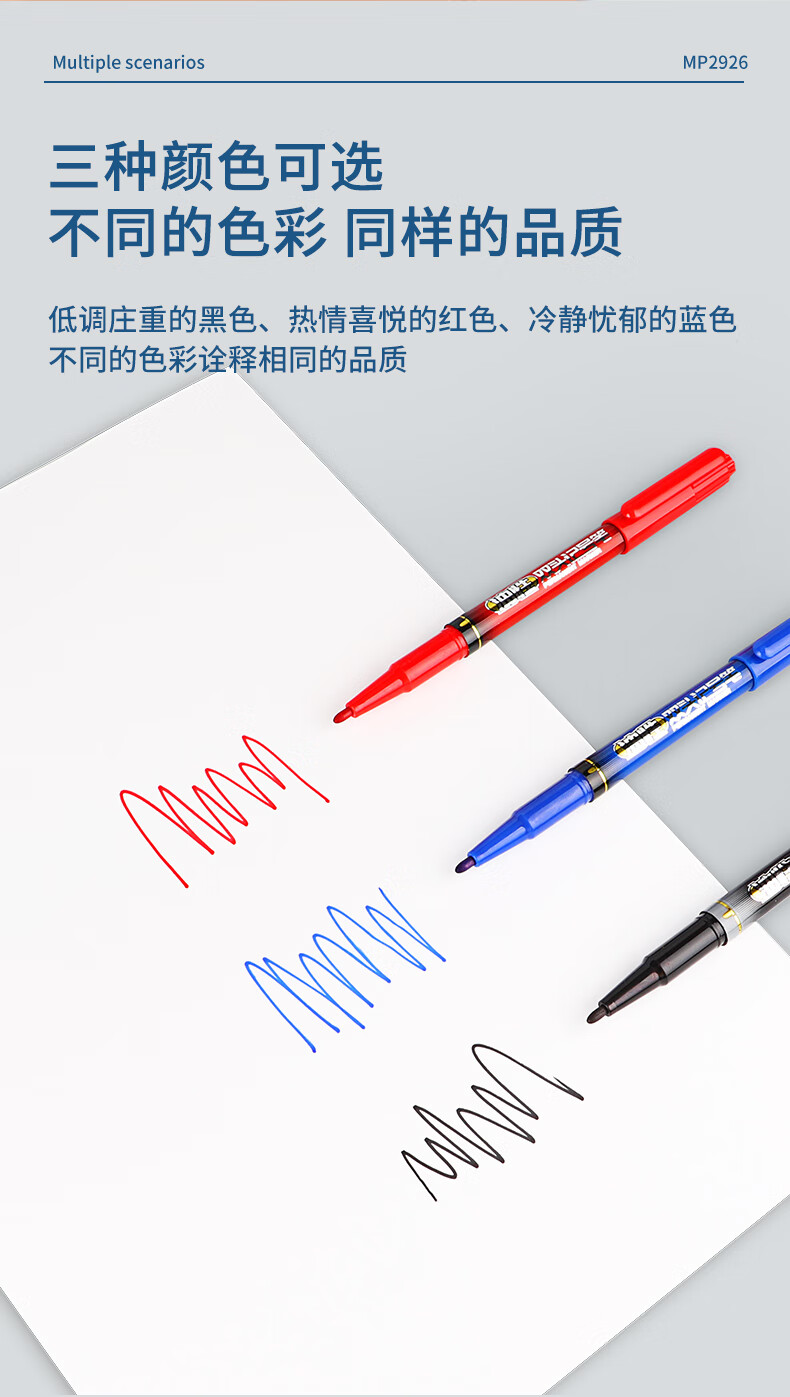 宝克(BAOKE)MP2934 美术勾线笔 大小双头办公记号笔 会议签字笔 学习标记办公文具 黑色【不可加墨款 水性墨水 无气味】 单支体验装