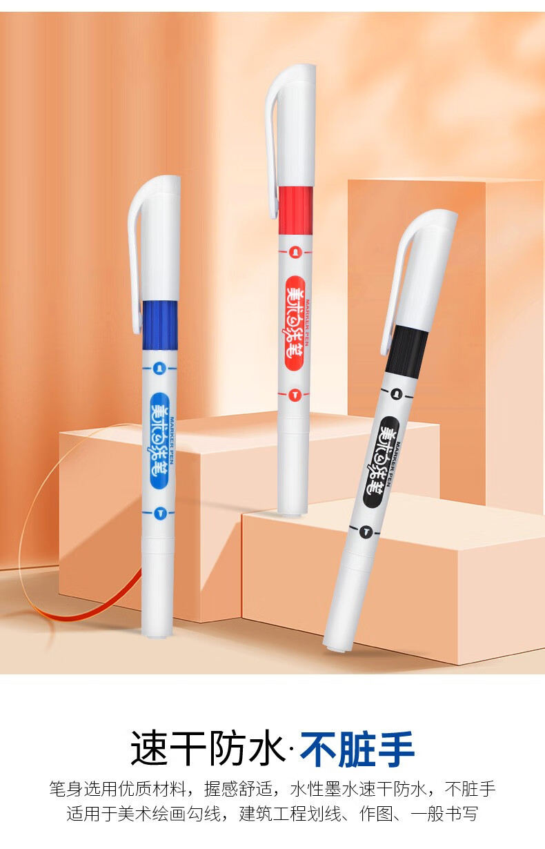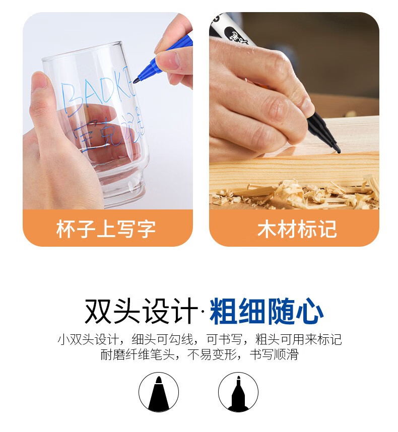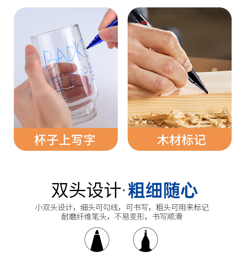 得力(deli)粗细双头物流记号笔 办公会议签字笔标记马克笔油性笔 儿童学生勾线笔12支/盒 S831 开学签名签到
