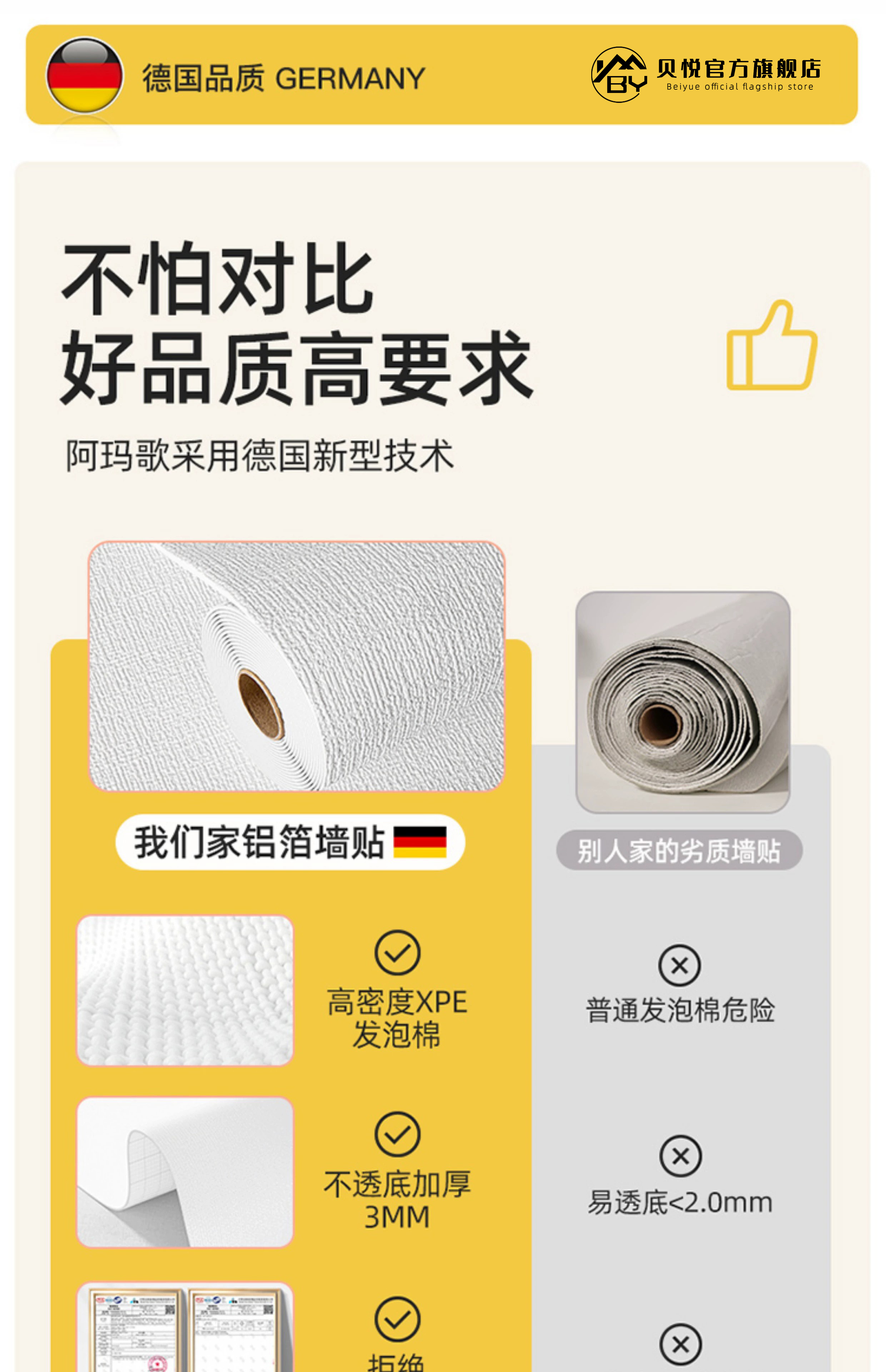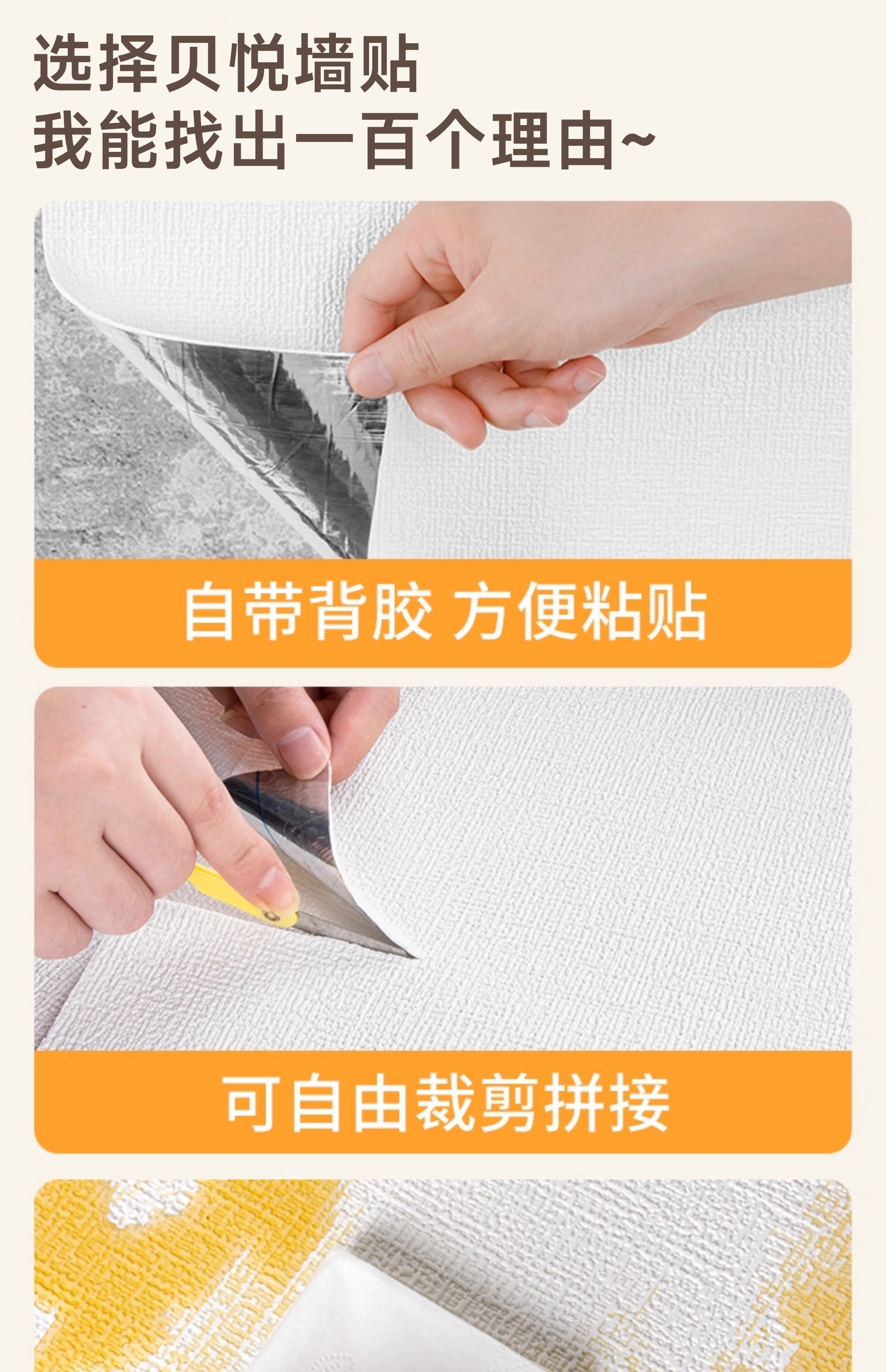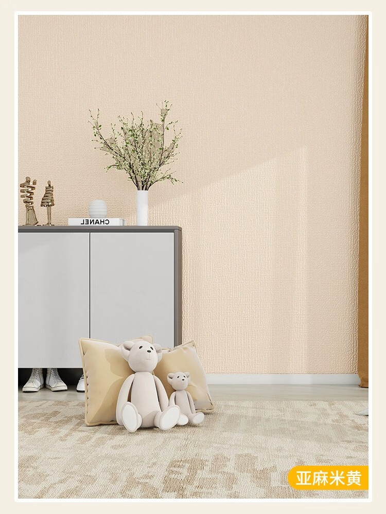 贝悦自粘墙纸墙面翻新遮丑墙贴卧室防水防潮宿舍立体墙贴纸客厅壁纸 米黄色 50米*75cm万墙可贴