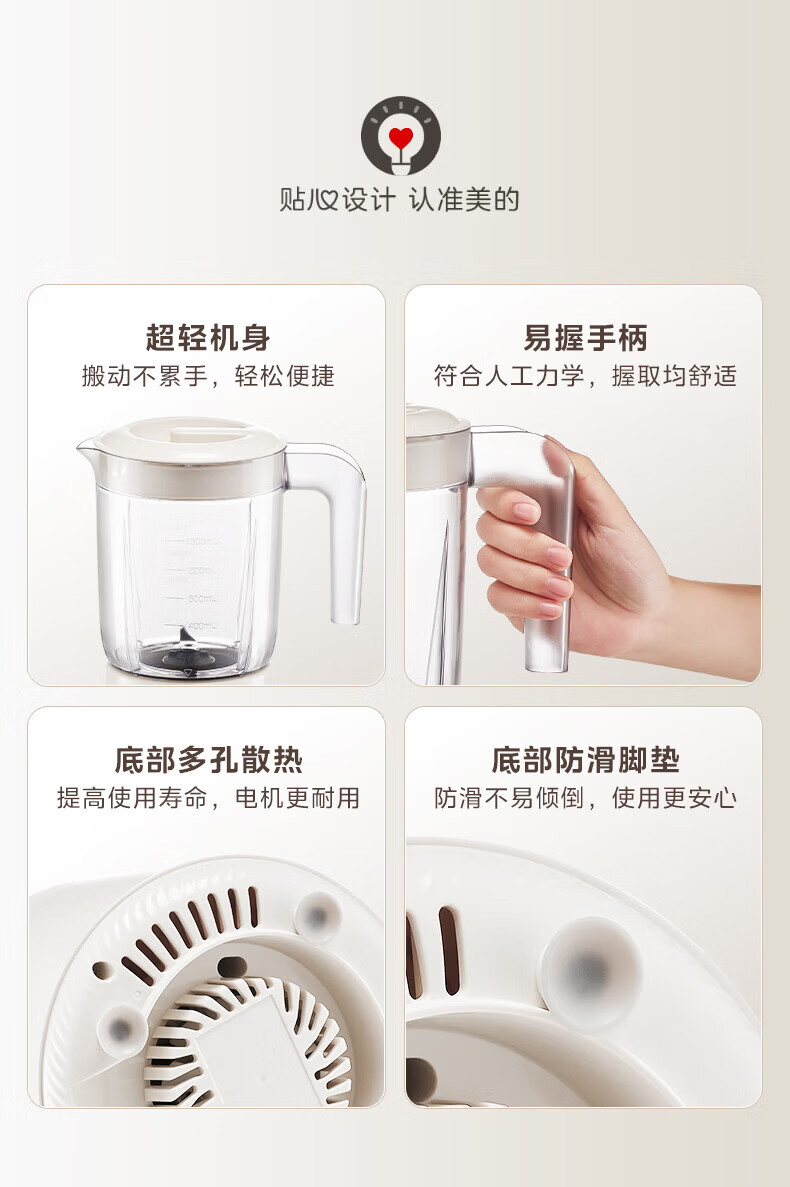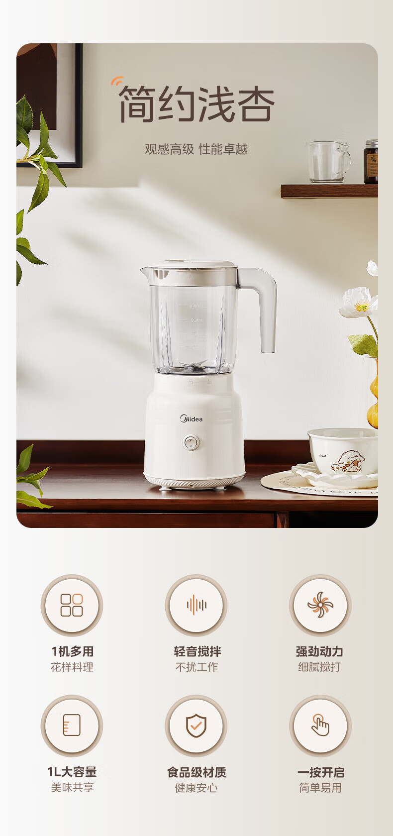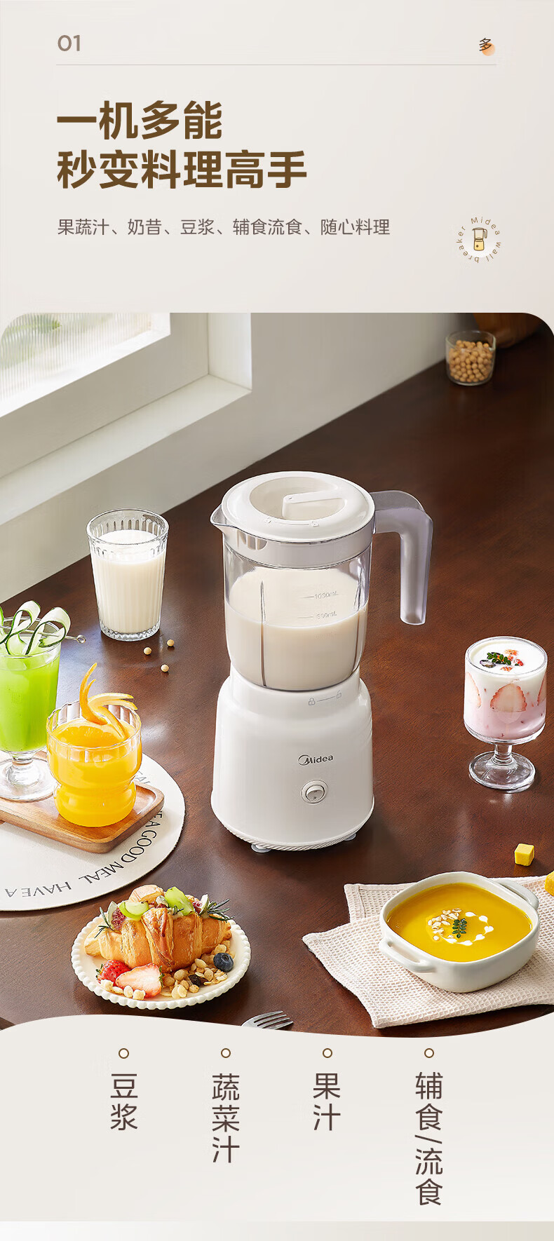 美的(Midea)家用多功能榨汁机料理机果汁豆浆大容量 轻音搅拌一键操控易清洗 打米糊果汁机婴儿辅食