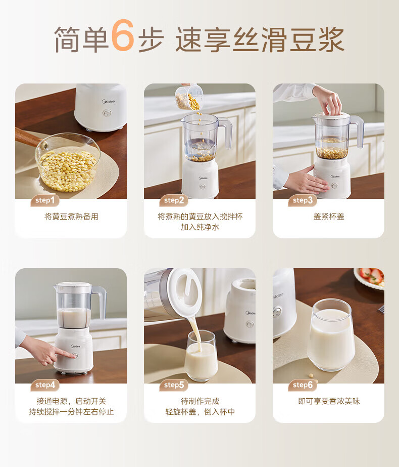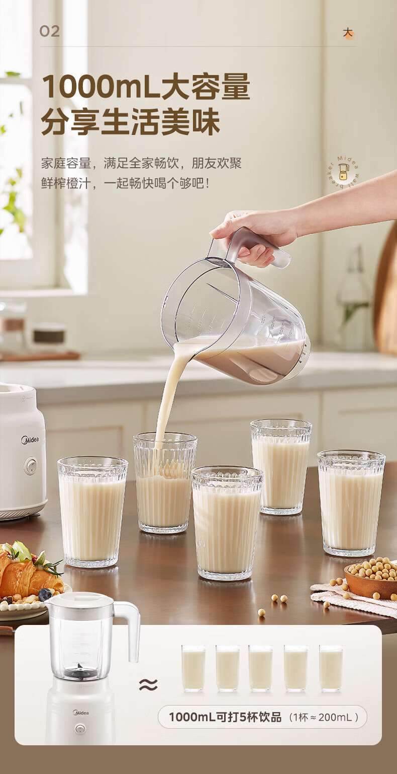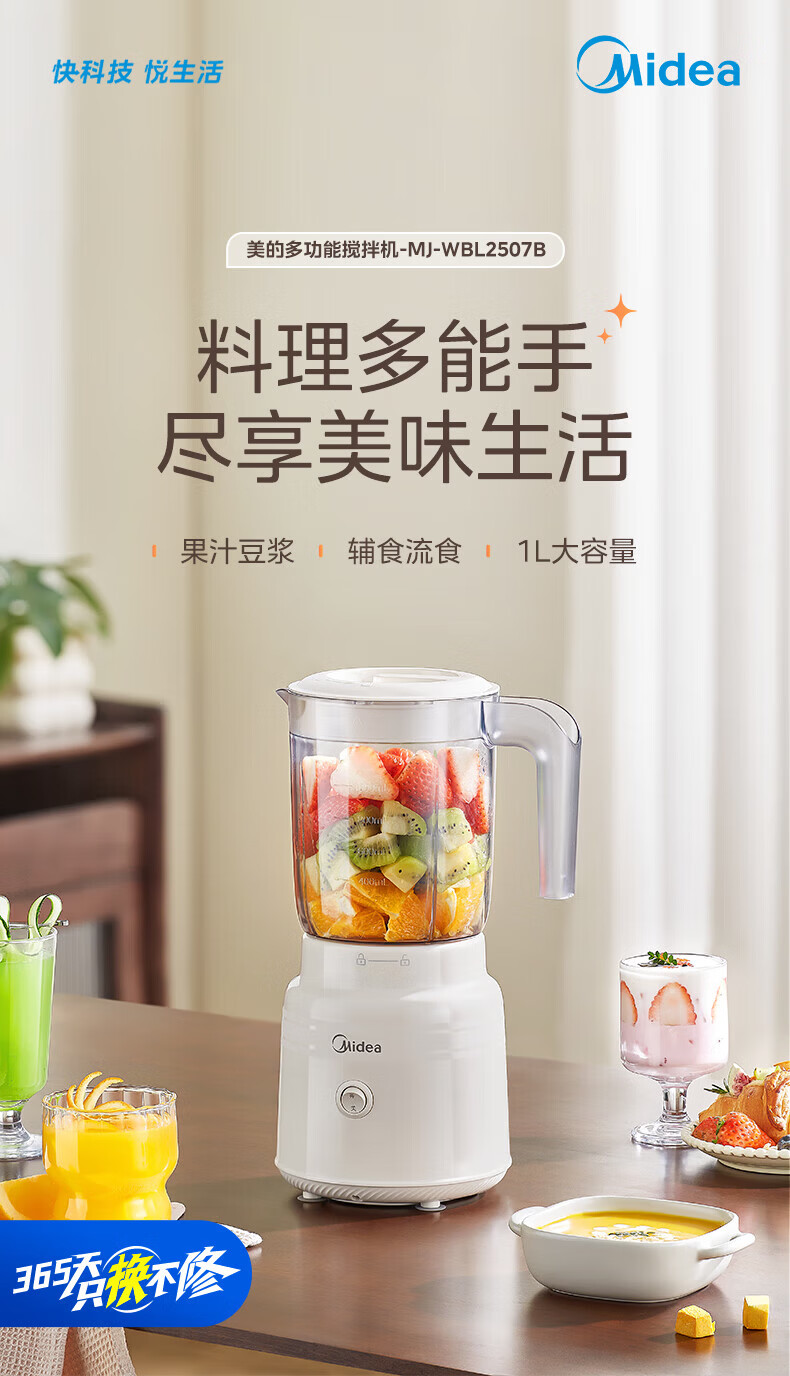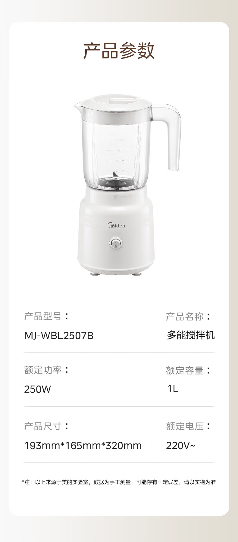 美的(Midea)家用多功能榨汁机料理机果汁豆浆大容量 轻音搅拌一键操控易清洗 打米糊果汁机婴儿辅食