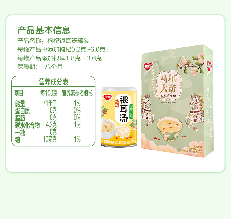 银鹭【节日礼盒】枸杞银耳汤270g*10罐0糖0脂年货节送礼抓马