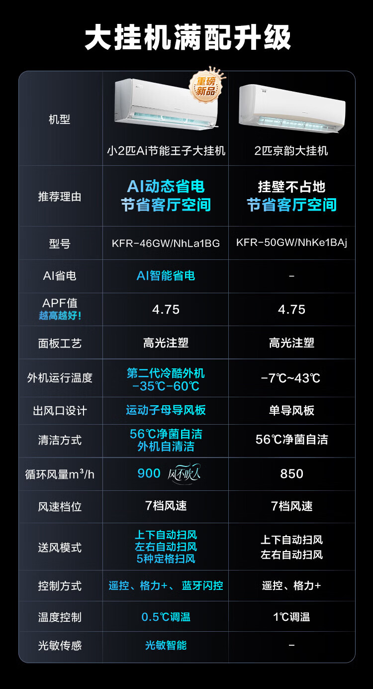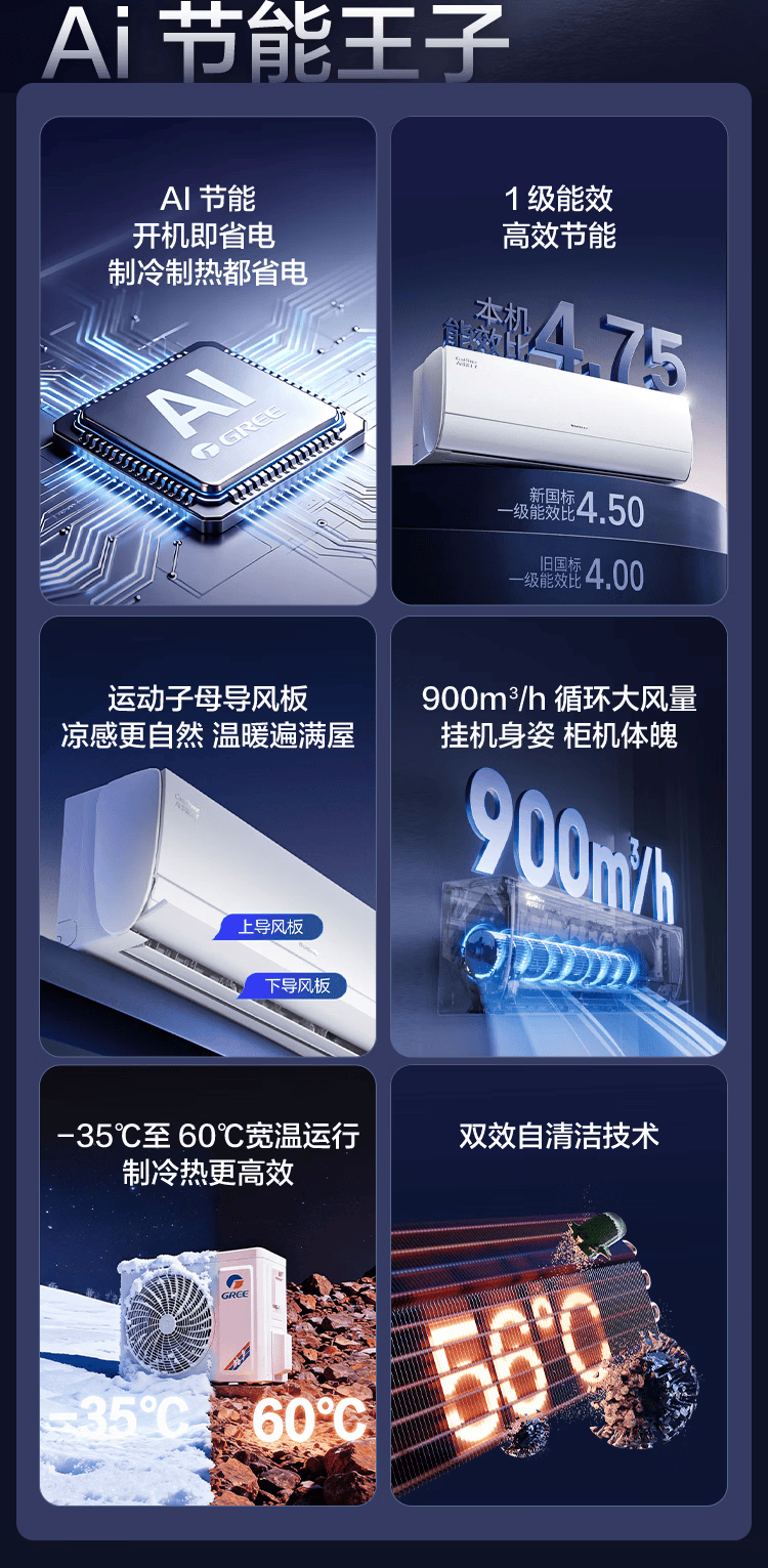 格力空调 Ai节能王子 2匹 新一级能效 变频冷暖 蒸发器双排铜管 客厅优选 壁挂式空调挂机 家电补贴 2匹 AI节能王子 Ai省电 内机双排铜管蒸发器