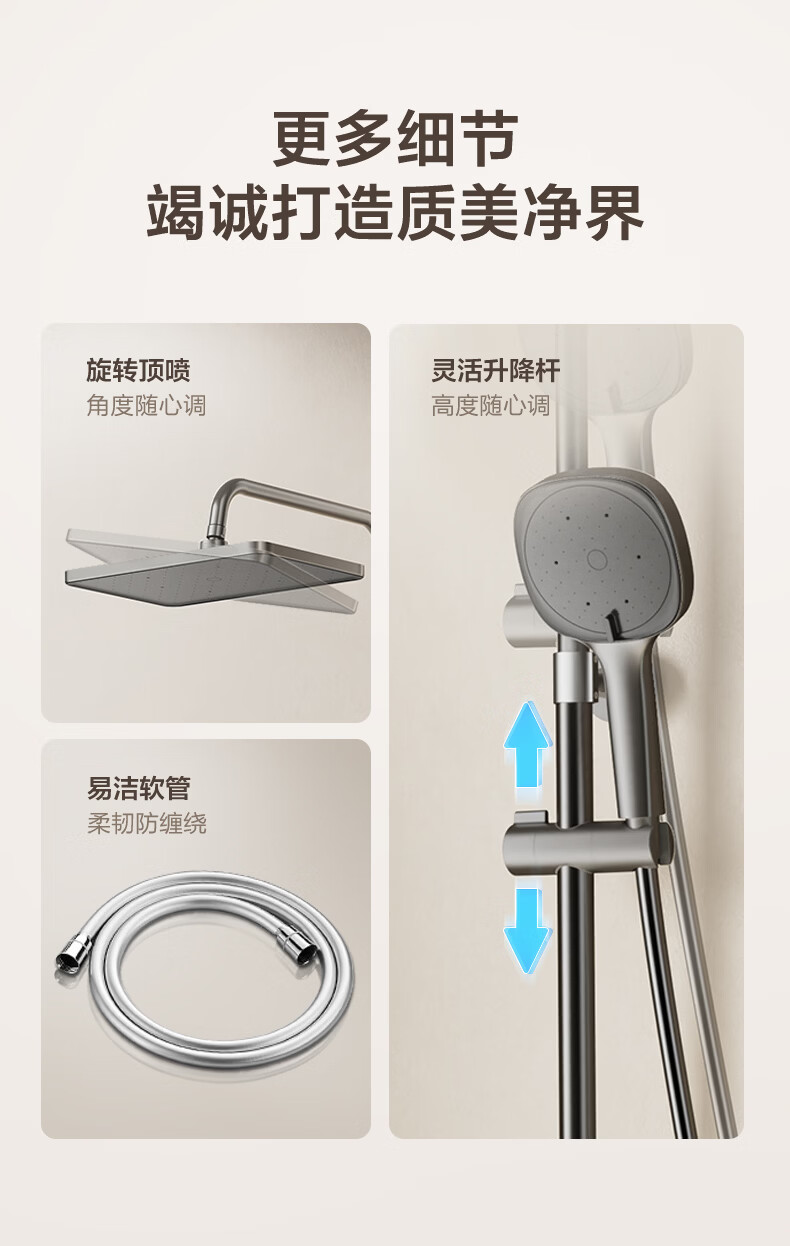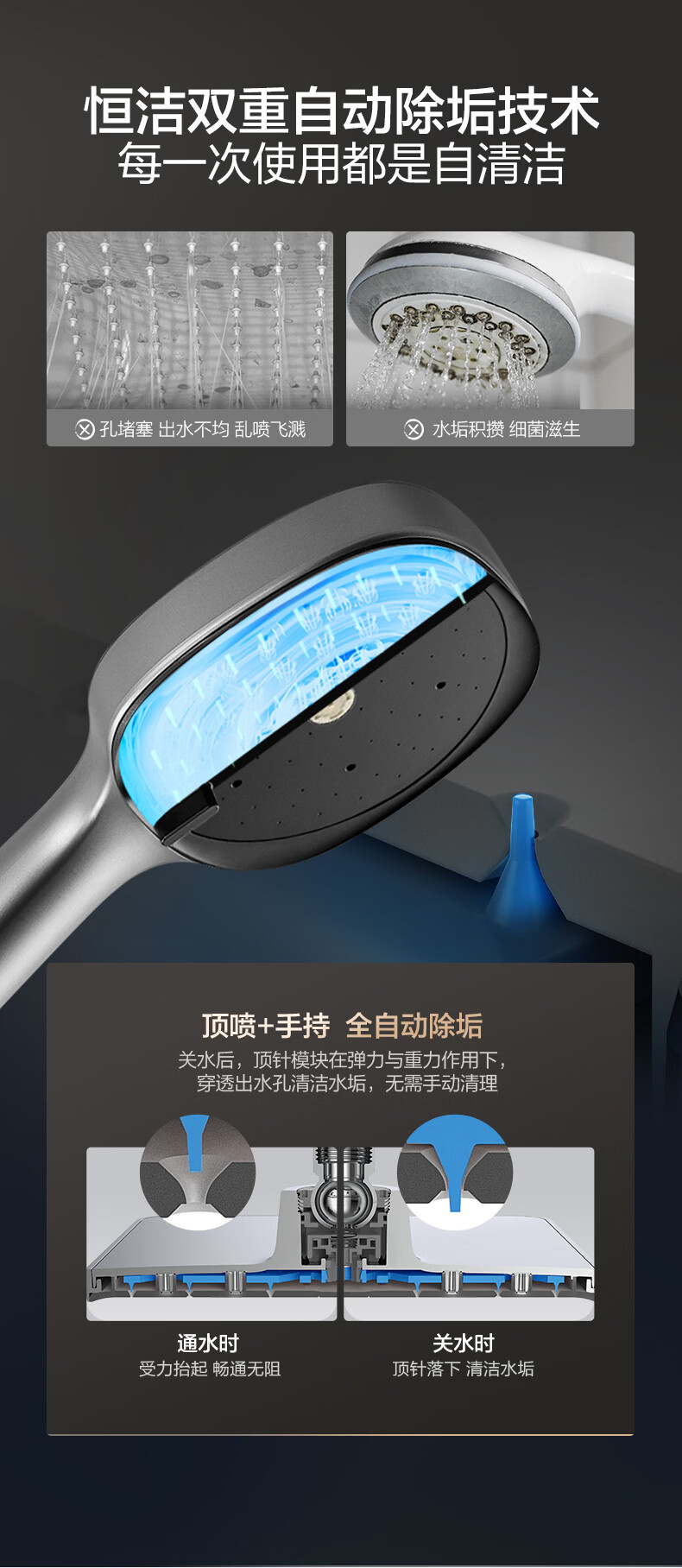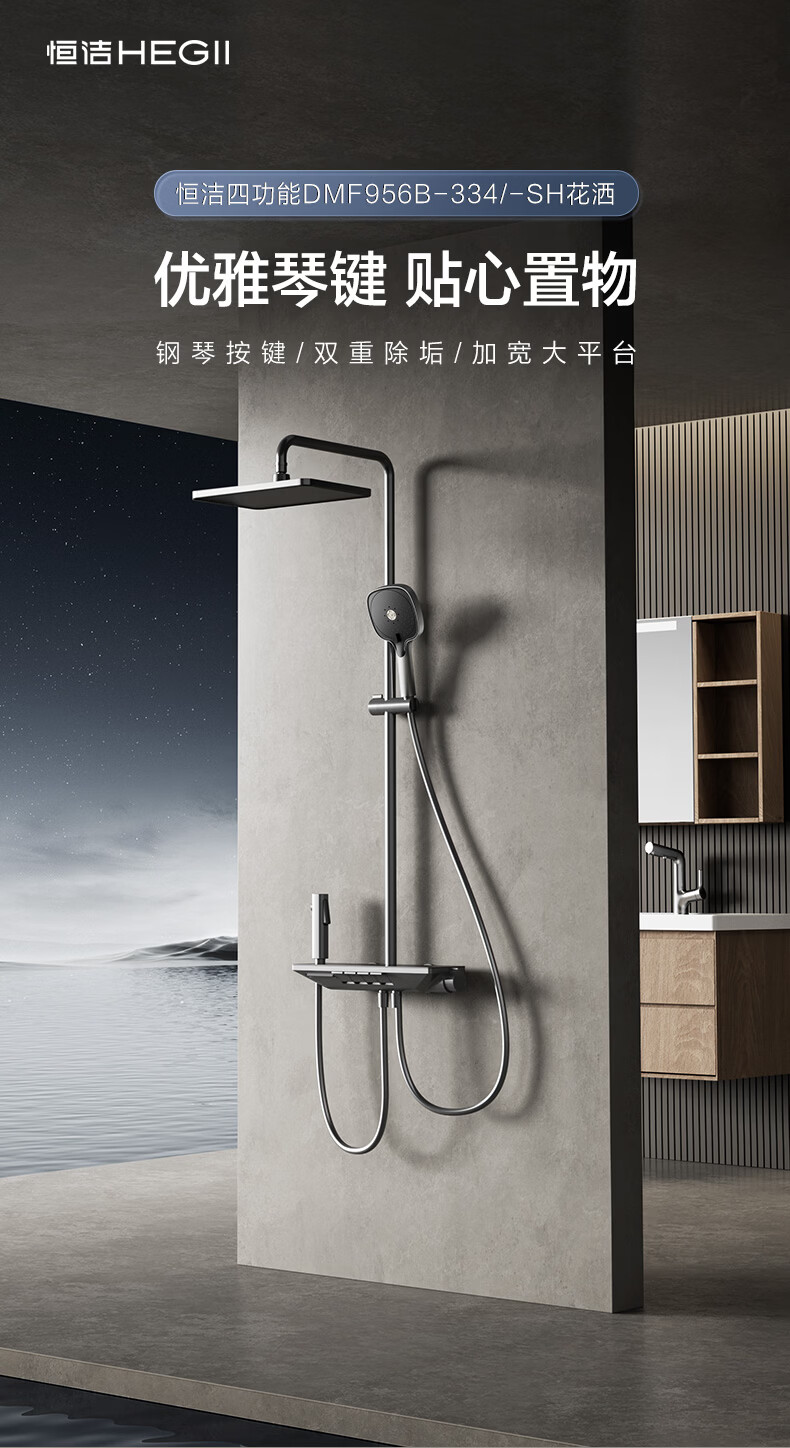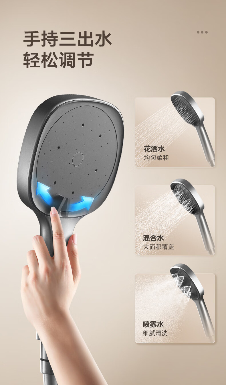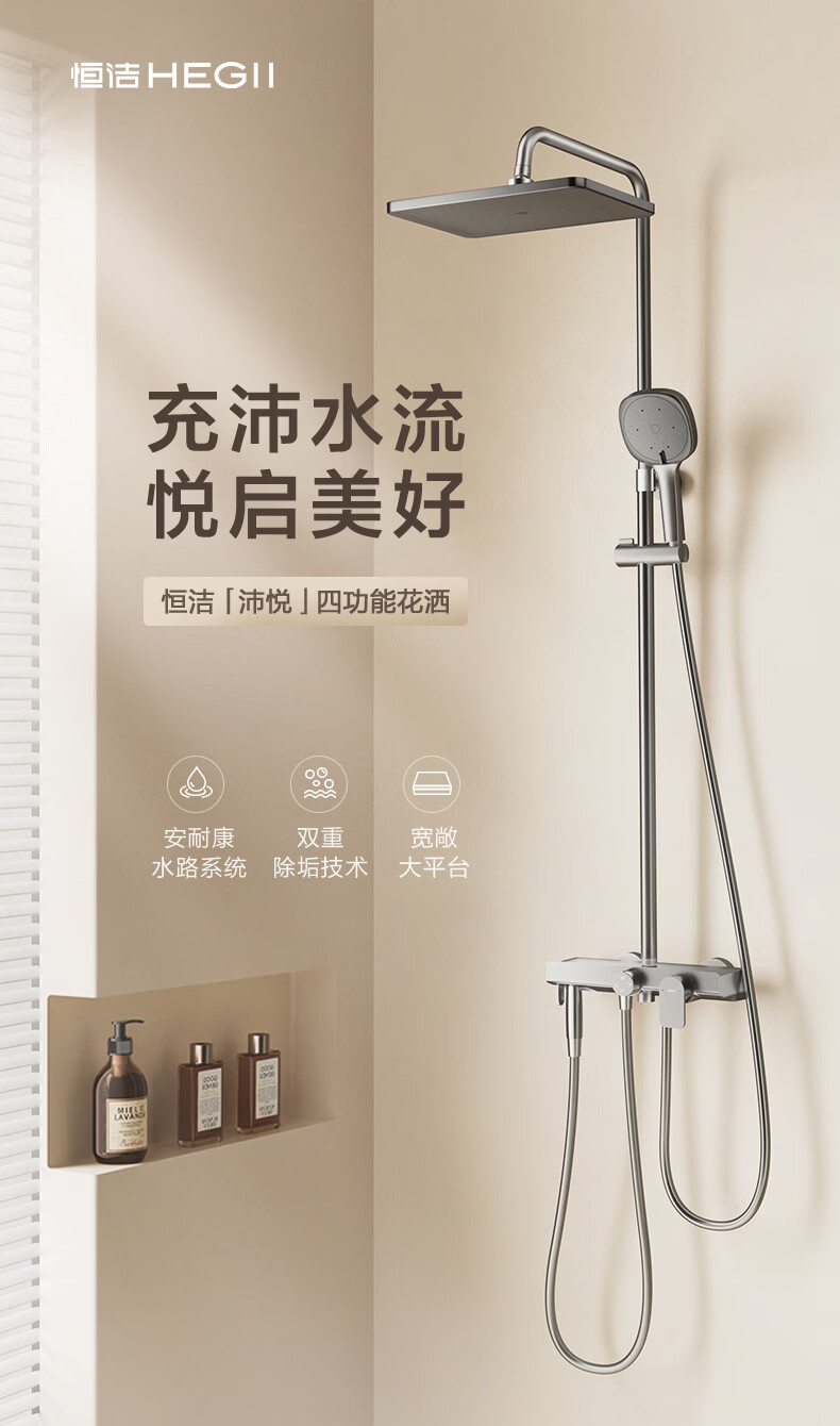 恒洁淋浴花洒套装浴室沐浴器淋雨明装喷枪易洁除垢卫生间家用936-333 【双重除垢】936银色