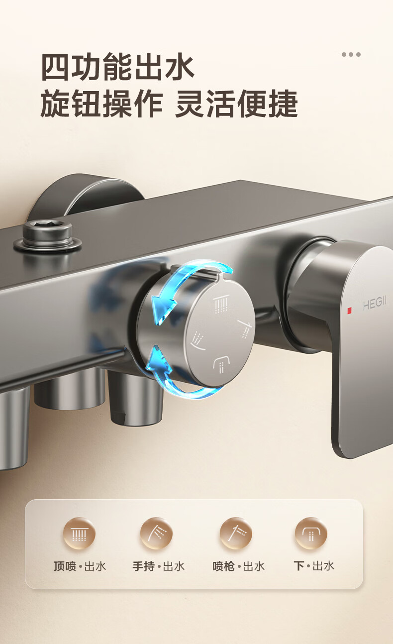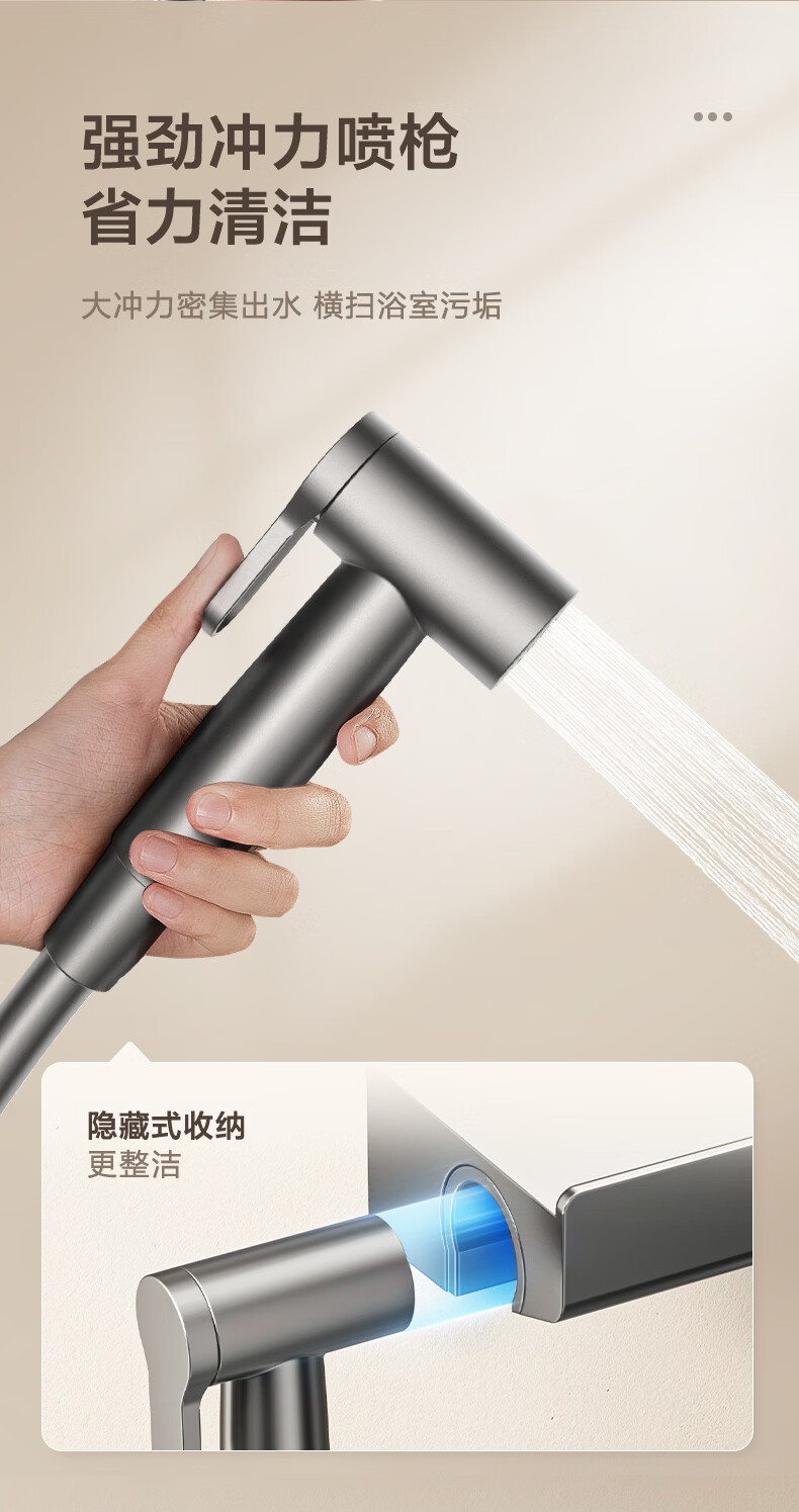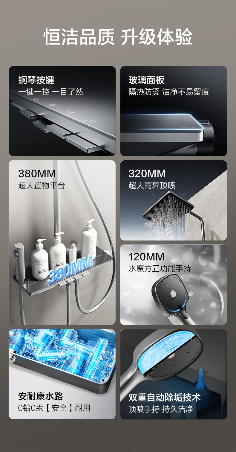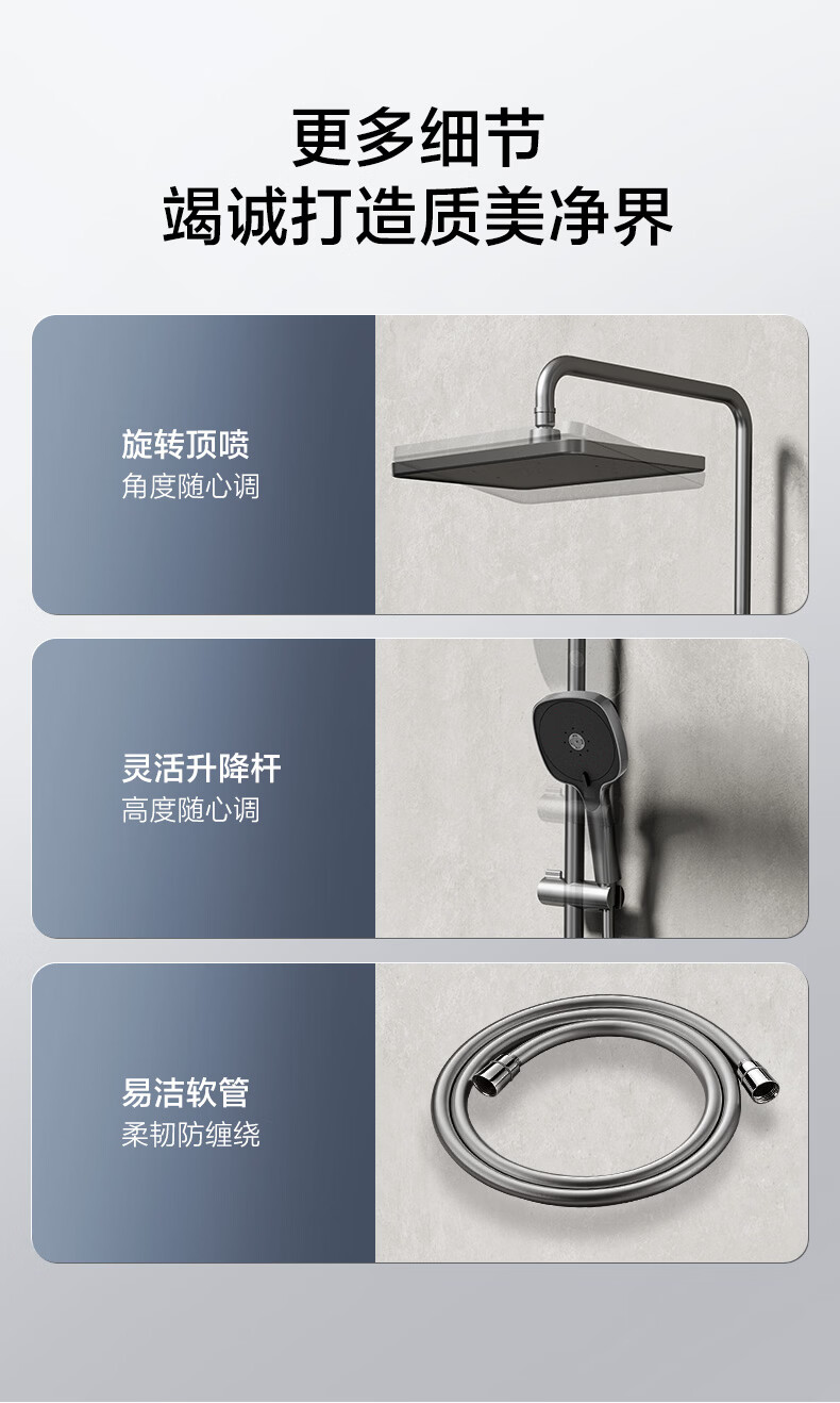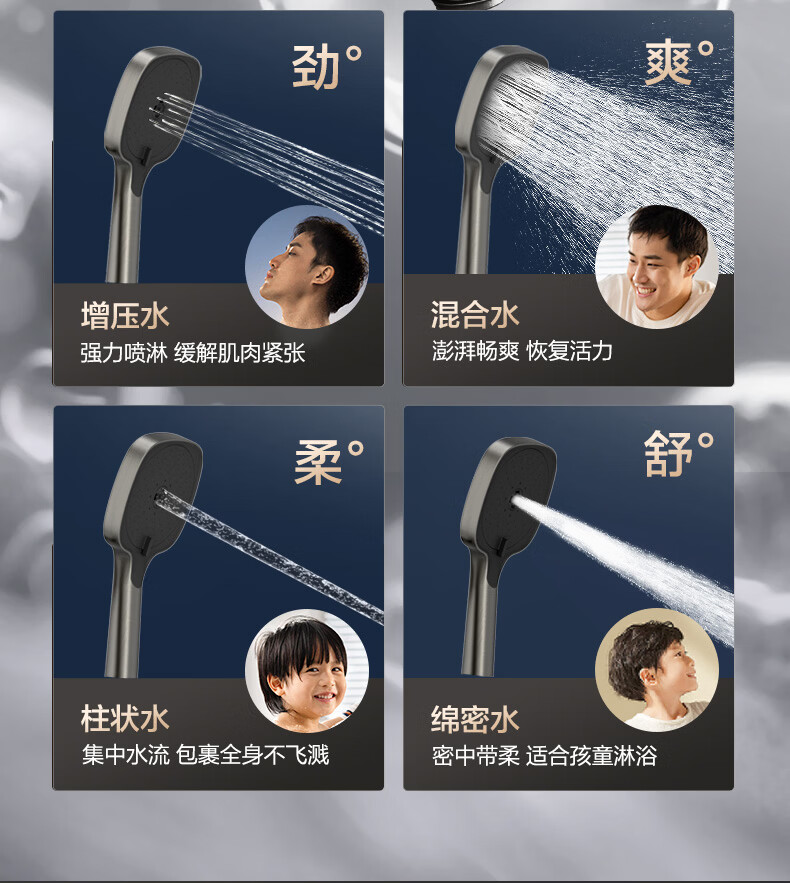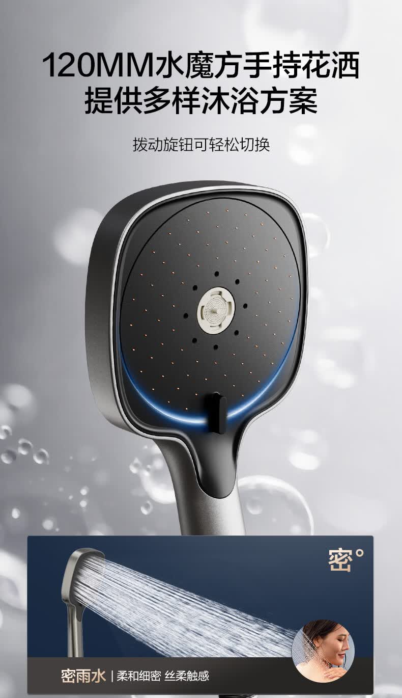 恒洁淋浴花洒套装浴室沐浴器淋雨明装喷枪易洁除垢卫生间家用936-333 【双重除垢】936银色