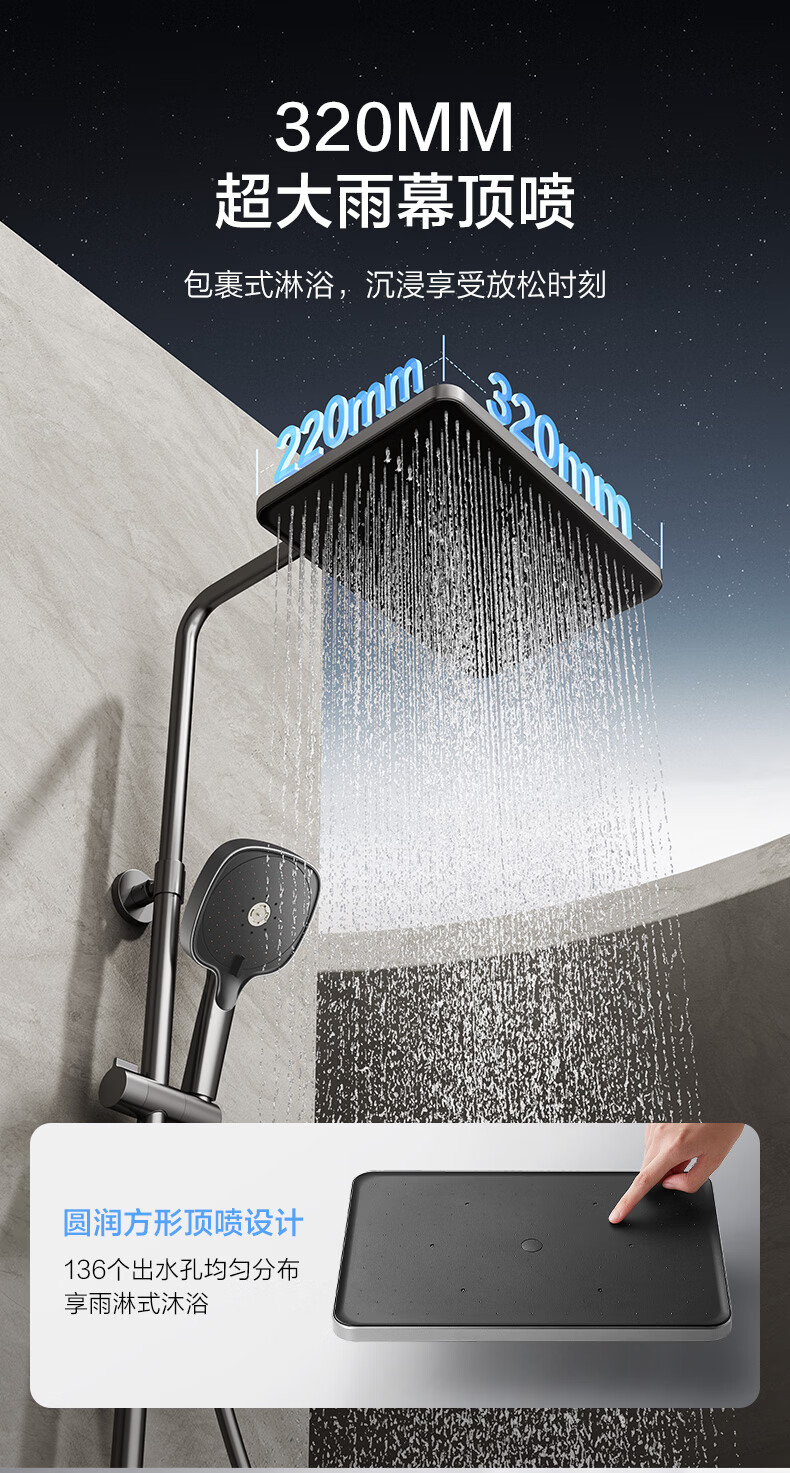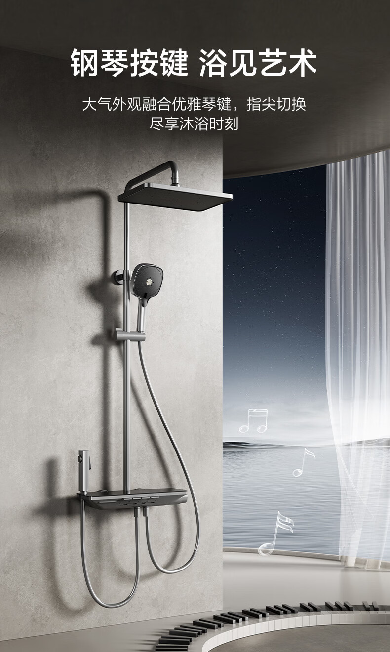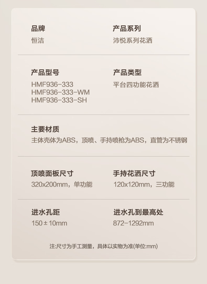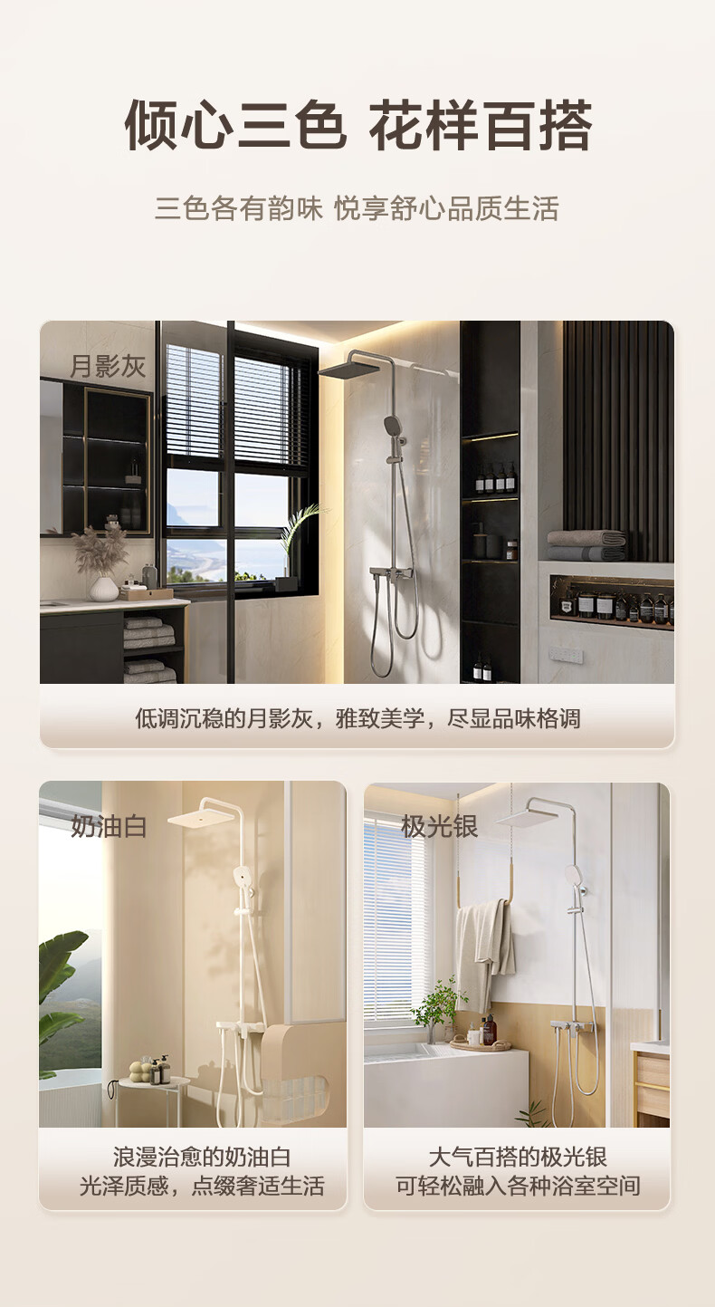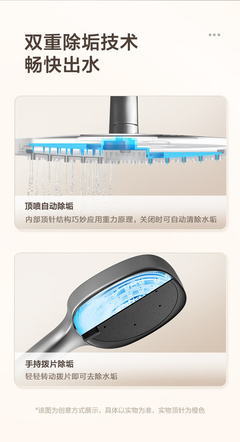 恒洁淋浴花洒套装浴室沐浴器淋雨明装喷枪易洁除垢卫生间家用936-333 【双重除垢】936银色