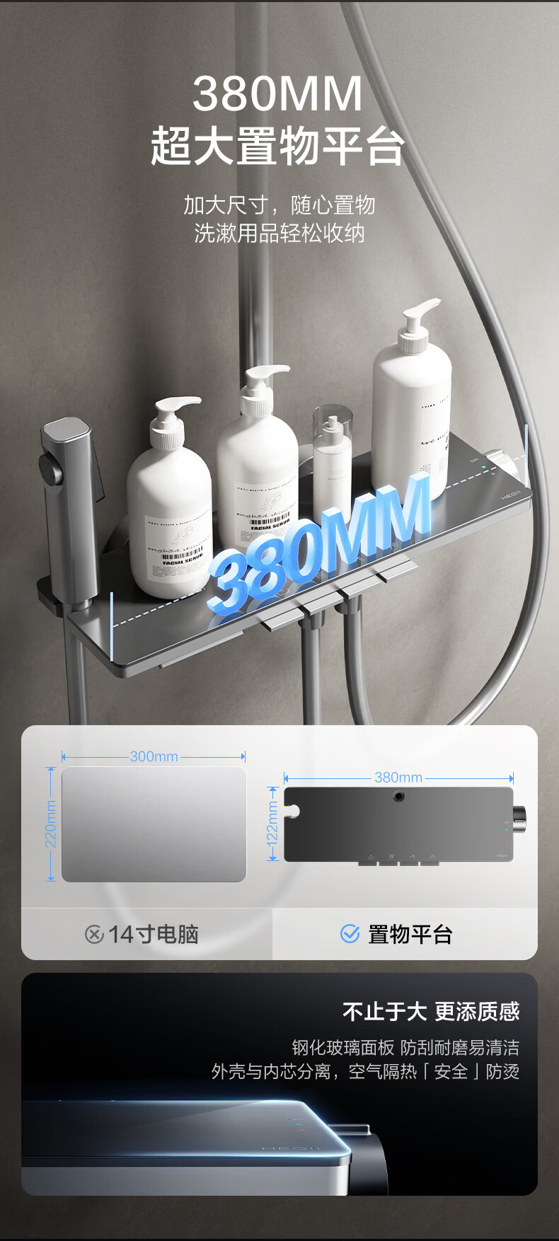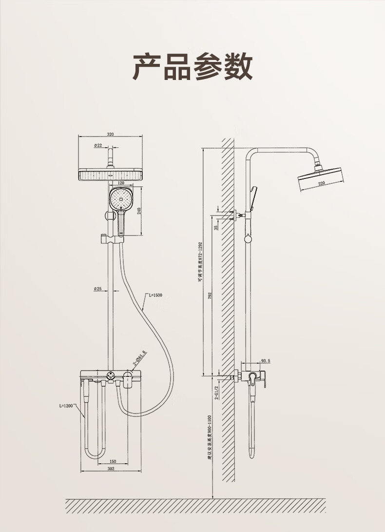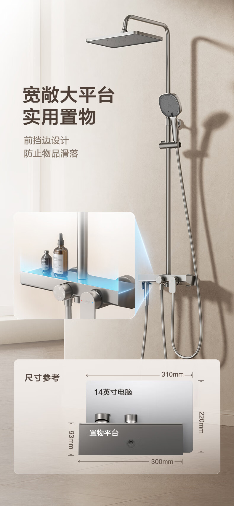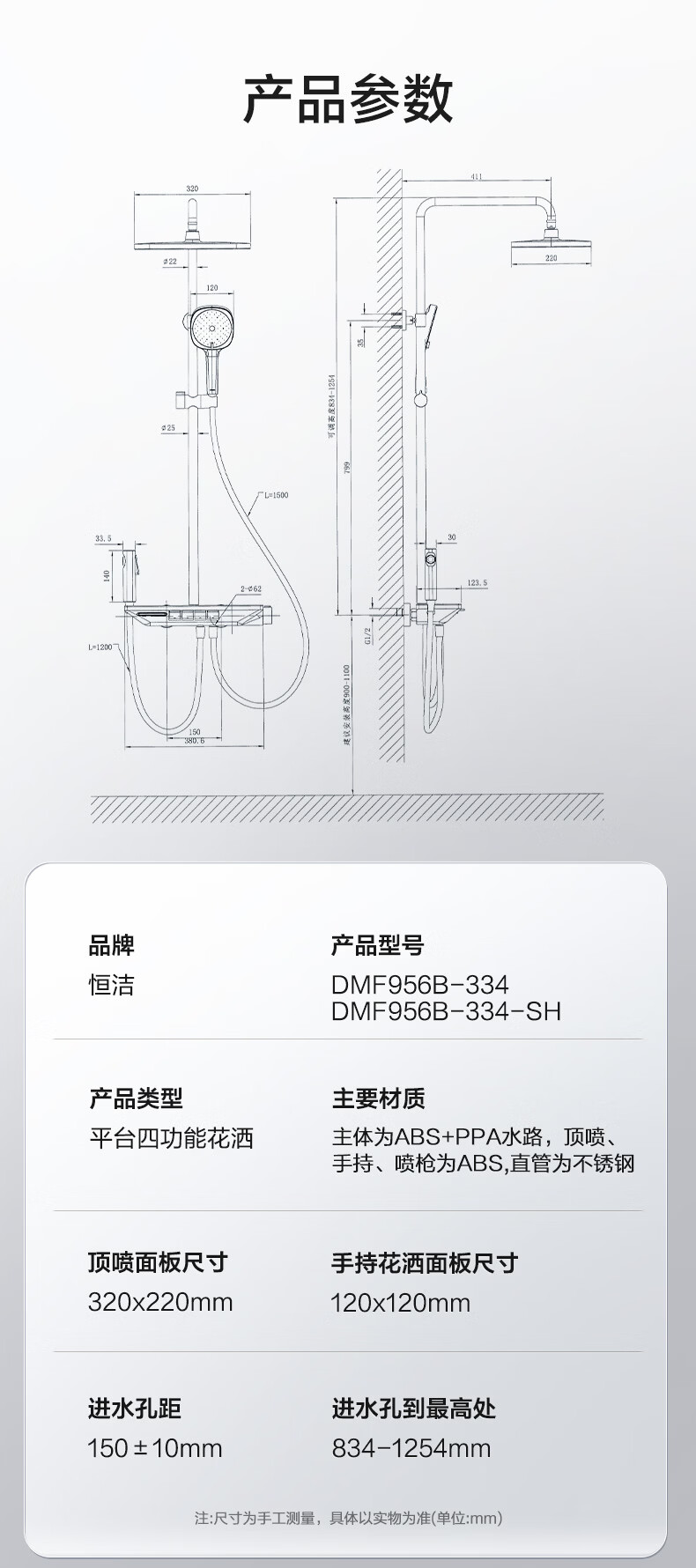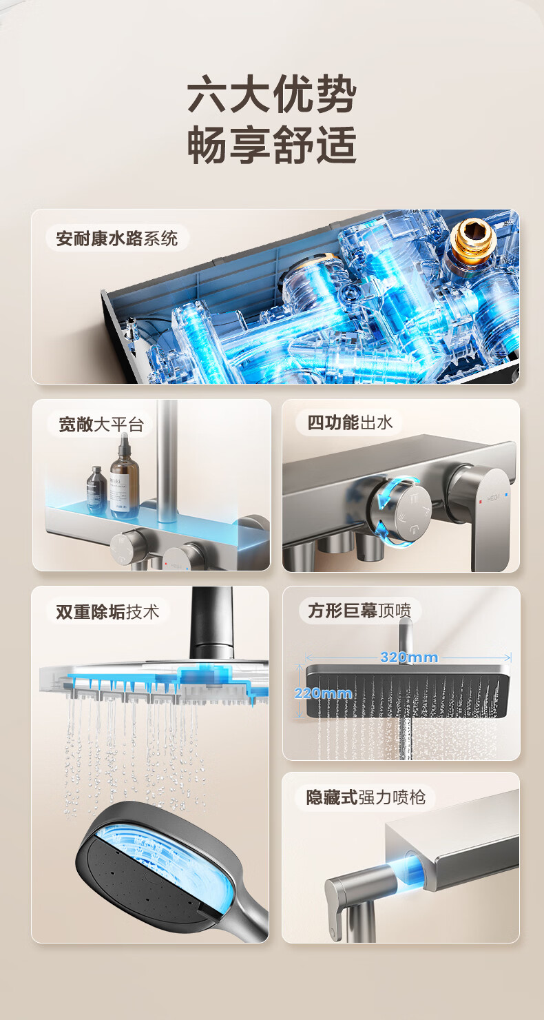 恒洁淋浴花洒套装浴室沐浴器淋雨明装喷枪易洁除垢卫生间家用936-333 【双重除垢】936银色