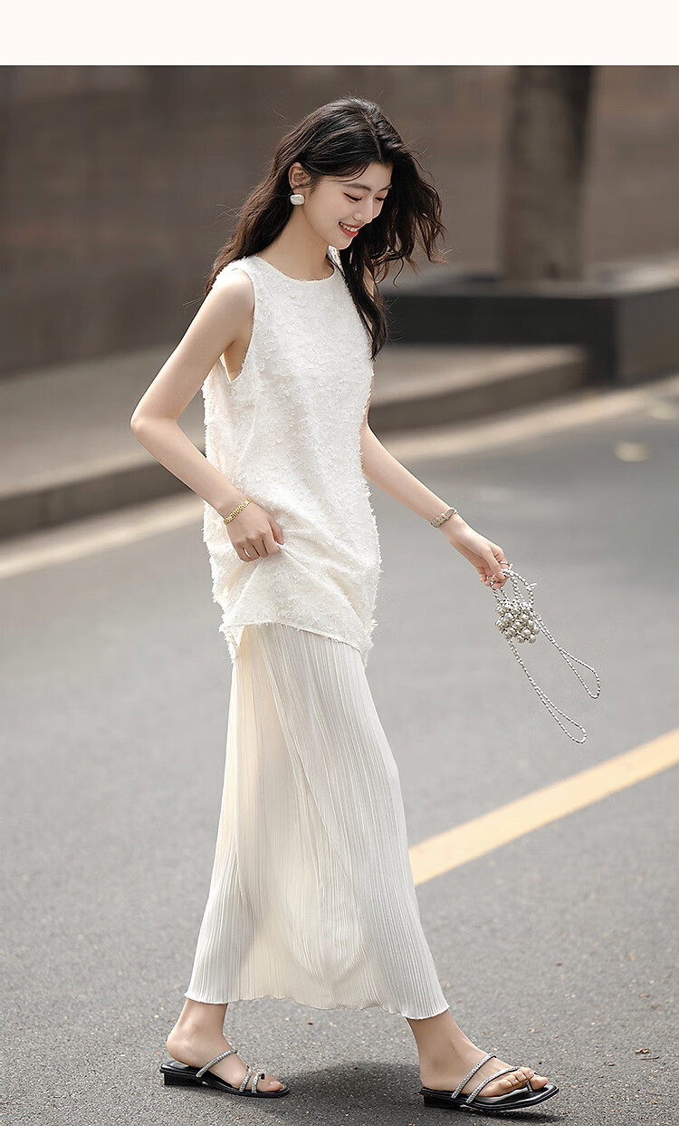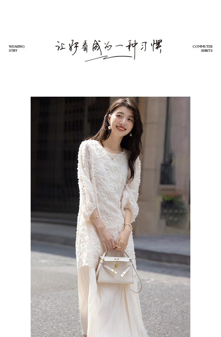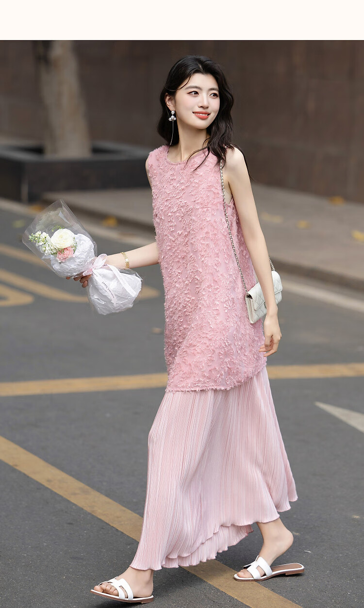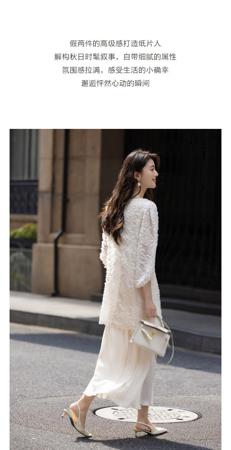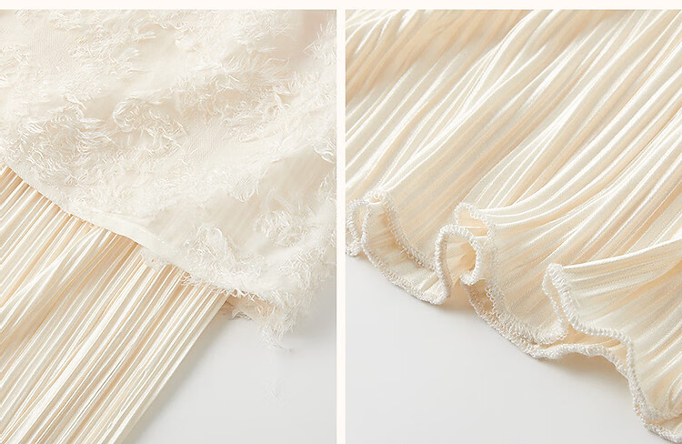 德玛纳【设计感假两件】夏季轻薄慵懒立体剪花无腰线直筒压褶女式连衣裙