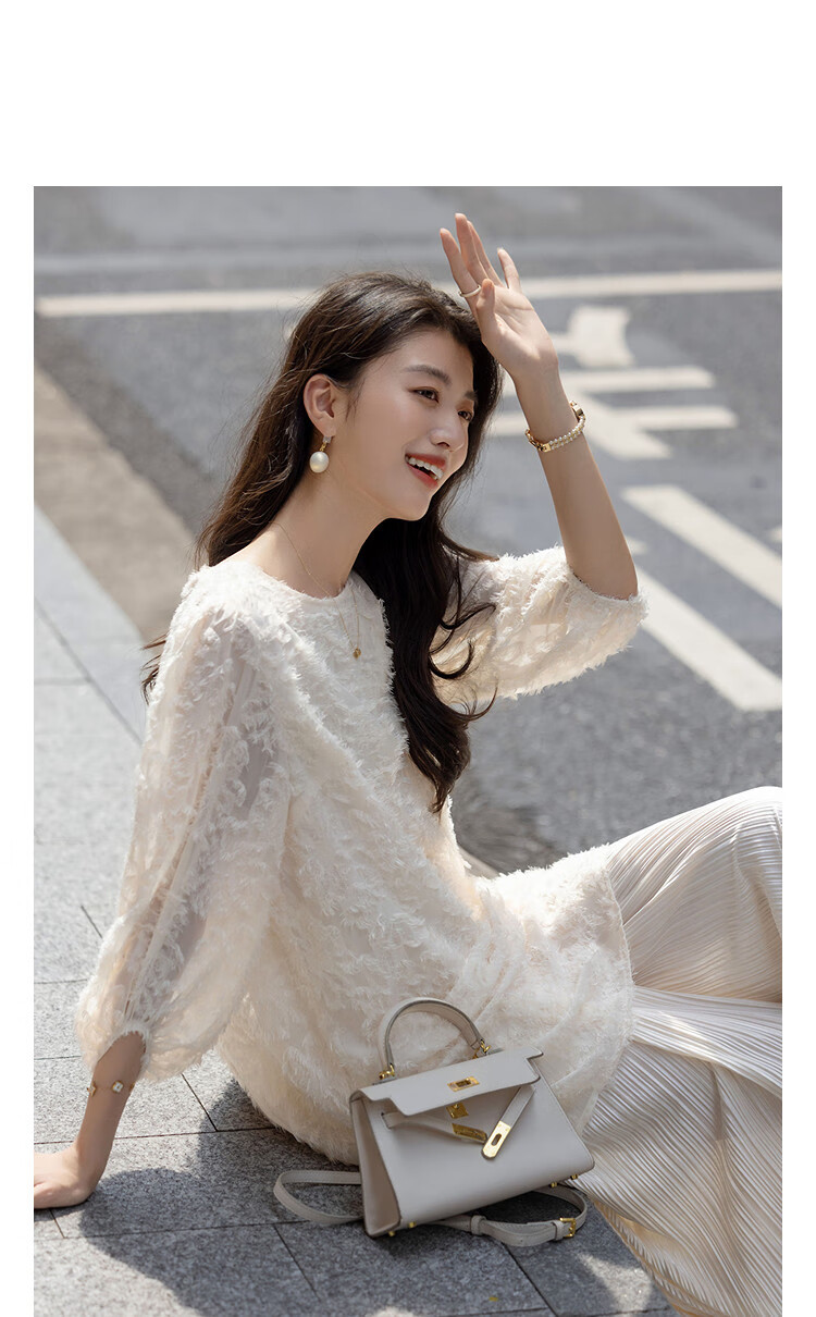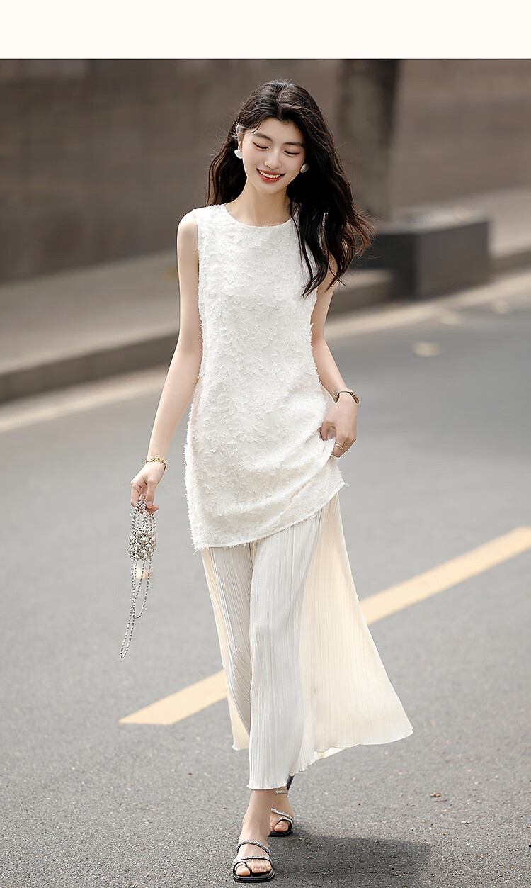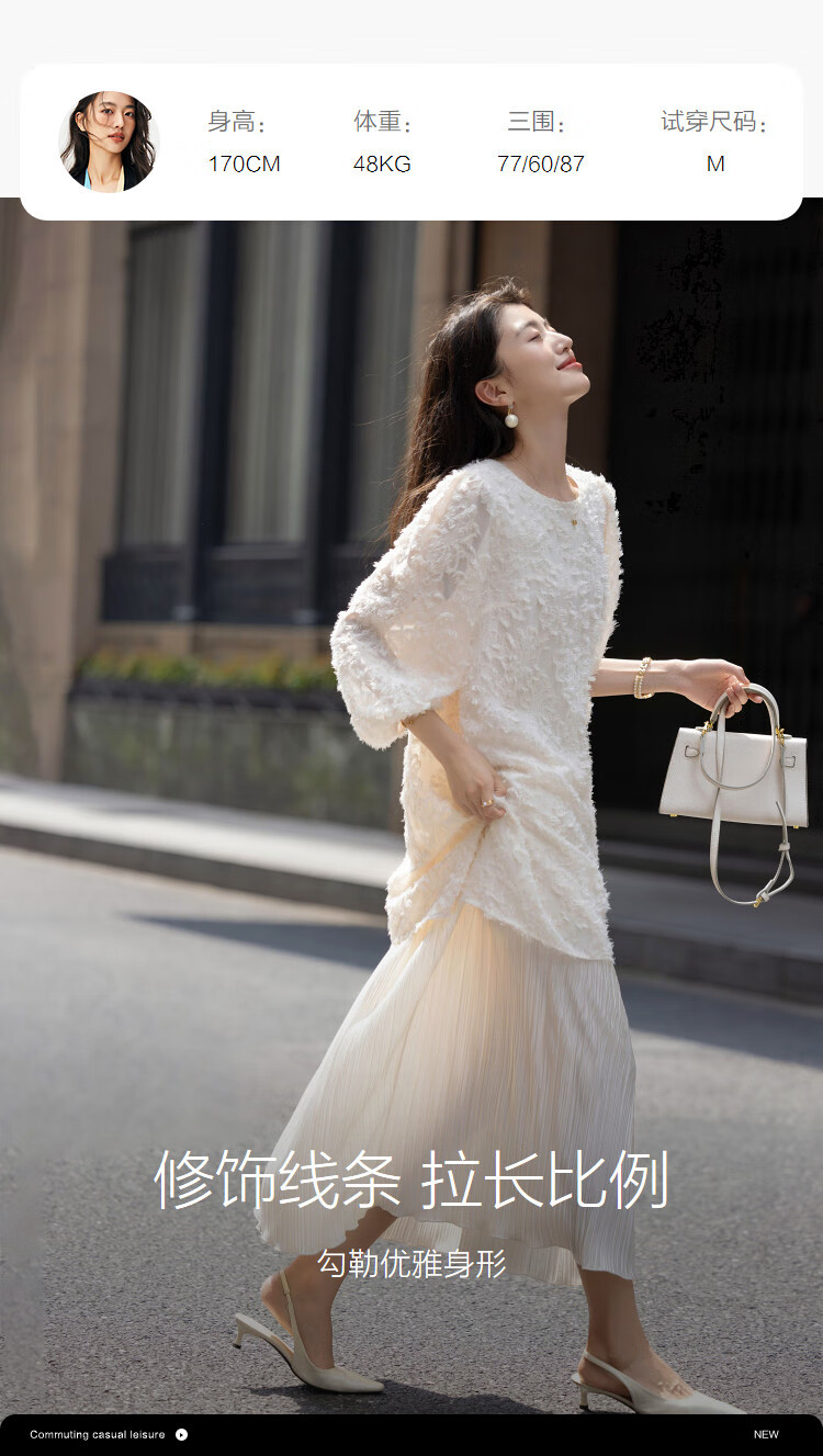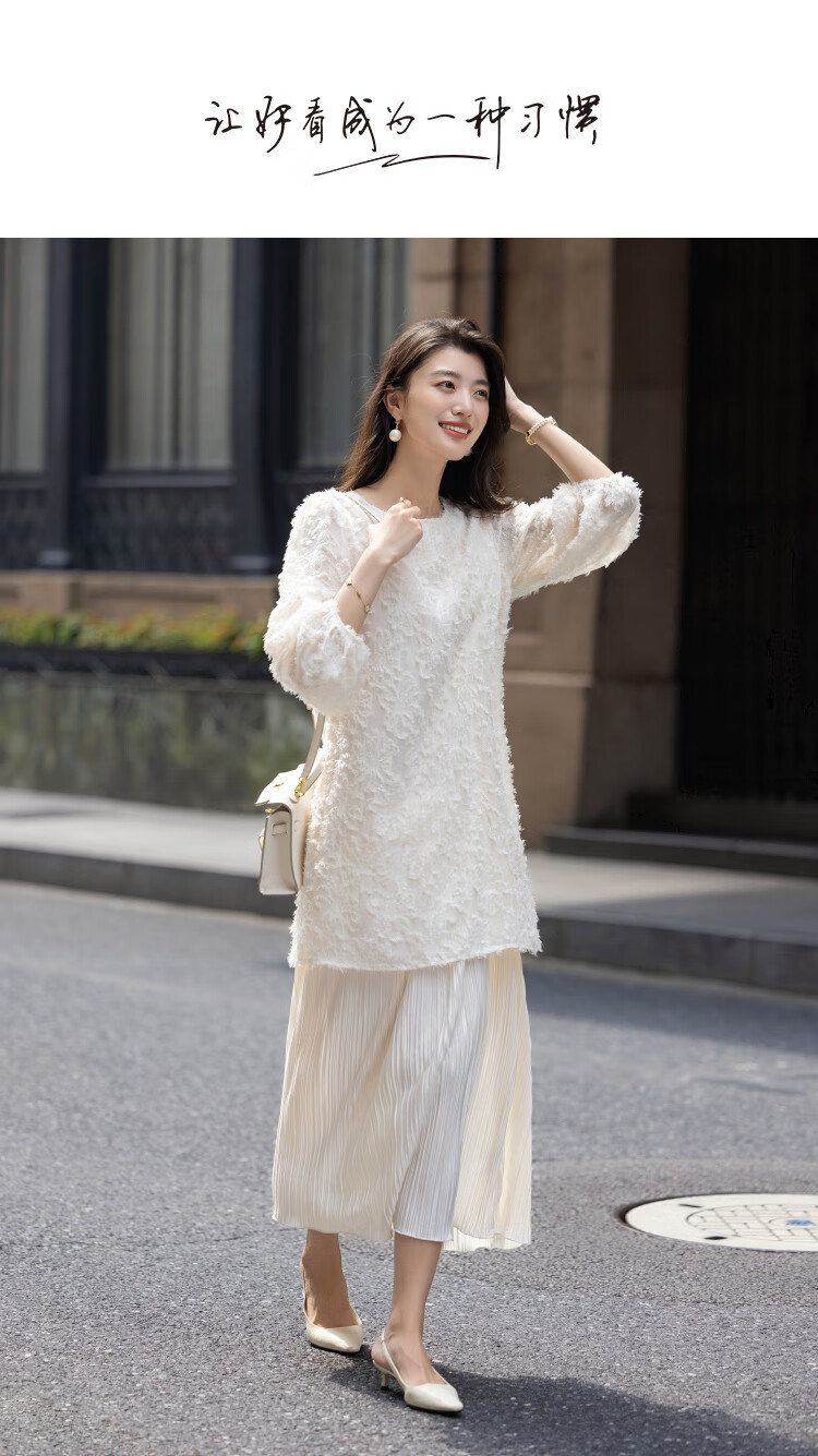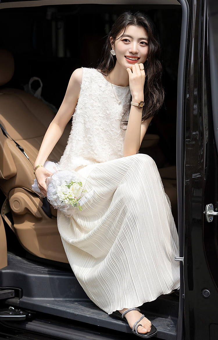 德玛纳【设计感假两件】夏季轻薄慵懒立体剪花无腰线直筒压褶女式连衣裙