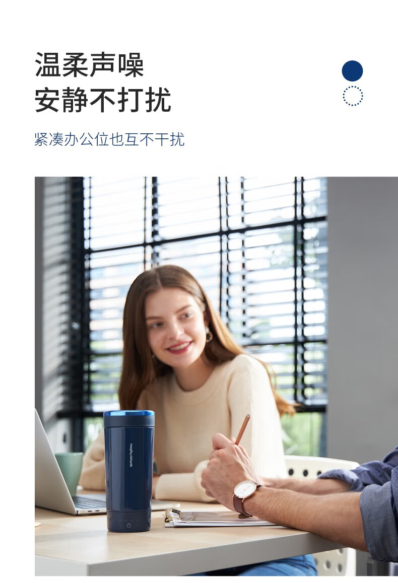 摩飞电器(Morphyrichards) 电热水壶便携式烧水壶旅行保温电热水杯316不锈钢烧水杯密封调温MR6060 0.3L 椰奶白