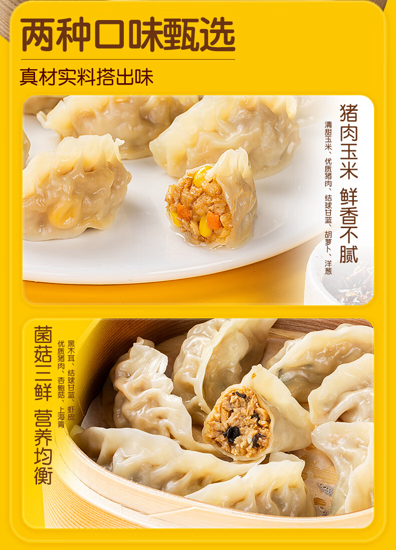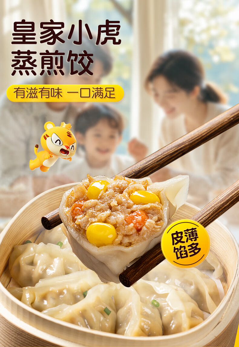 皇家小虎蒸煎饺猪肉玉米1kg+菌菇三鲜1kg速冻饺子速食早餐煎饺 源头直发