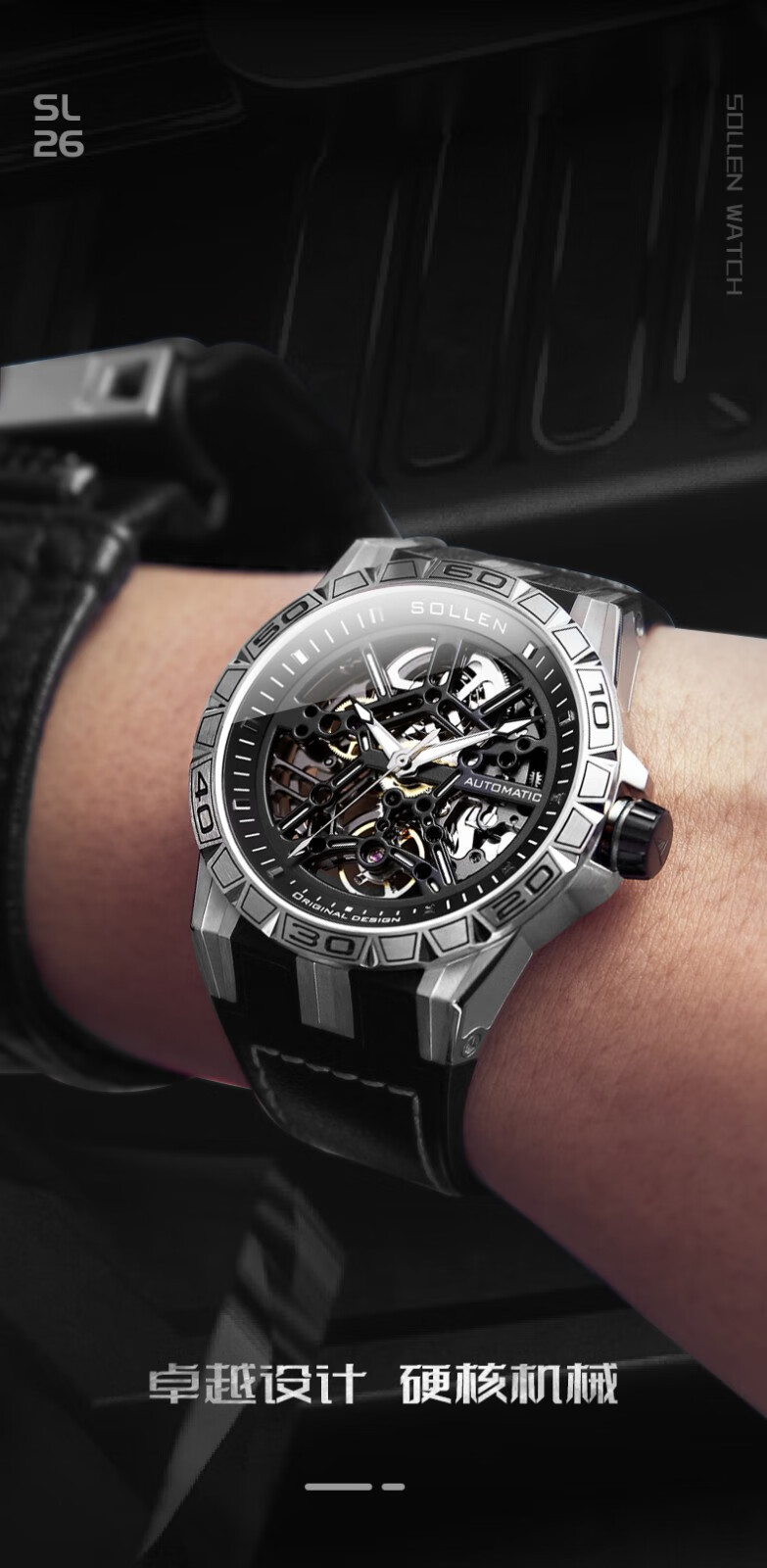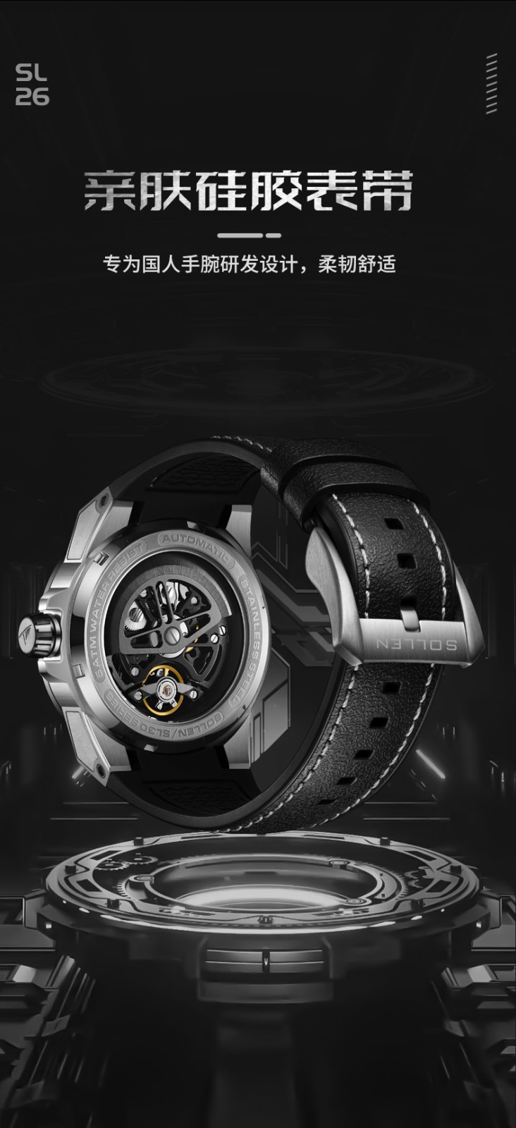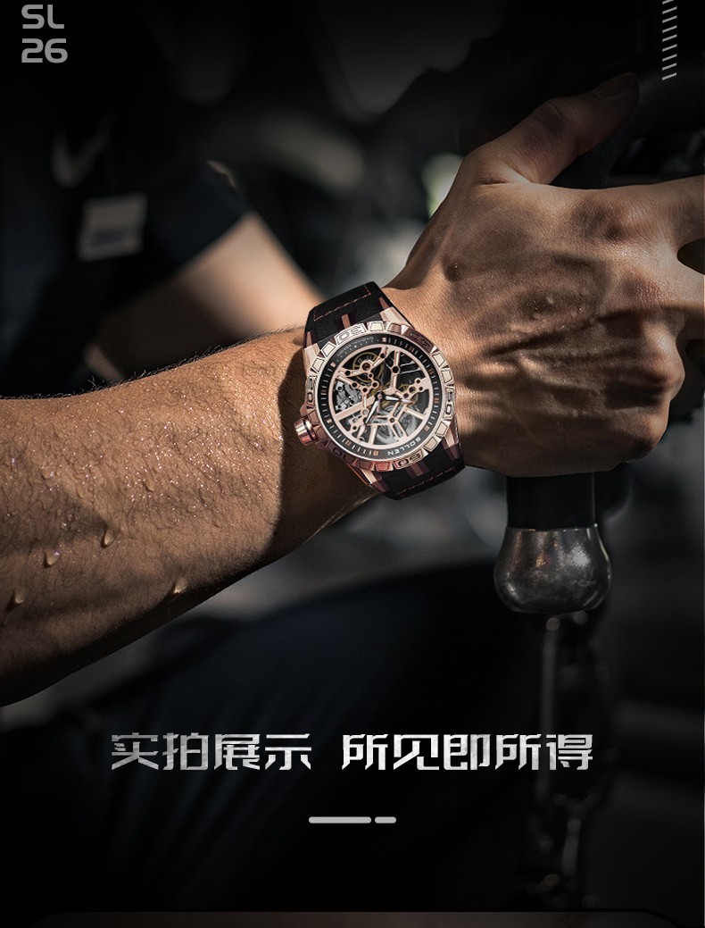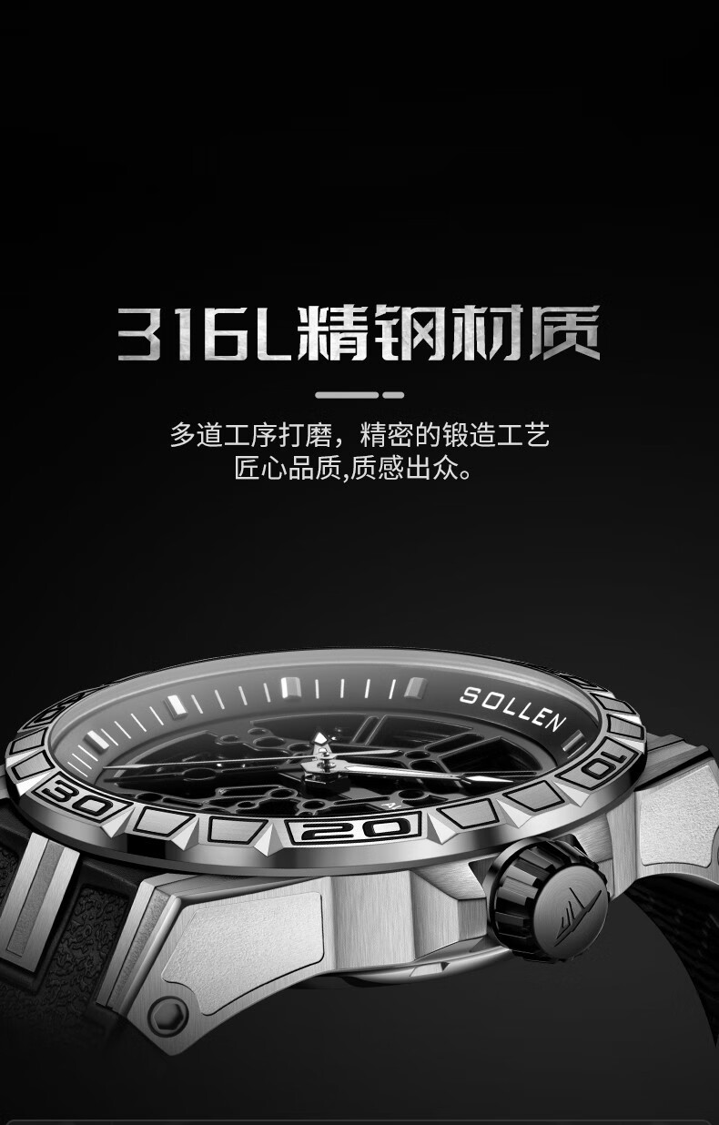梭伦(SOLLEN)新款迷宫表盘手表男镂空全自动机械表男士手表防水夜光腕表送男友 蓝色黑盘【国潮双开礼盒】326