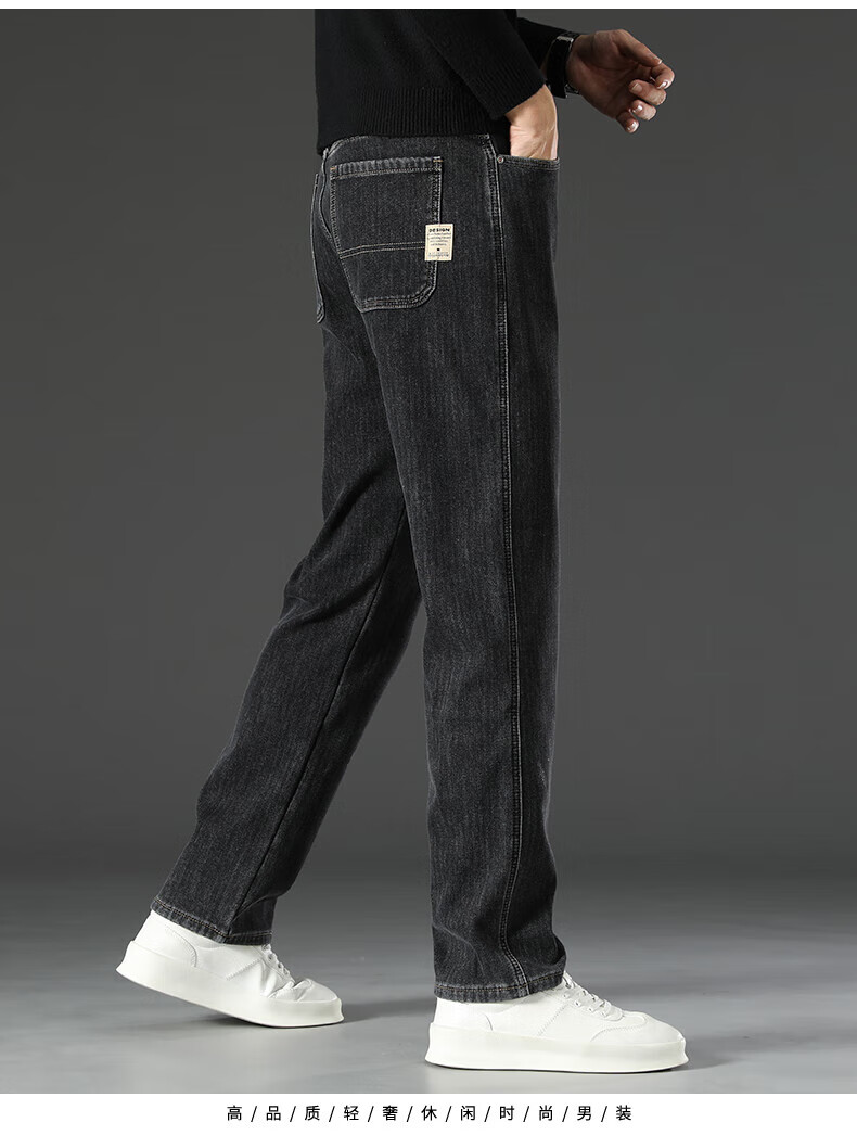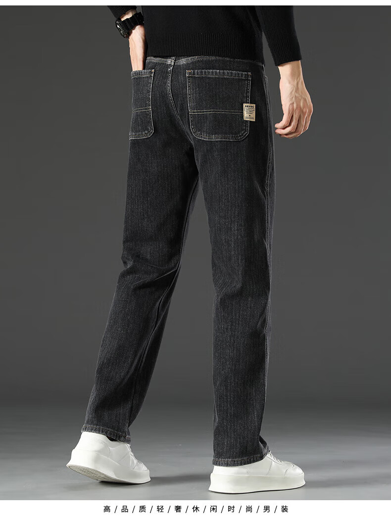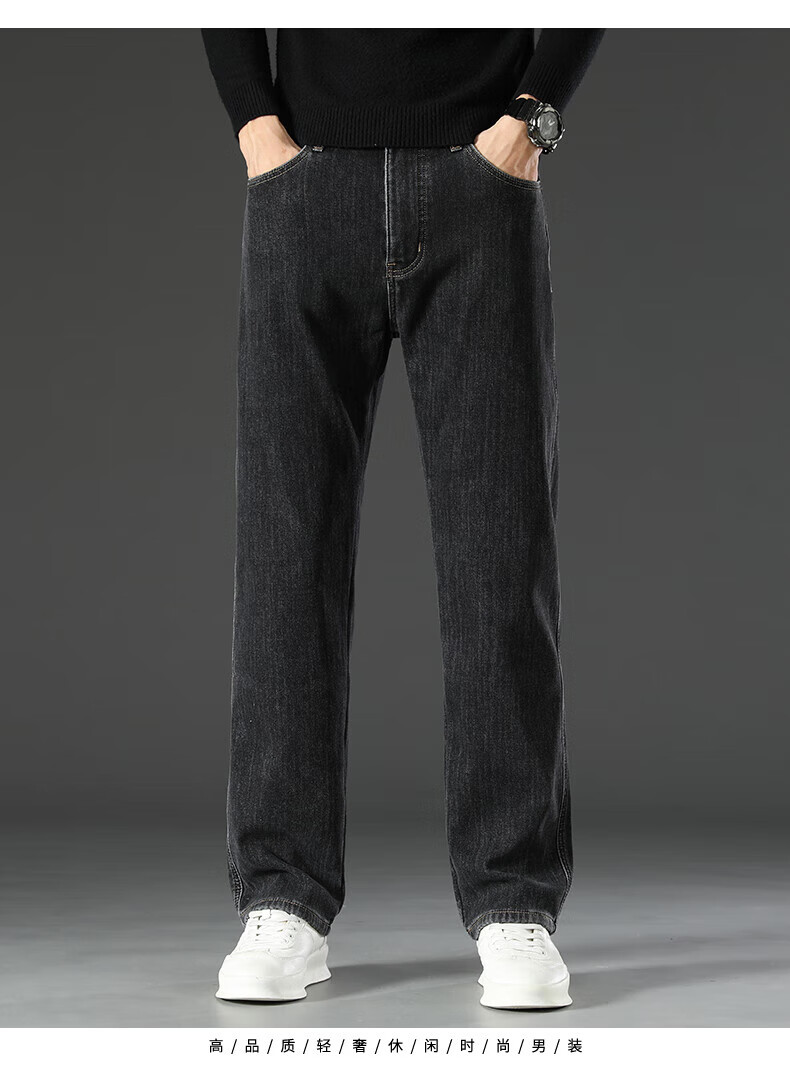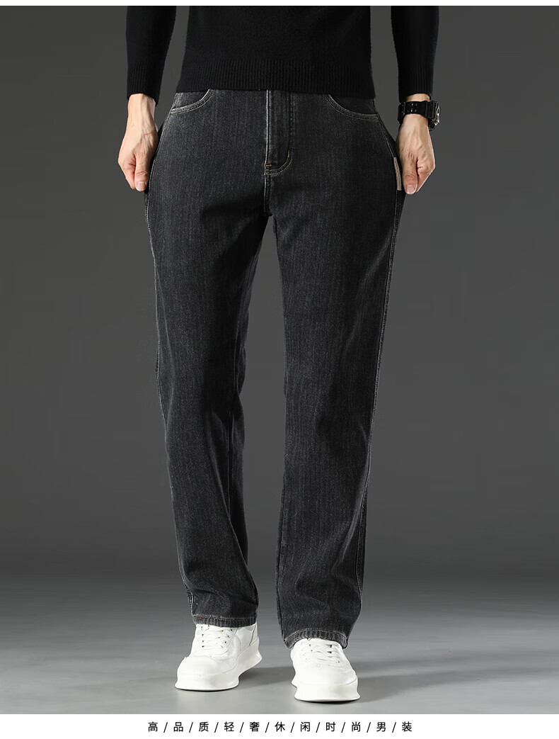 真维斯(Jeanswest)2026新款冬季高端牛仔裤男款直筒宽松秋冬款中年男裤加绒加厚长裤 619R蓝灰色 【加绒款】 42