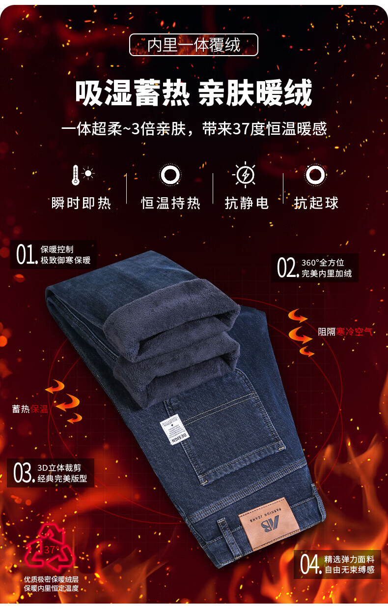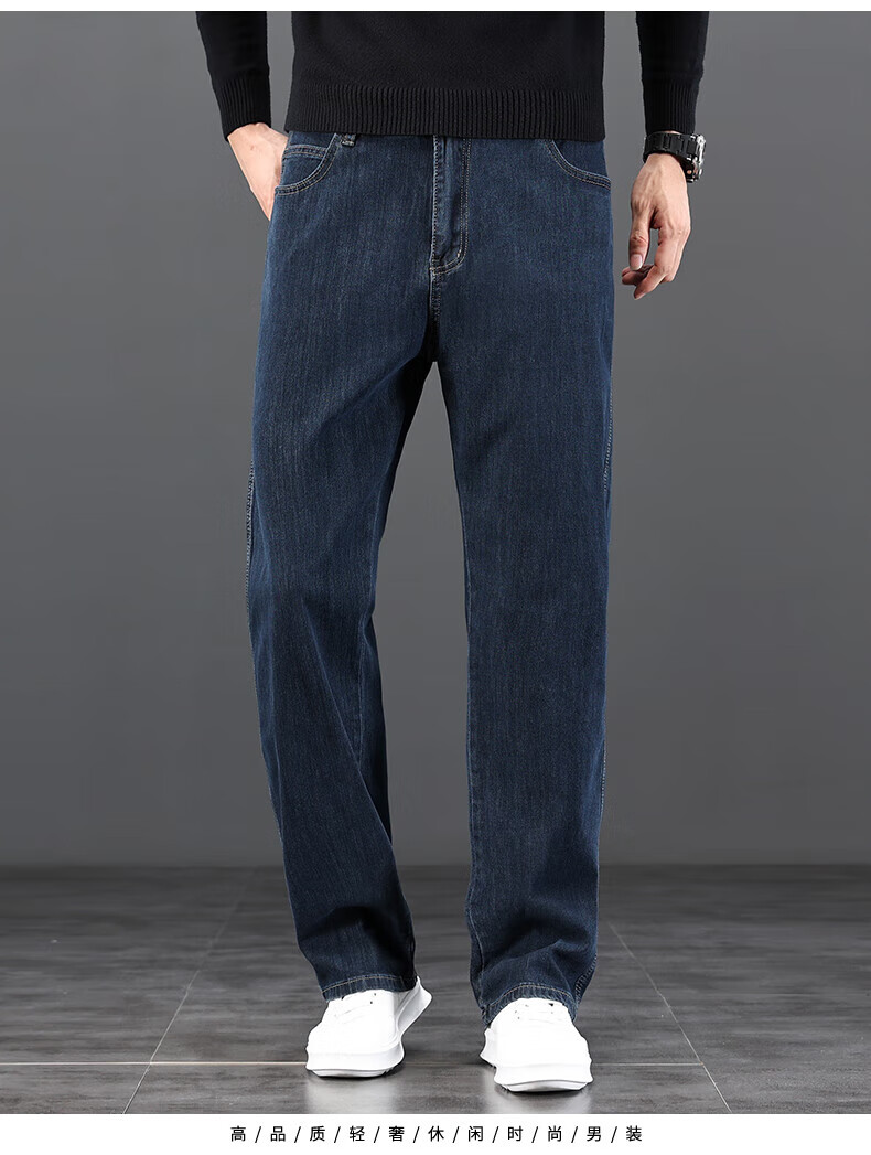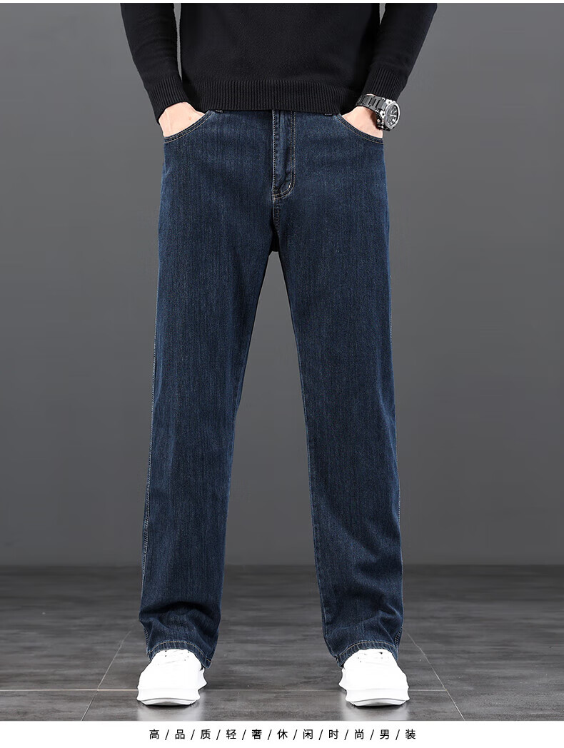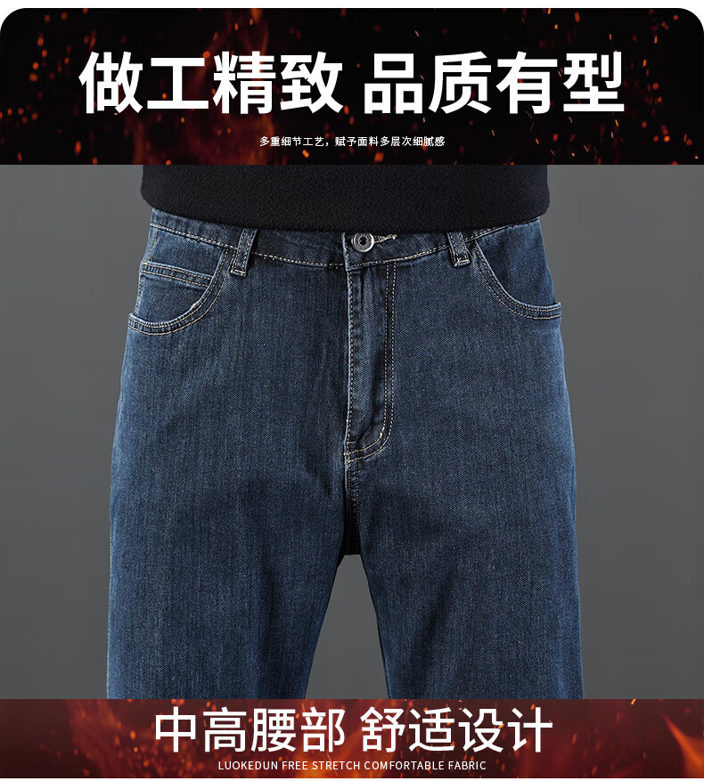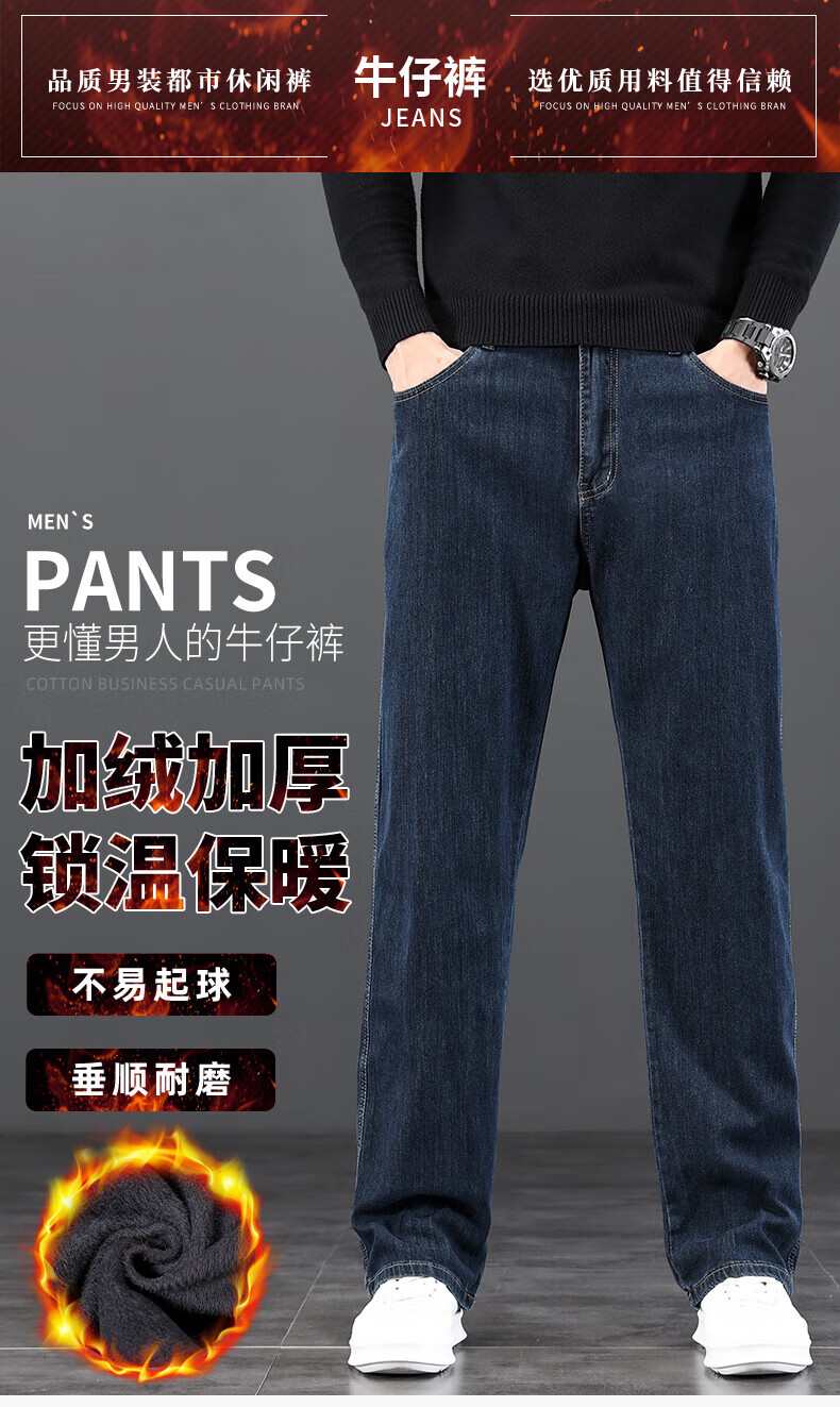 真维斯(Jeanswest)2026新款冬季高端牛仔裤男款直筒宽松秋冬款中年男裤加绒加厚长裤 619R蓝灰色 【加绒款】 42