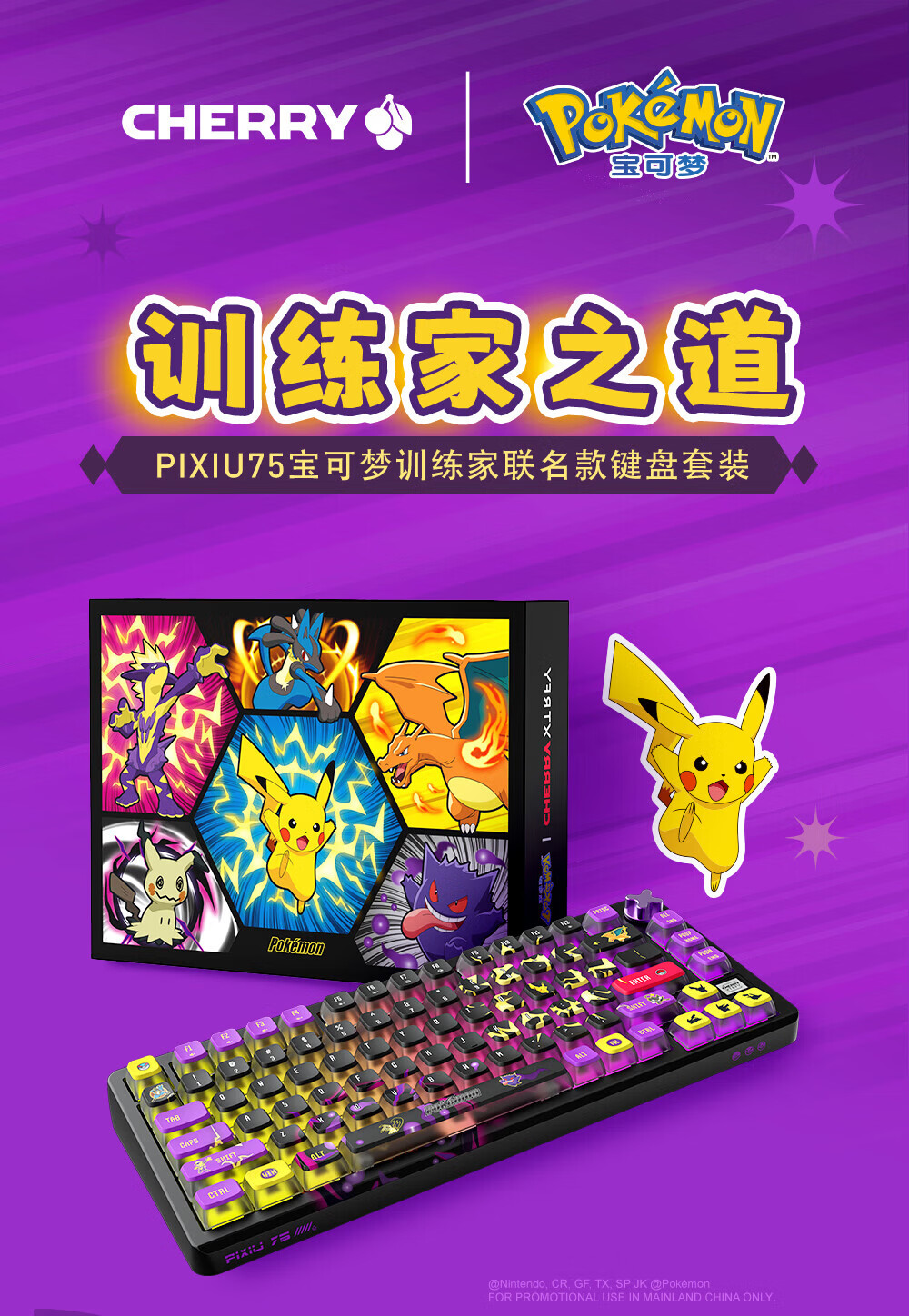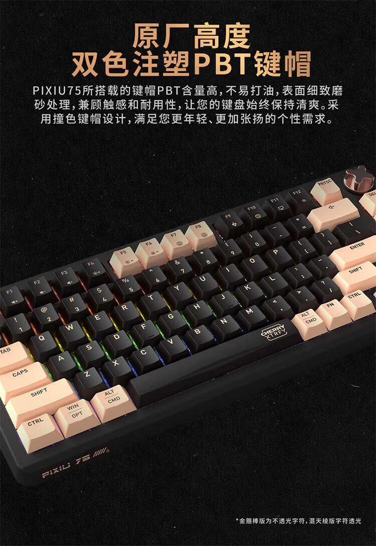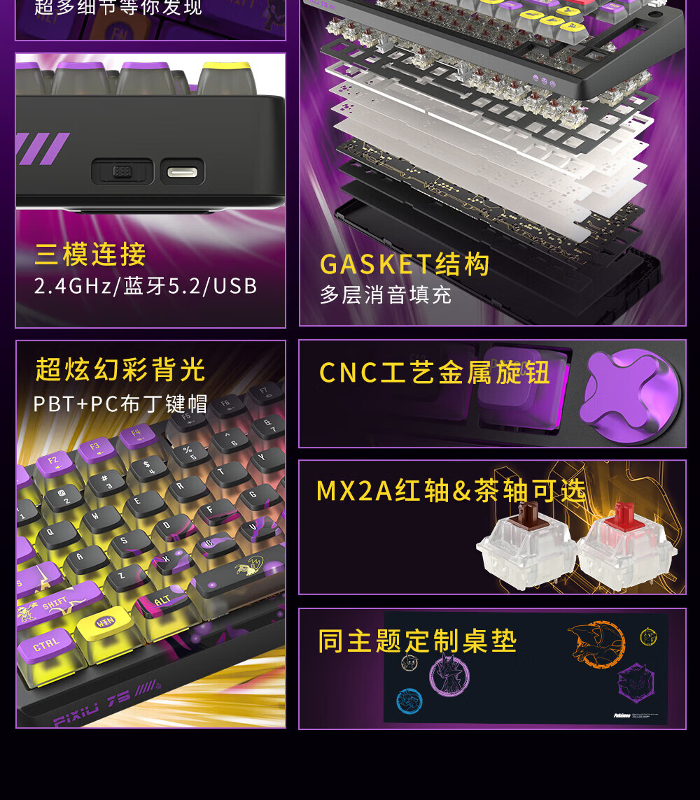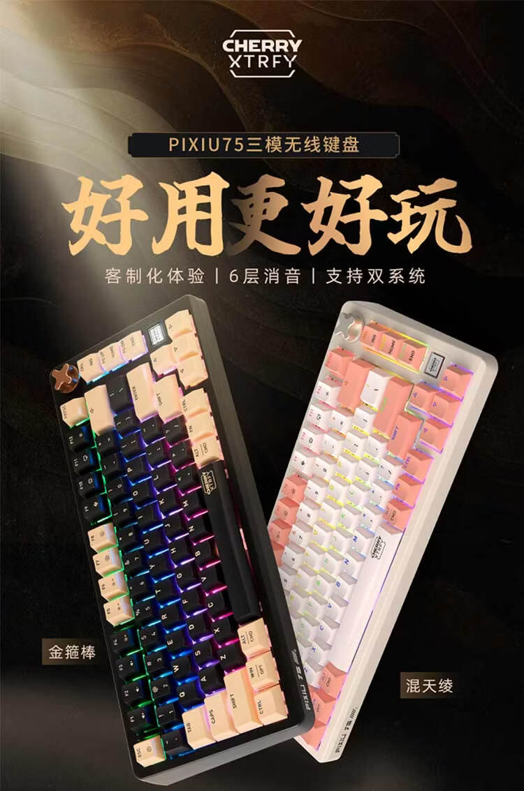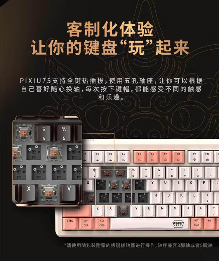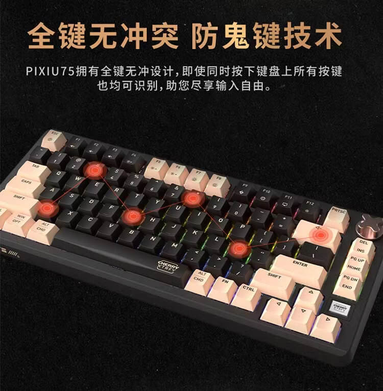 CHERRY樱桃PIXIU75宝可梦大乱斗键盘Gasket客制化蓝牙三模无线RGB 热插拔游戏键盘 兼容WIN/MAC 三角洲 PIXIU75-宝可梦大乱斗-红轴
