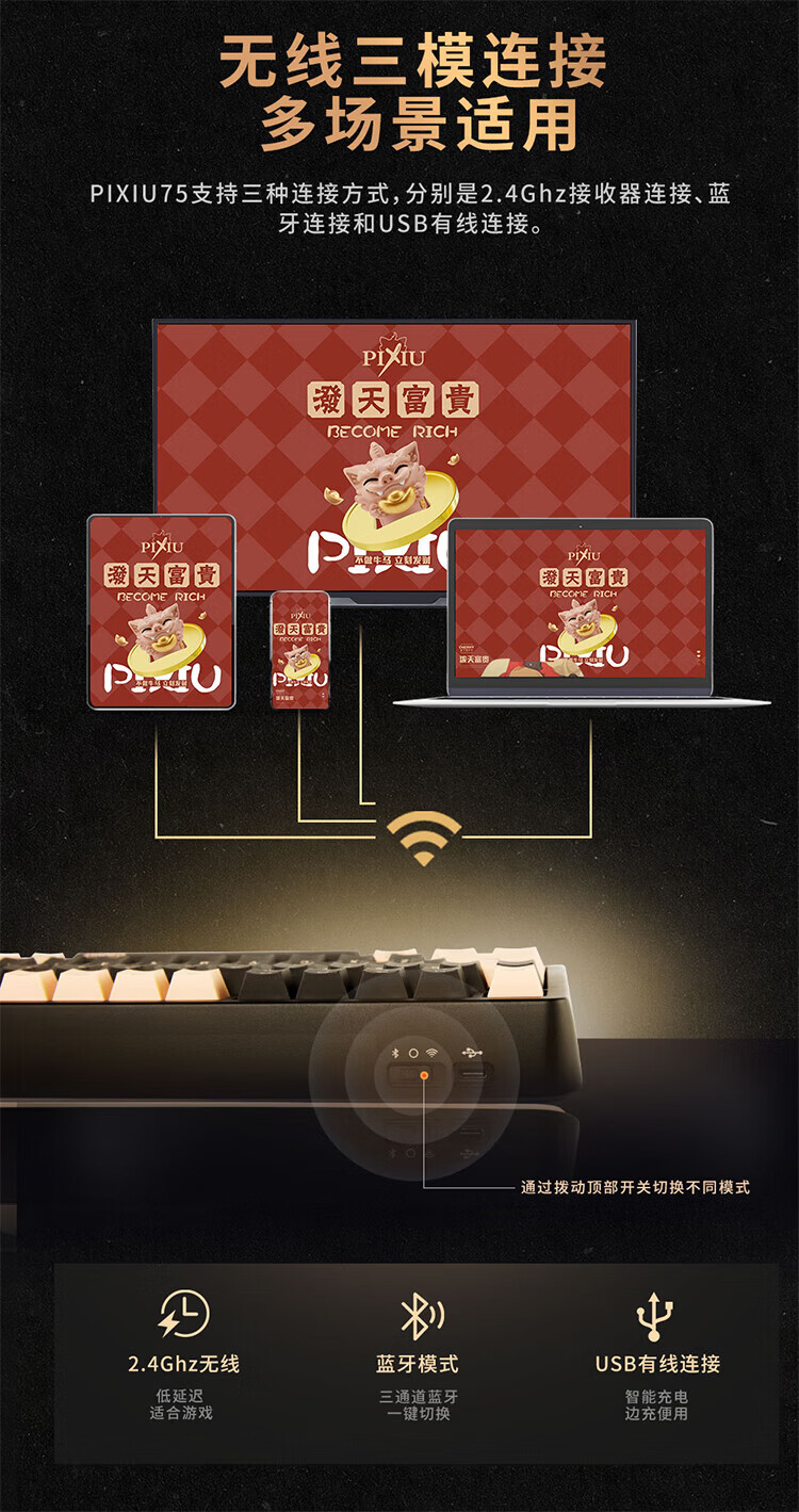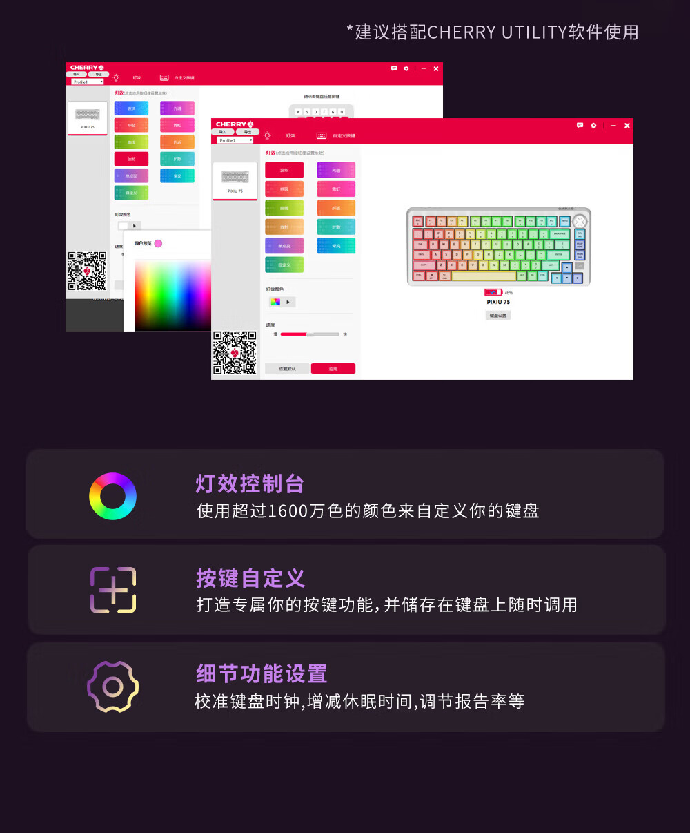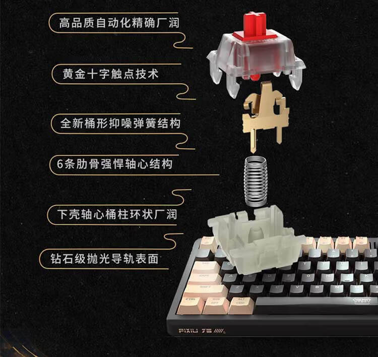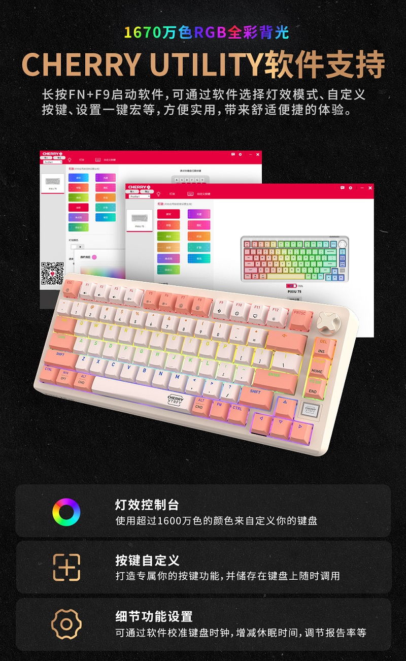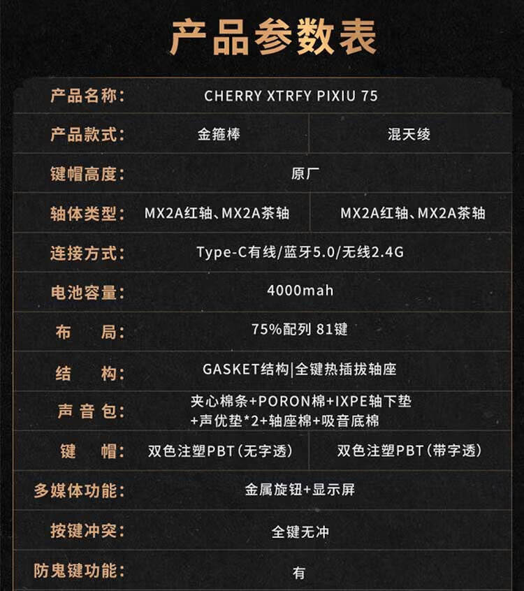 CHERRY樱桃PIXIU75宝可梦大乱斗键盘Gasket客制化蓝牙三模无线RGB 热插拔游戏键盘 兼容WIN/MAC 三角洲 PIXIU75-宝可梦大乱斗-红轴