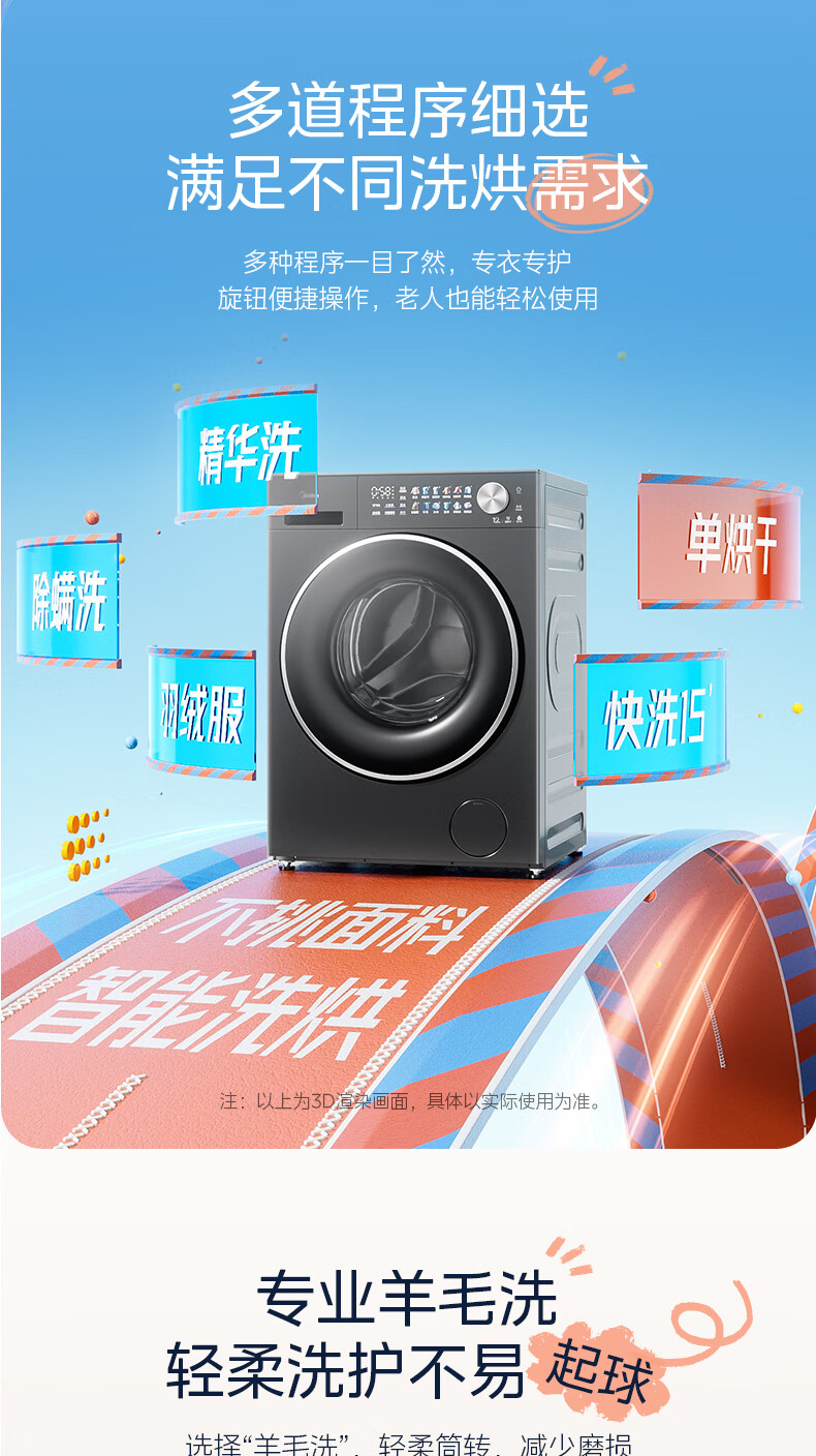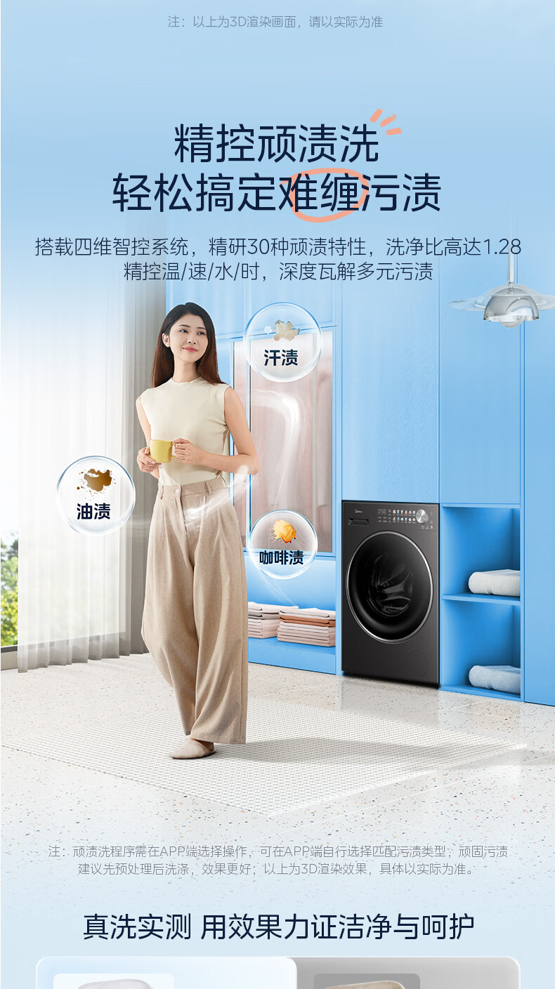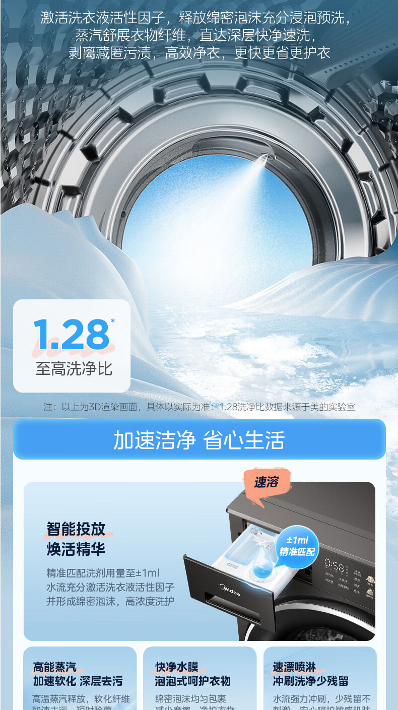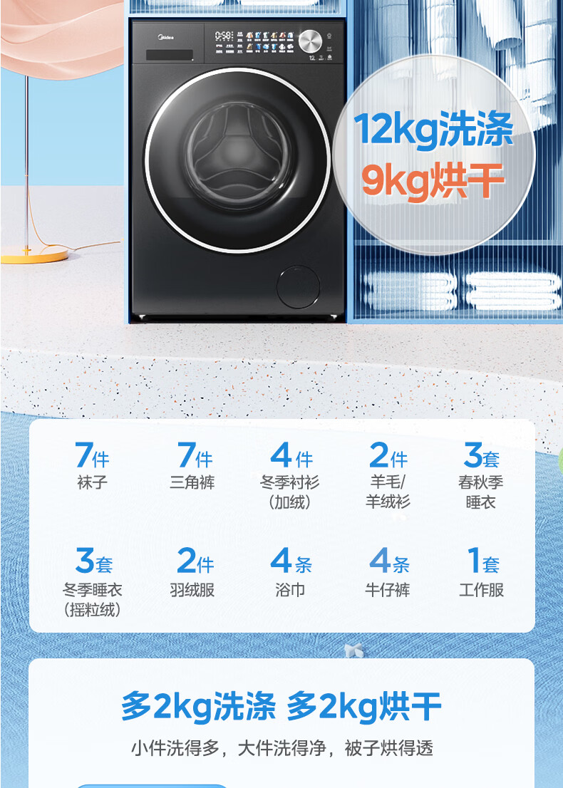 美的(Midea)洗衣机12公斤全自动洗烘一体机 MD12L1PRO快净科技2.0速洗 1.28高洗净比带烘干一体换新补贴 MD12L1PRO 洗烘一体 12kg 大容量