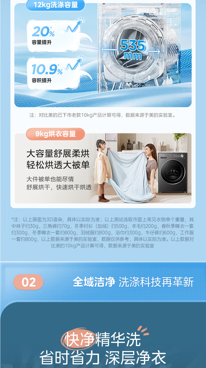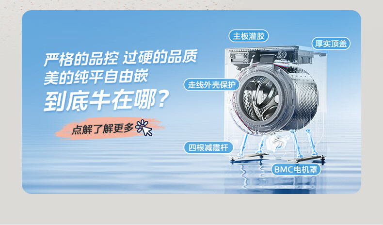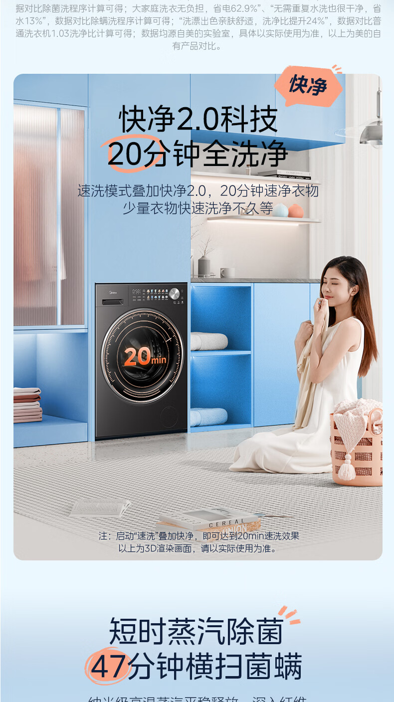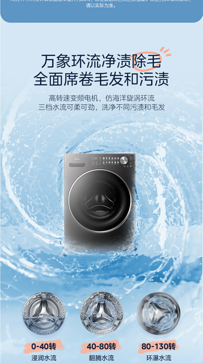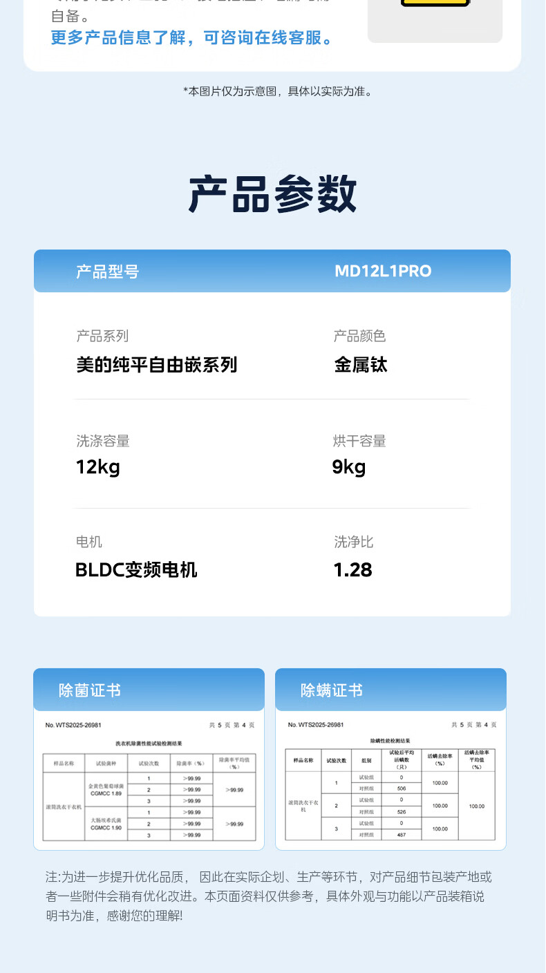 美的(Midea)洗衣机12公斤全自动洗烘一体机 MD12L1PRO快净科技2.0速洗 1.28高洗净比带烘干一体换新补贴 MD12L1PRO 洗烘一体 12kg 大容量