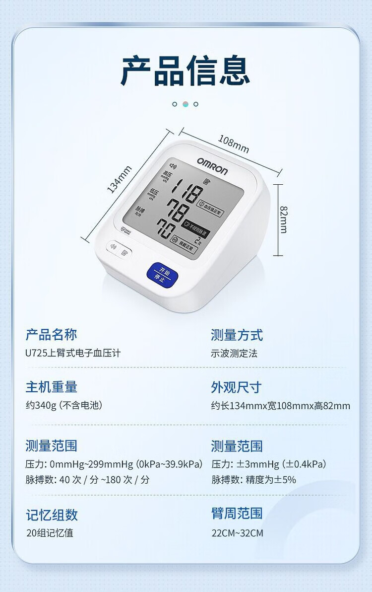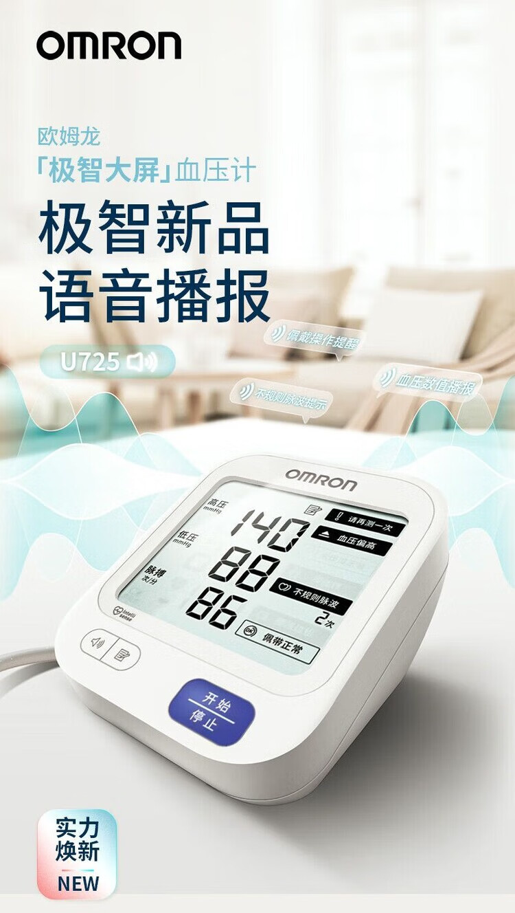 欧姆龙【官方直售店旗舰】血压计血压测量仪医用高精准语音播报U725医用 【进口芯片】欧姆龙大屏幕语音款
