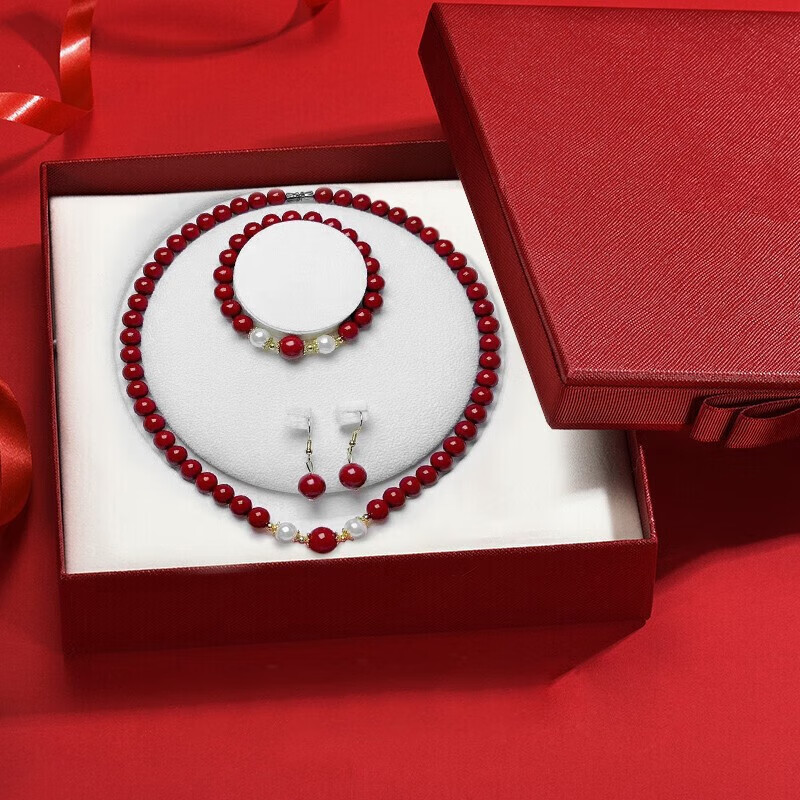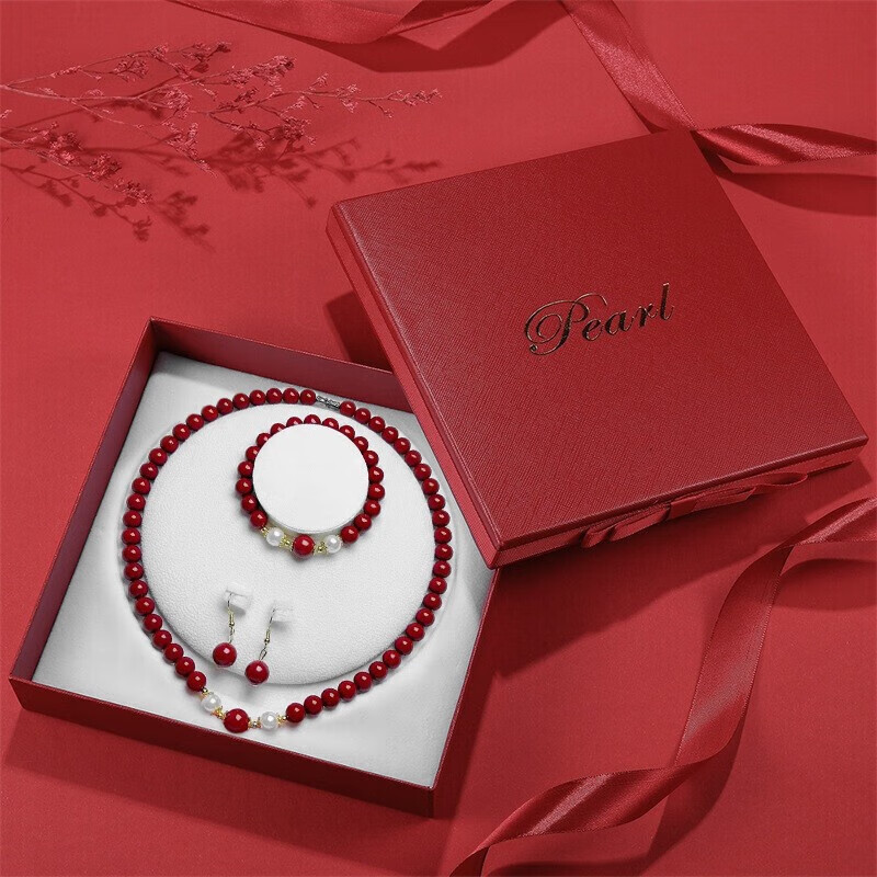 N2it本命年朱砂项链套装仿珍珠吊坠38女神妇女节礼物母亲节送老婆TY 朱砂三件套+红色礼盒
