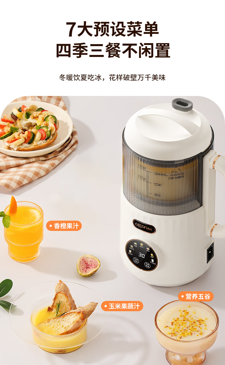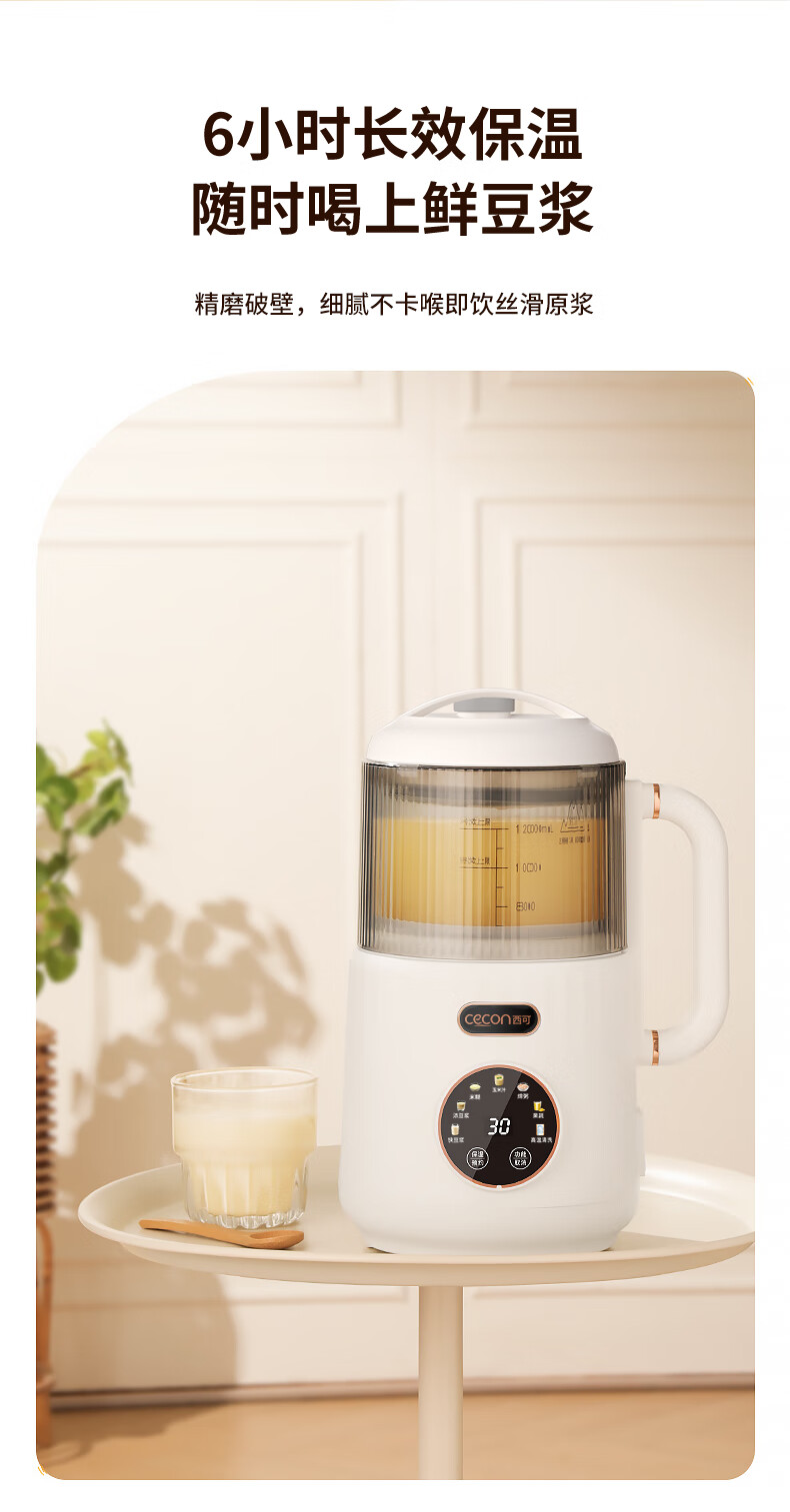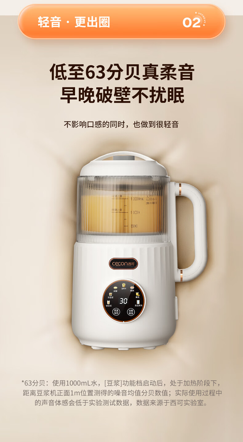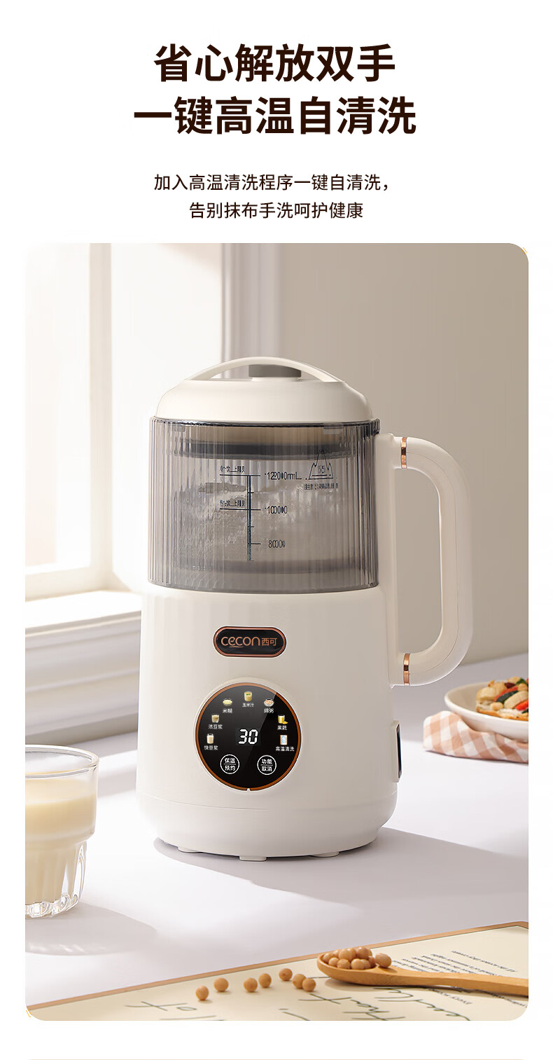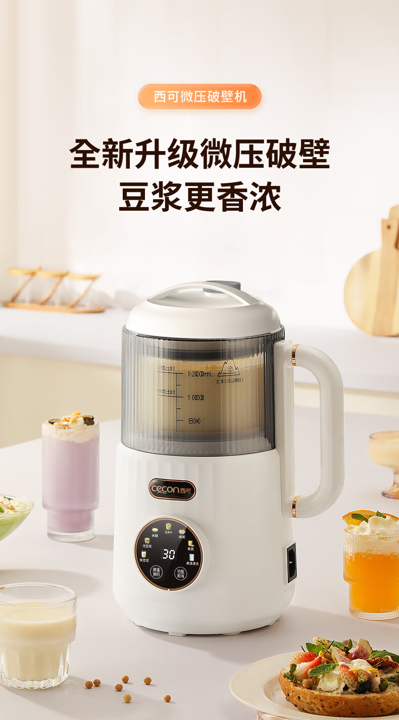 西可破壁机家用豆浆机1.2L微压2-3人食全自动轻音五谷杂粮免煮免手洗榨汁料理辅食机YEK-DJ07E