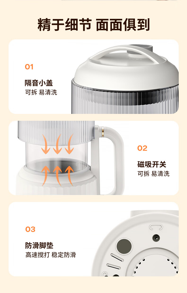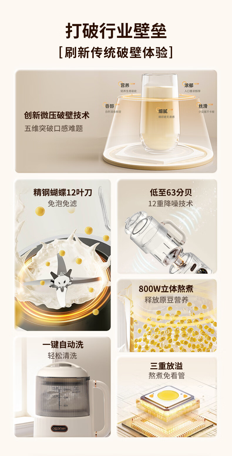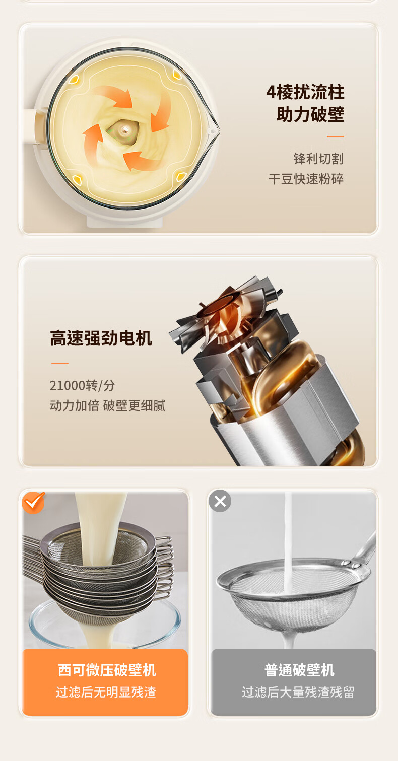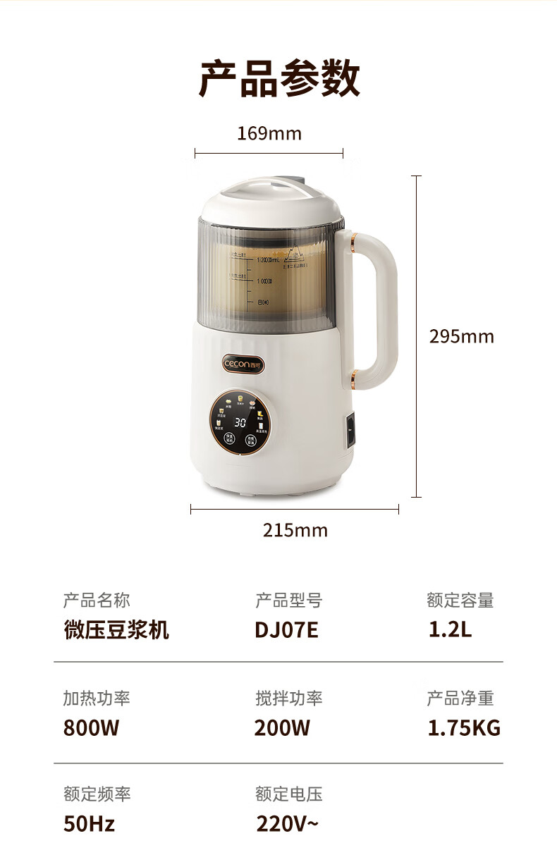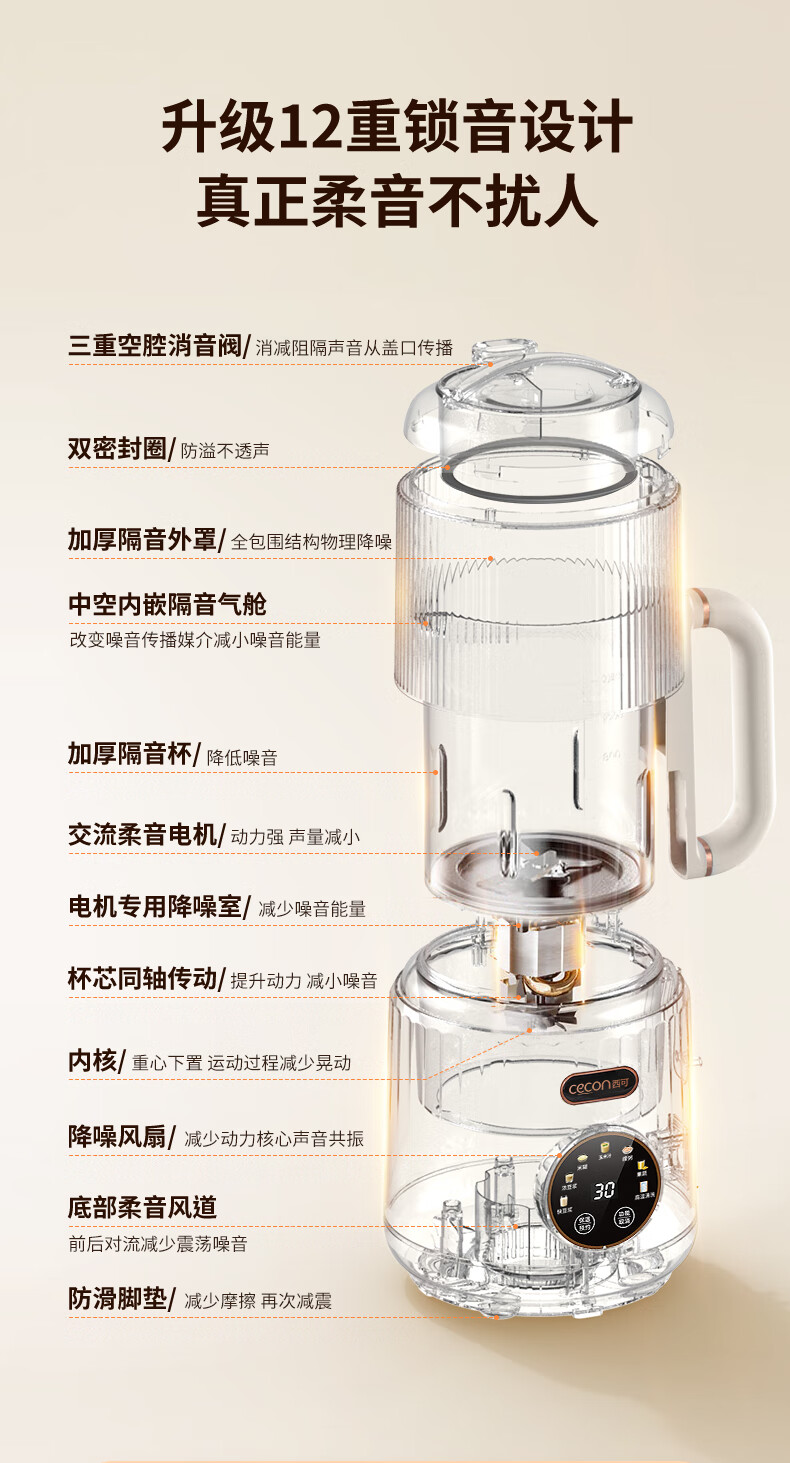 西可破壁机家用豆浆机1.2L微压2-3人食全自动轻音五谷杂粮免煮免手洗榨汁料理辅食机YEK-DJ07E