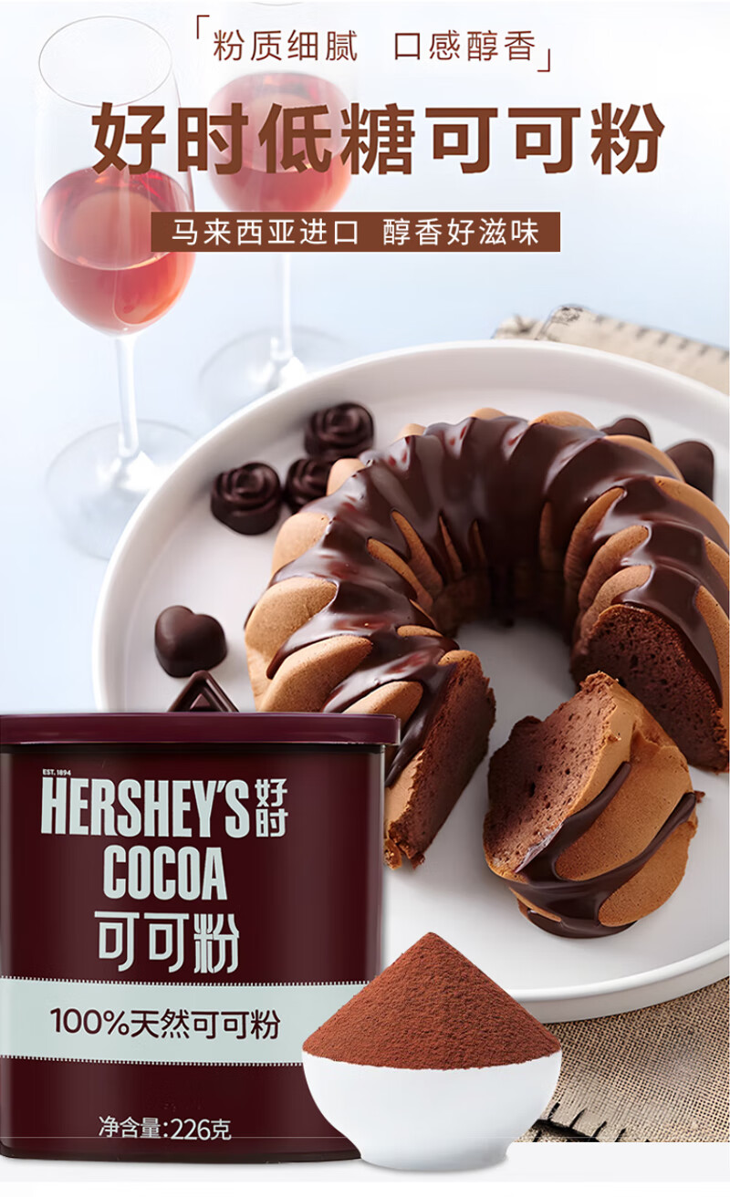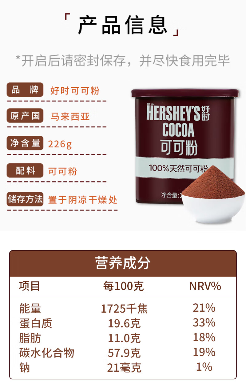 好时(HERSHEY'S)巧克力可可粉226g 马来西亚原装进口烘焙原料