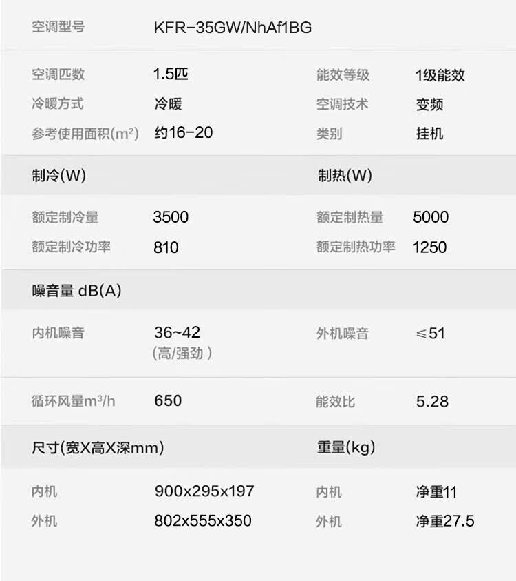Leader海尔统帅懒人神机新风款双排铜管蒸发器1.5匹一级变频冷暖空调挂机舒适风KFR-35GW/LXF1-1