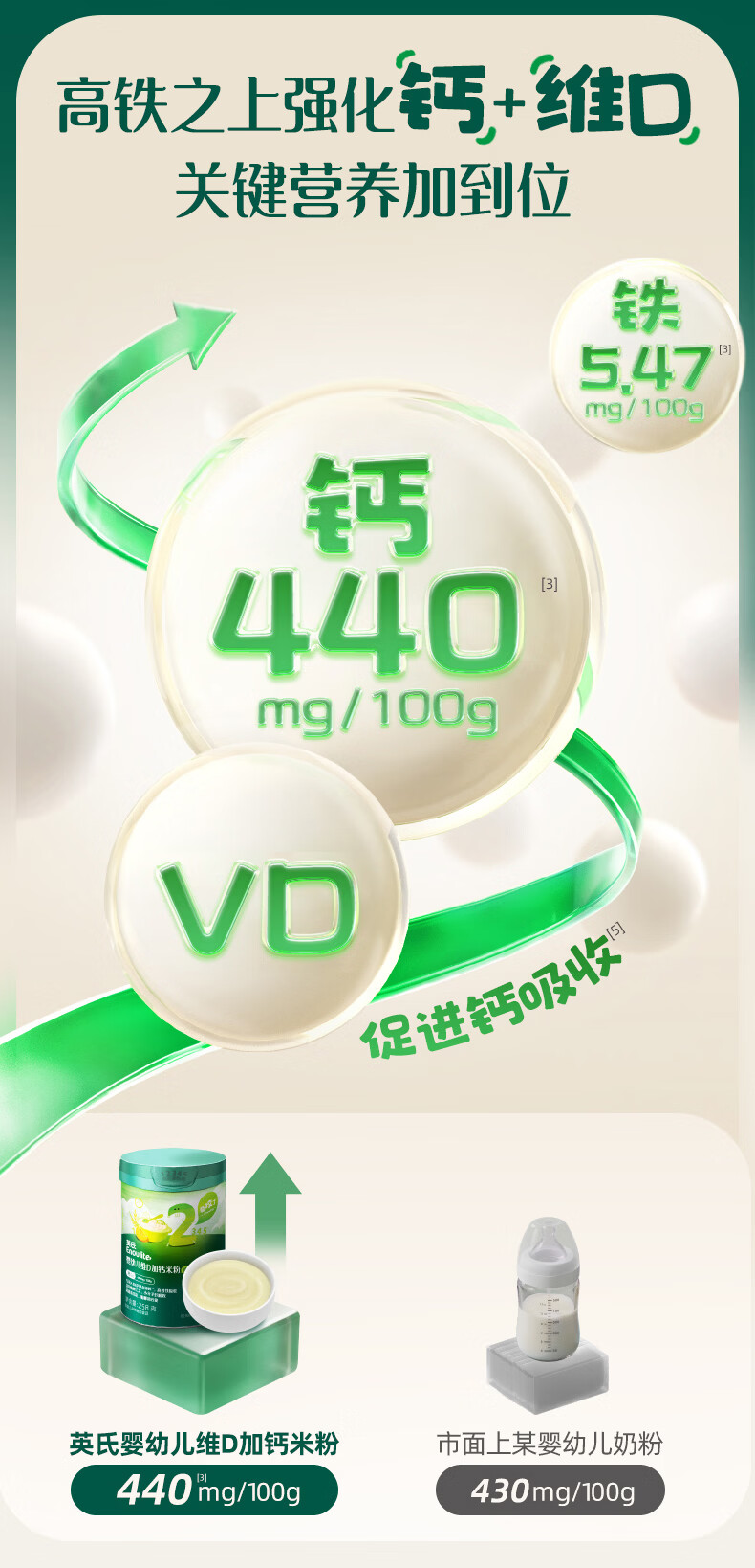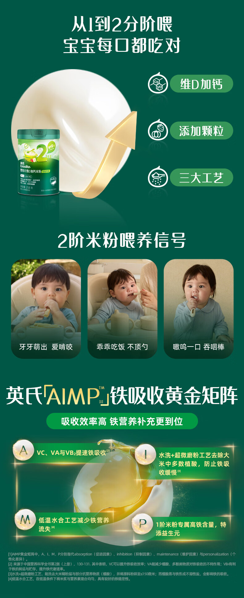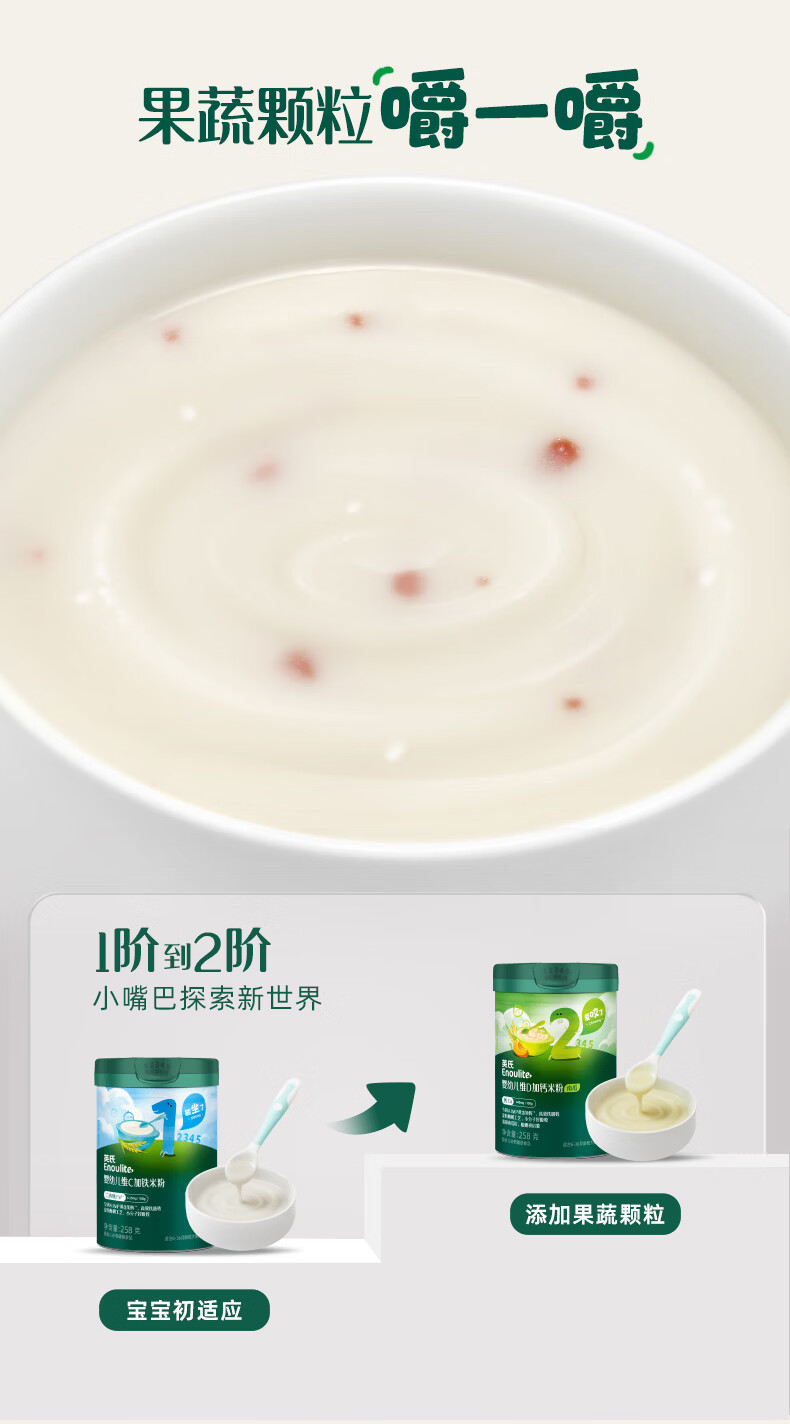英氏婴幼儿米粉菠菜加铁加钙258g宝宝辅食钙铁锌营养米糊2阶7月+