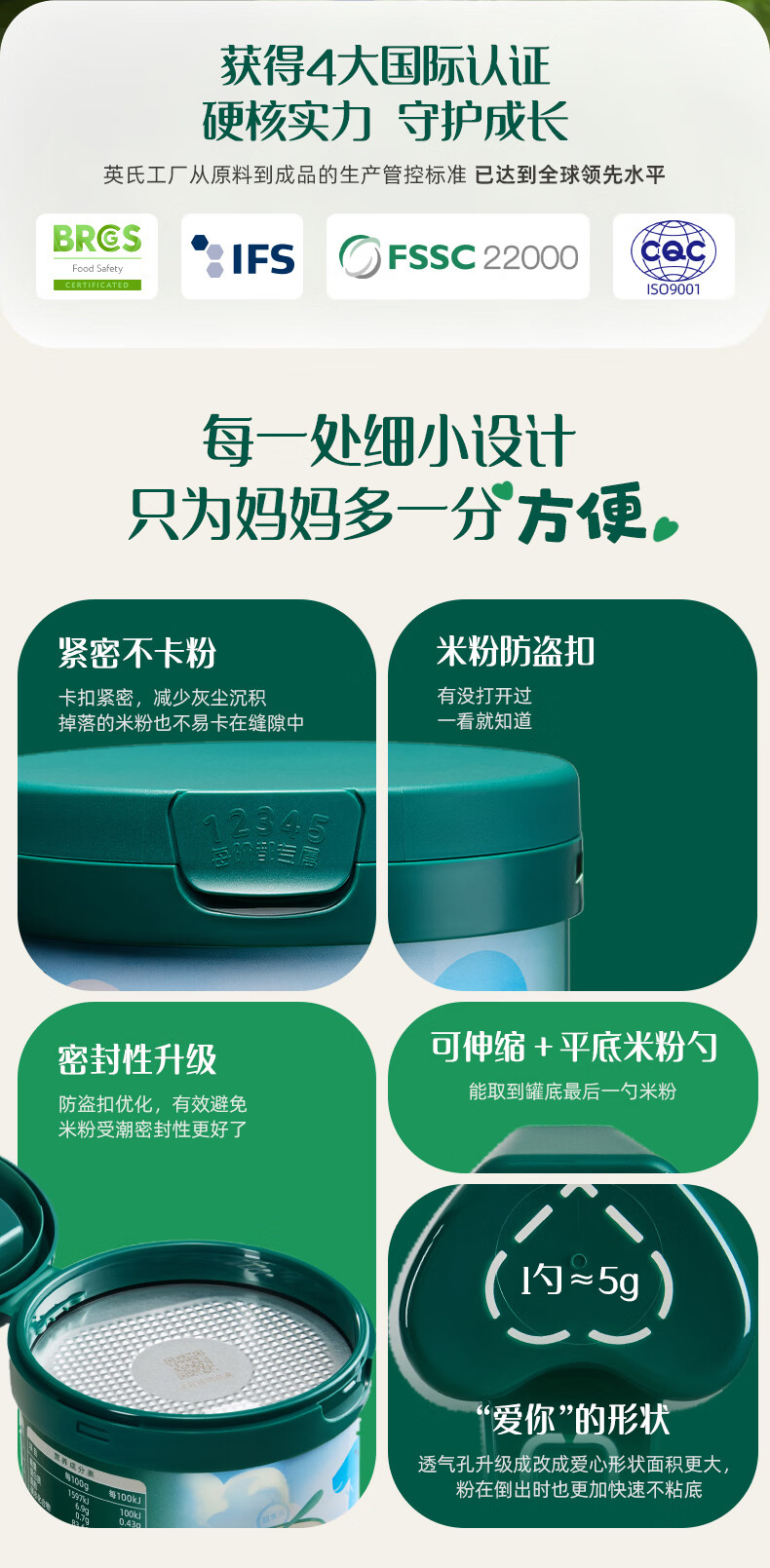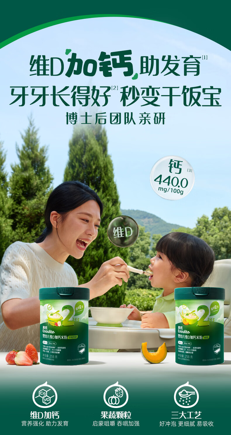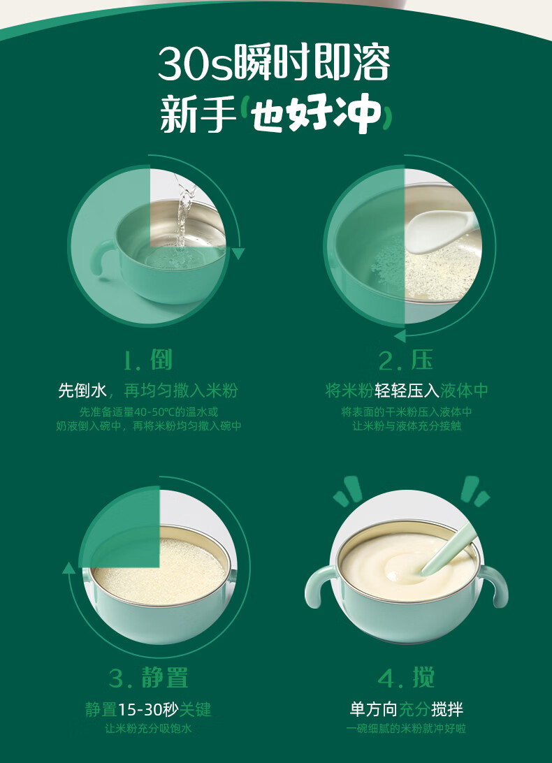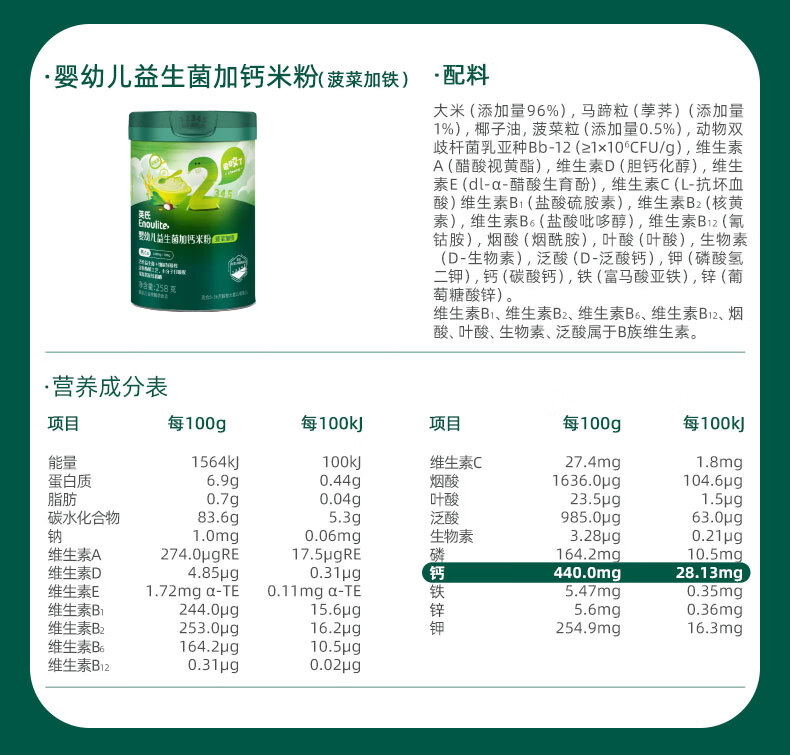 英氏婴幼儿米粉菠菜加铁加钙258g宝宝辅食钙铁锌营养米糊2阶7月+