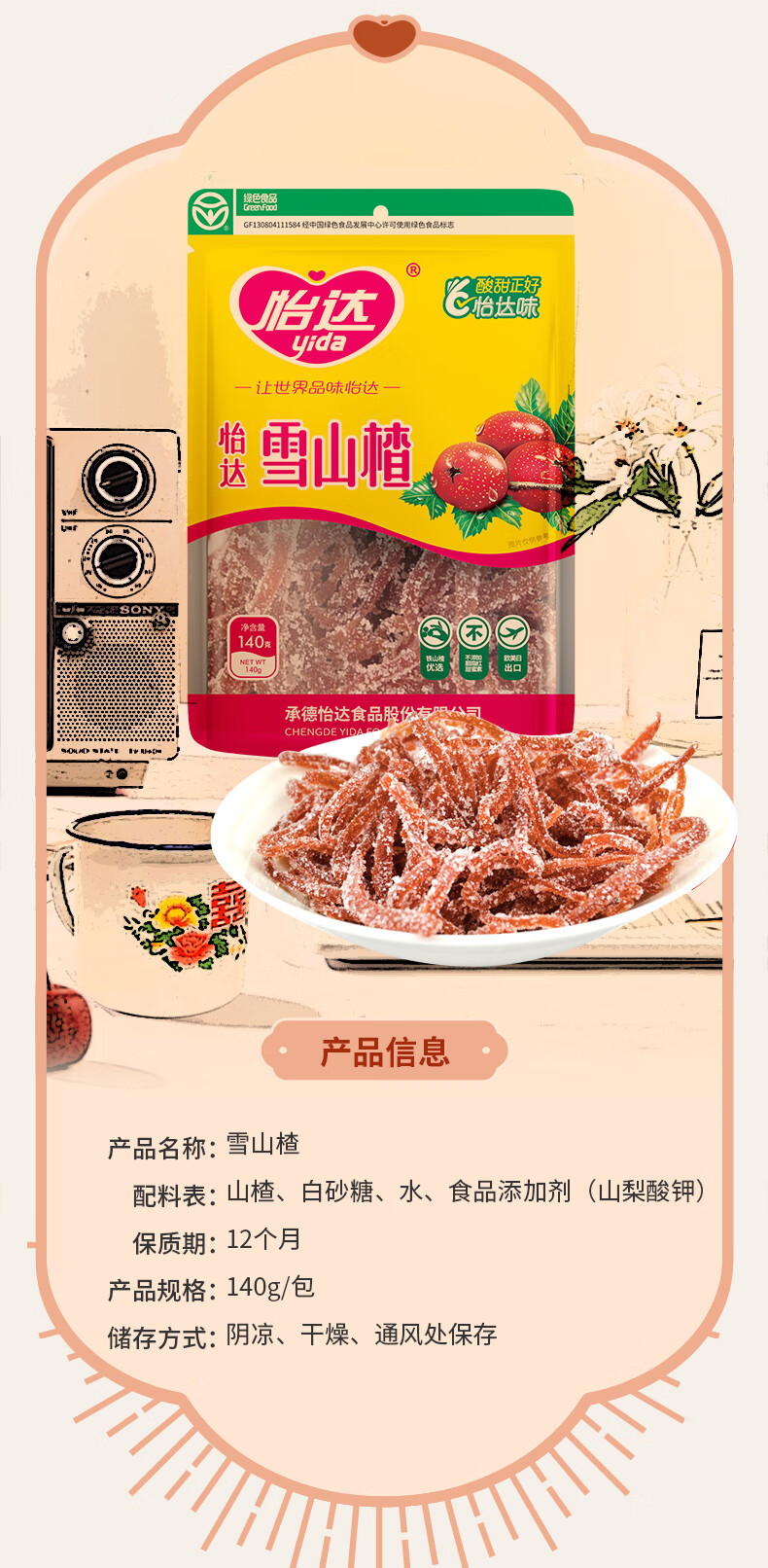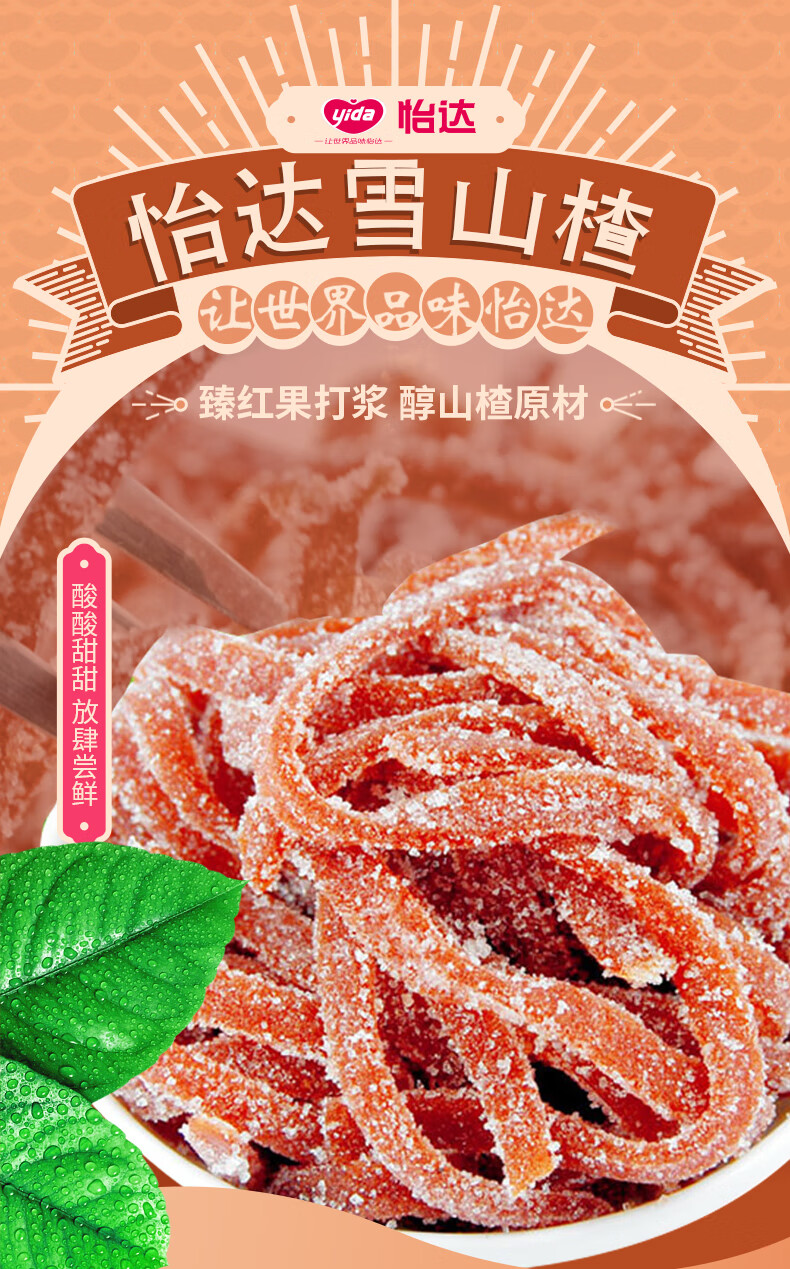 怡达绿色食品雪山楂140g 山楂丝条蜜饯果干果糕儿童休闲零食