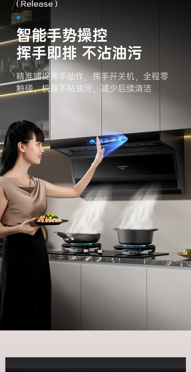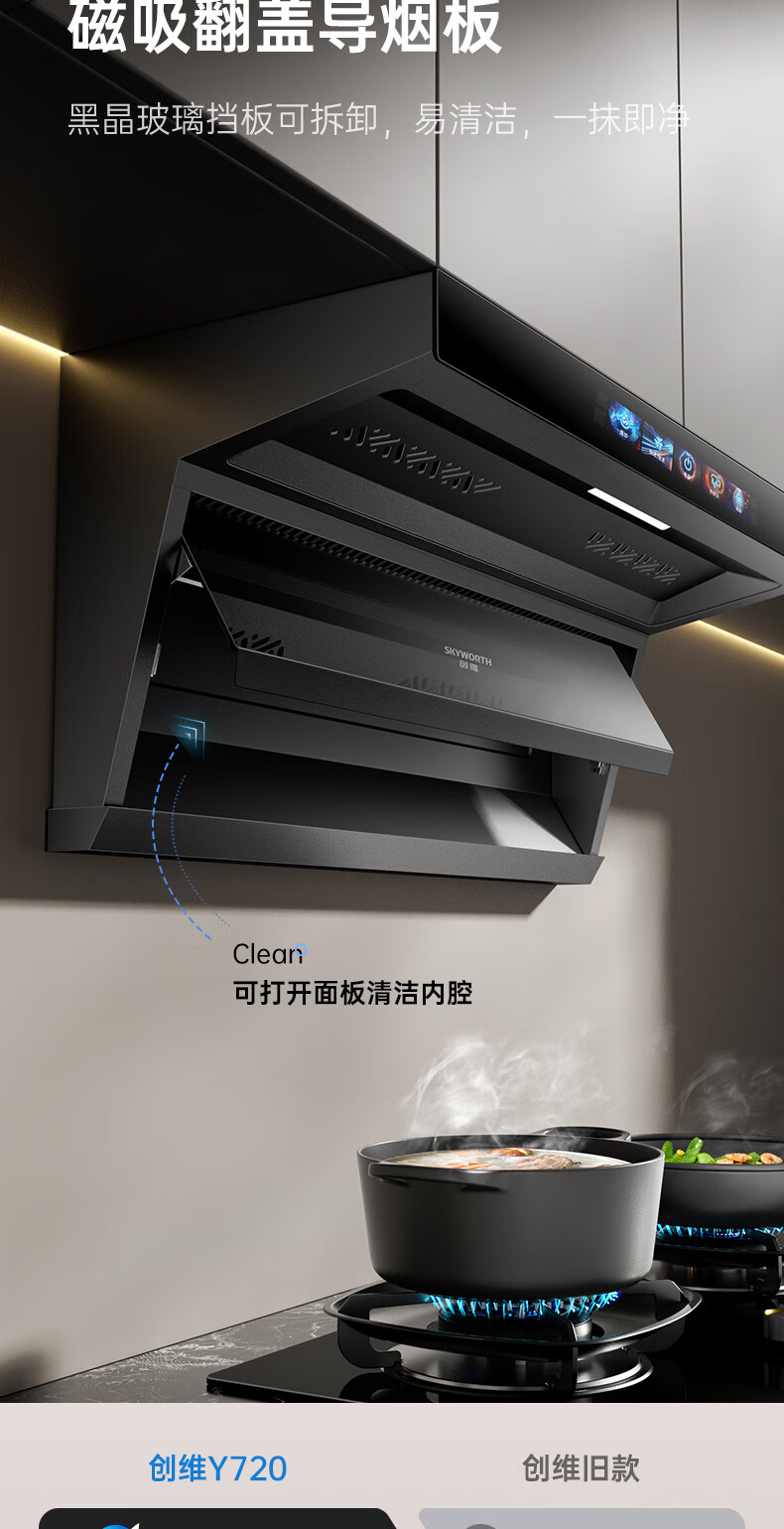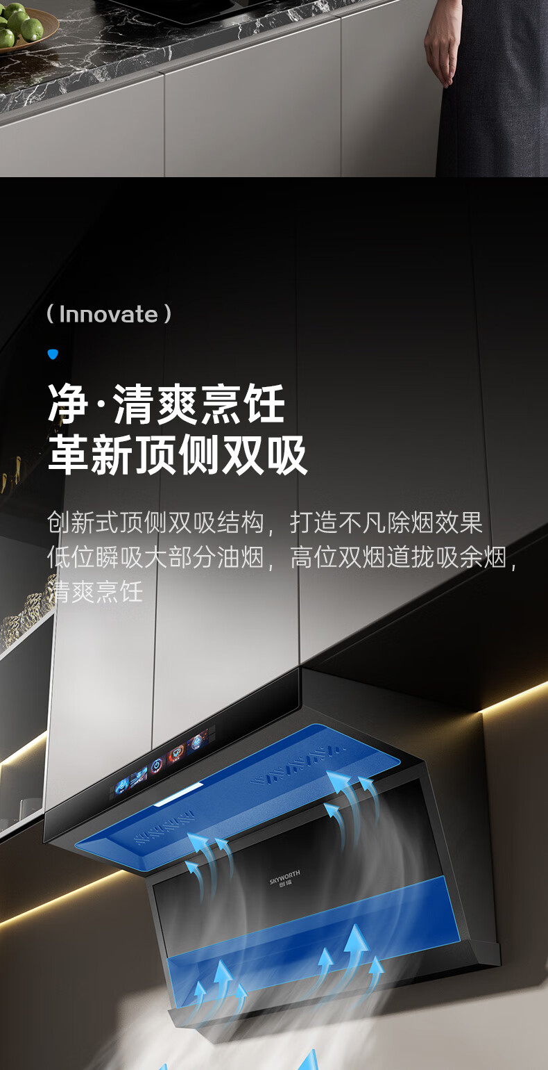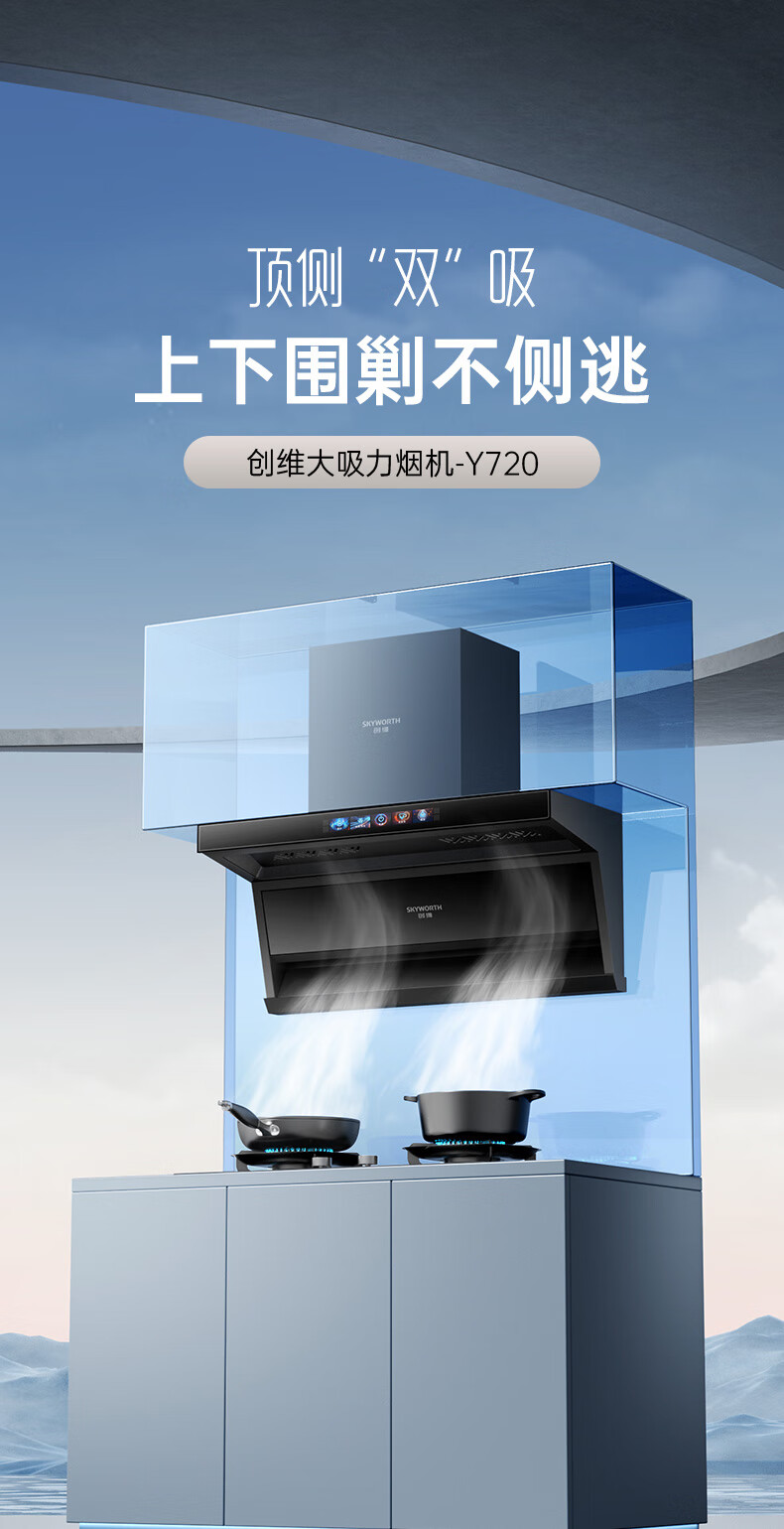 创维(Skyworth)顶侧三吸抽吸排油烟机家用 7字型顶吸侧吸 上门安装以旧换新 免拆洗挥手智控 一级能效自清洗Y720