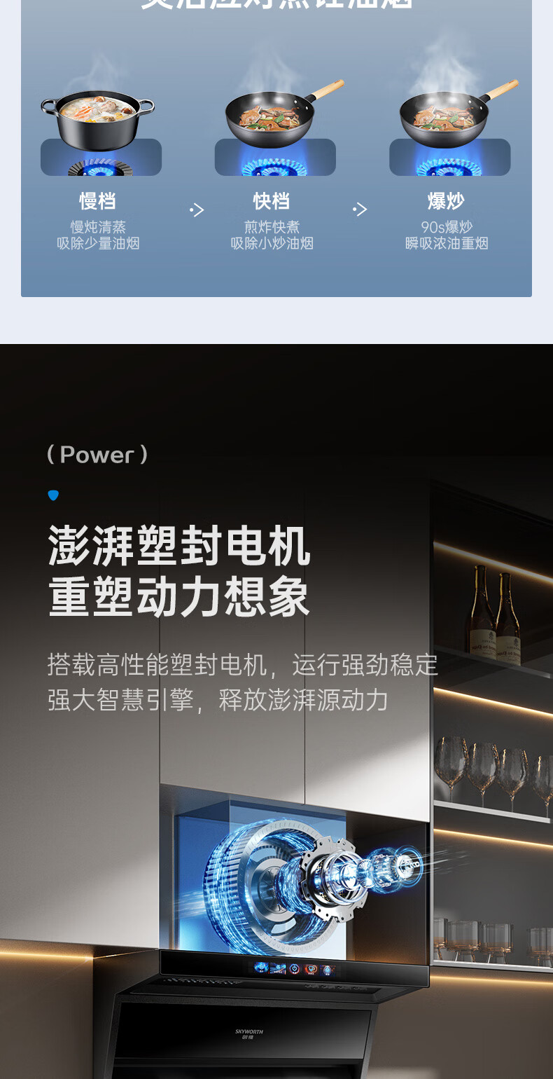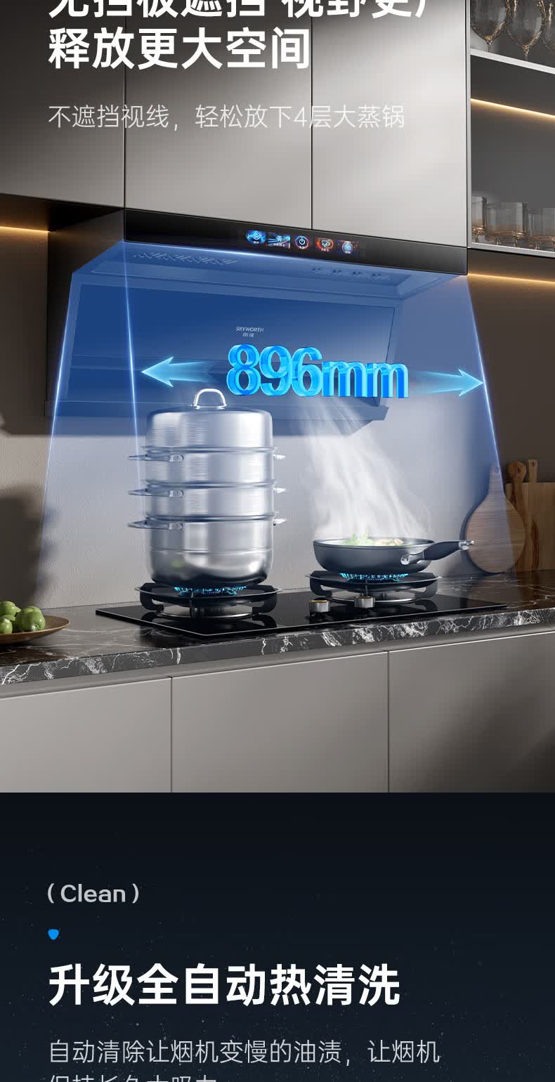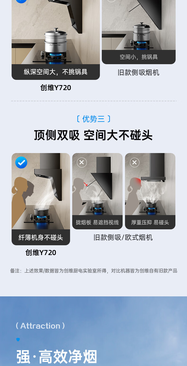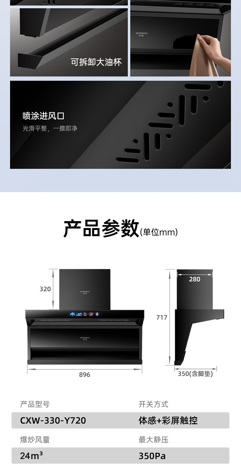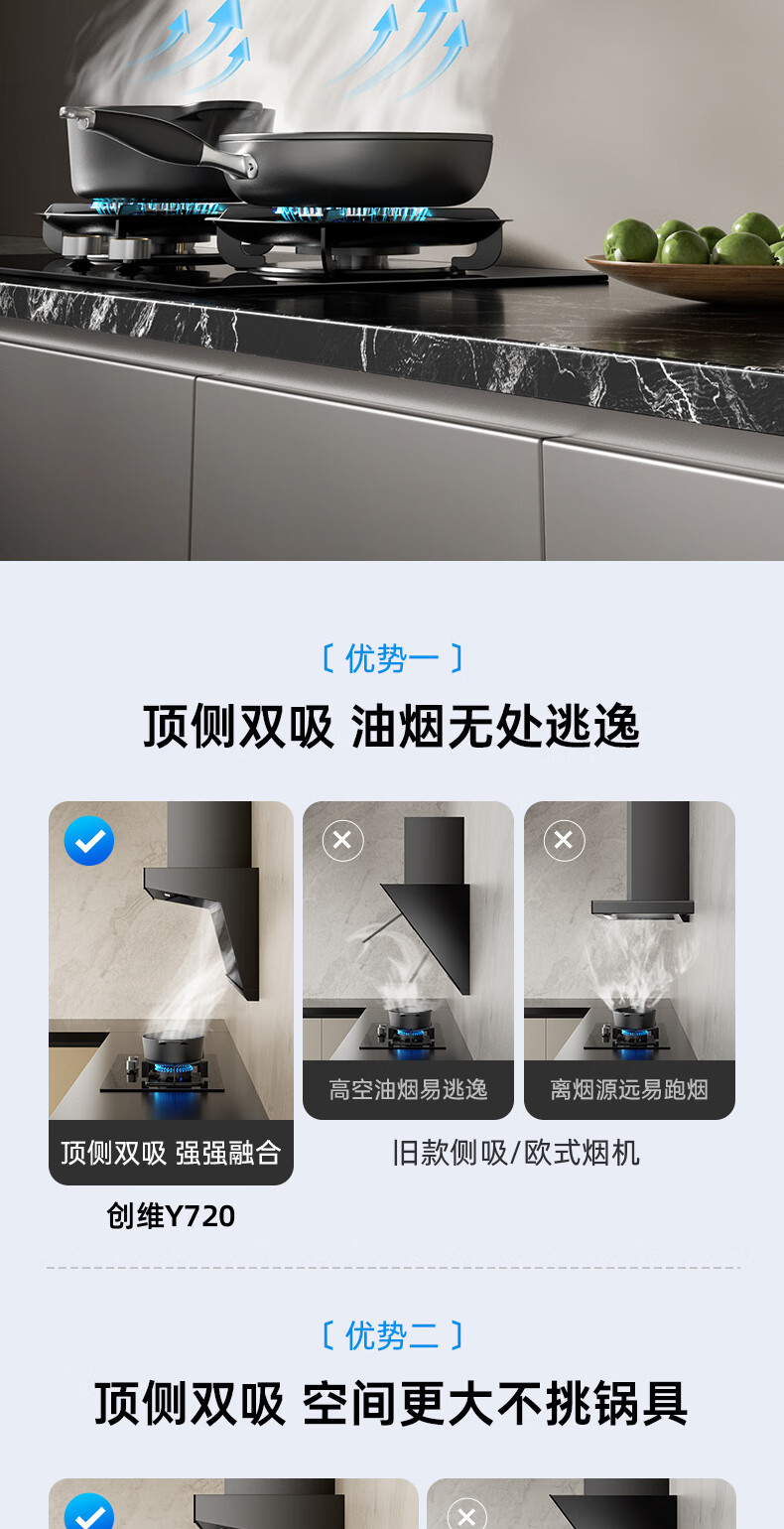创维(Skyworth)顶侧三吸抽吸排油烟机家用 7字型顶吸侧吸 上门安装以旧换新 免拆洗挥手智控 一级能效自清洗Y720