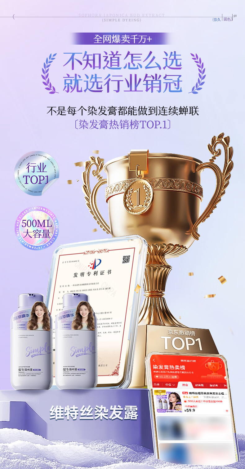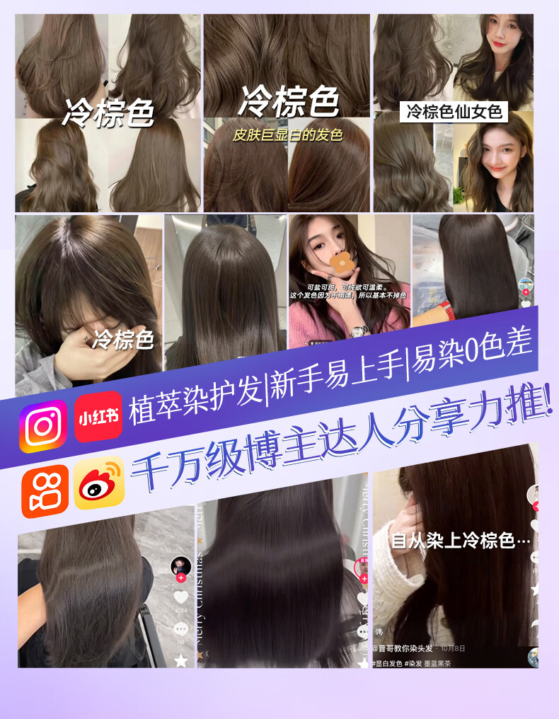 维特丝染发膏纯植物天然无刺激不沾头皮染发剂遮盖白发染头膏黑茶色男女