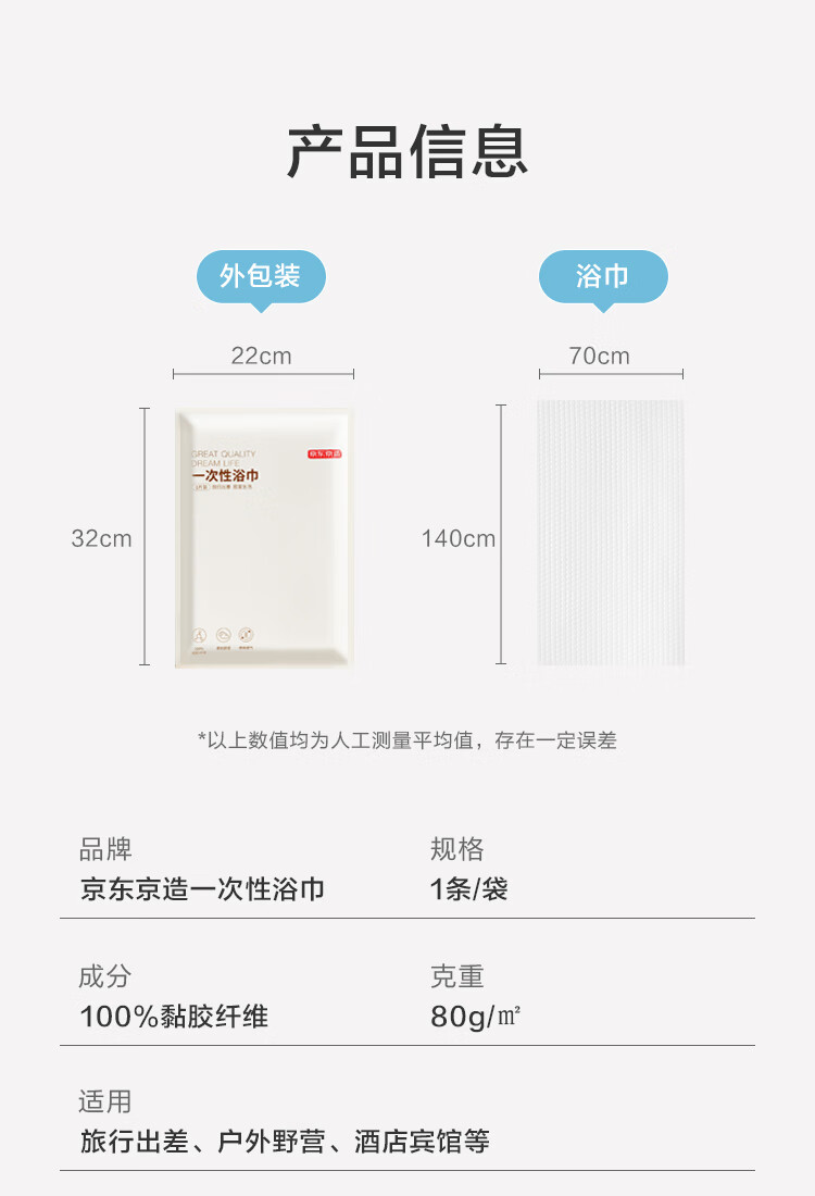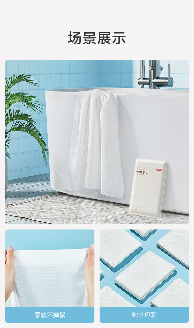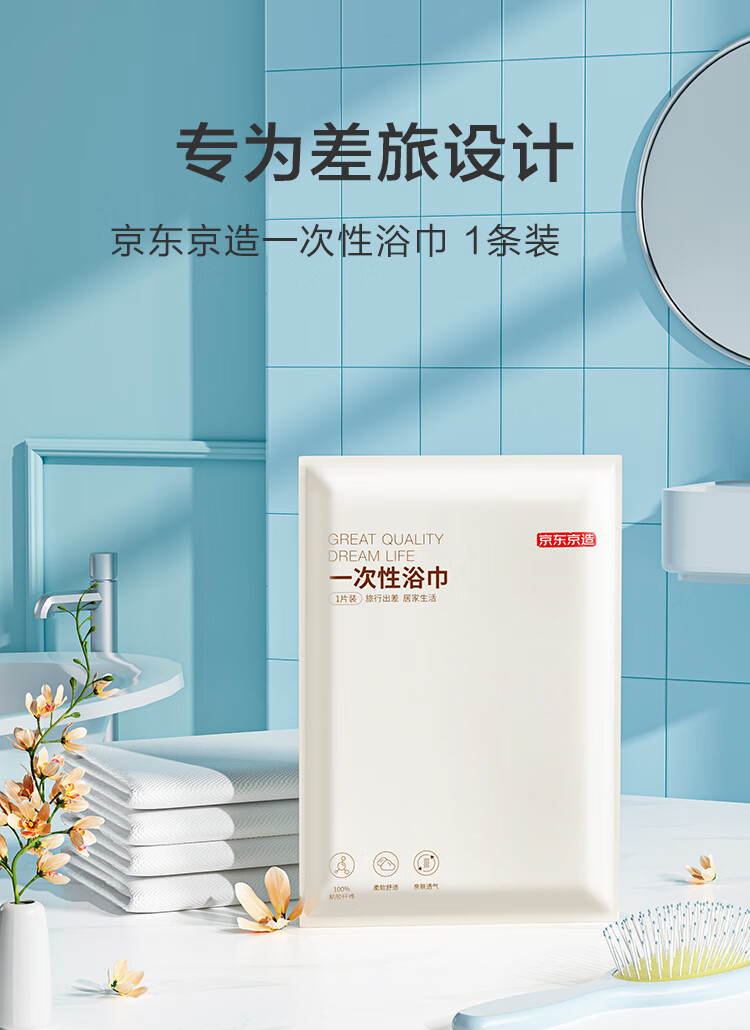 京东京造【加长70*140cm】一次性浴巾 加大毛巾浴巾出差旅行酒店便携
