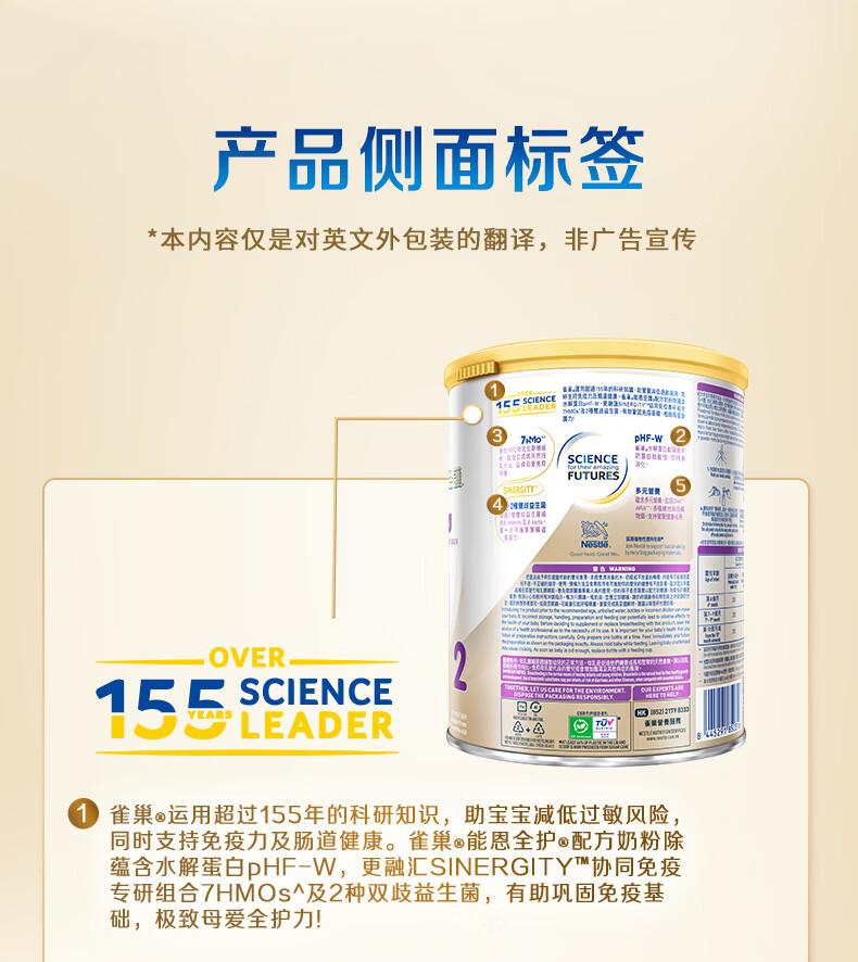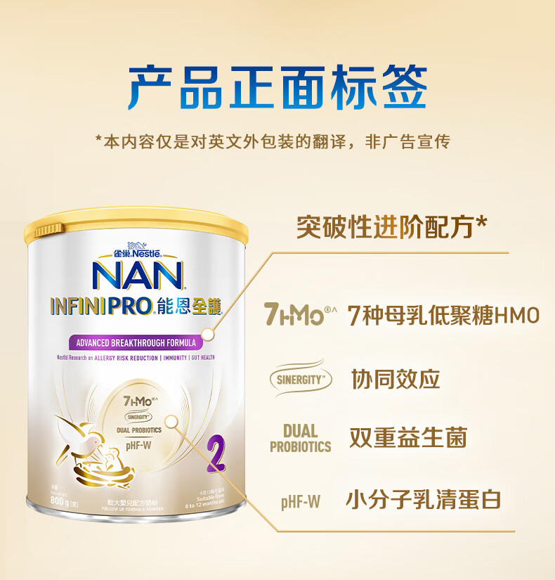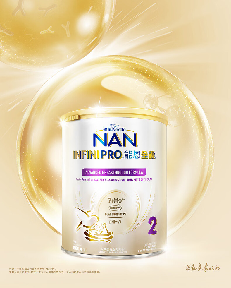 雀巢(Nestle)升级能恩全护尖峰水解【7HMOs+双益生菌】2段800g/罐6-12个月低敏
