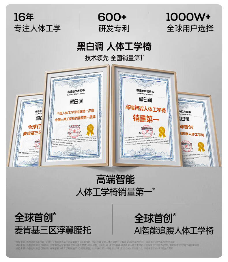 黑白调X7人体工学椅电脑椅办公椅人工力学座椅按摩加热AI智能追腰
