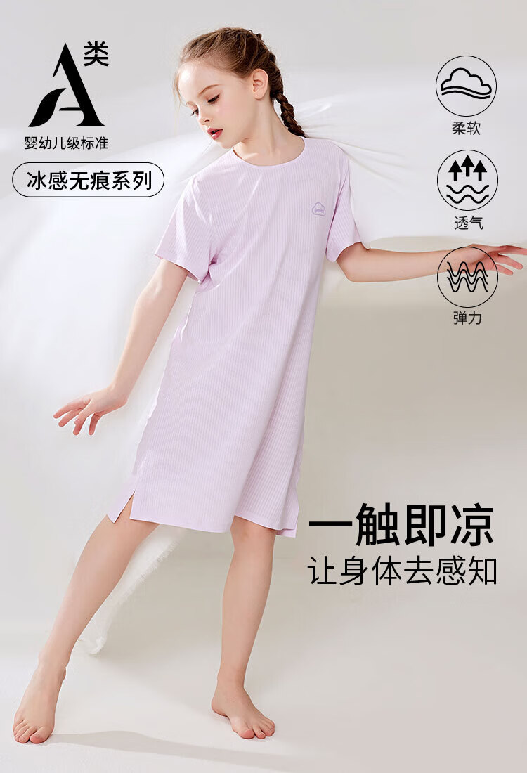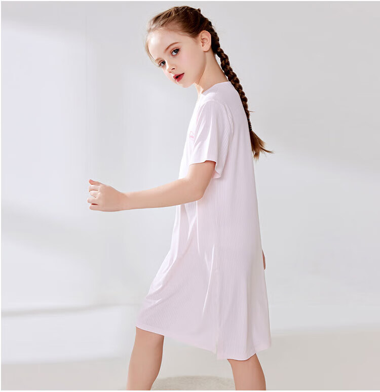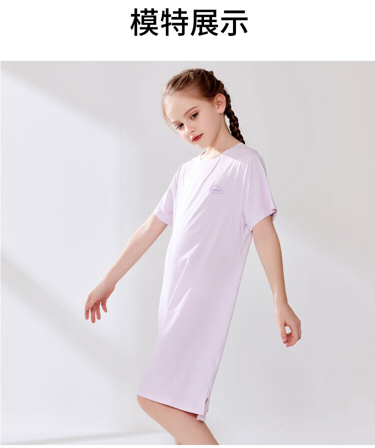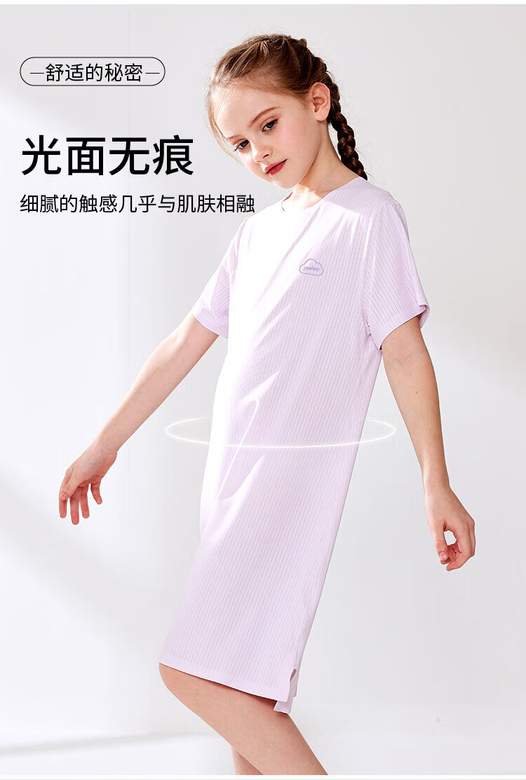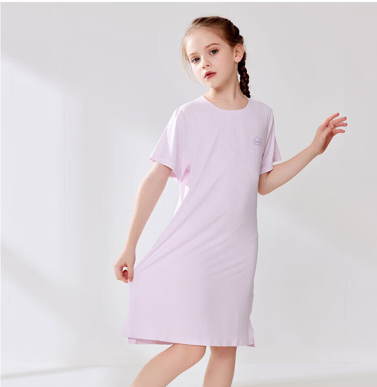 英氏(YEEHOO)儿童睡裙女孩短袖睡裙中童家居服冰丝无痕透气A类小童家居裙 粉色 140