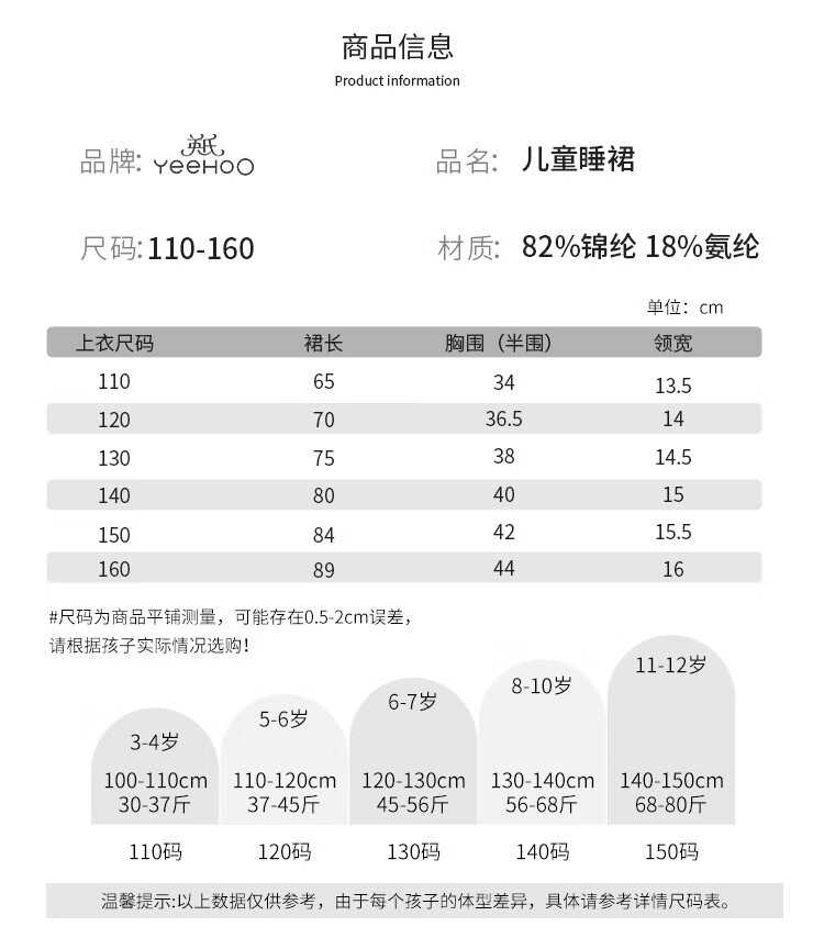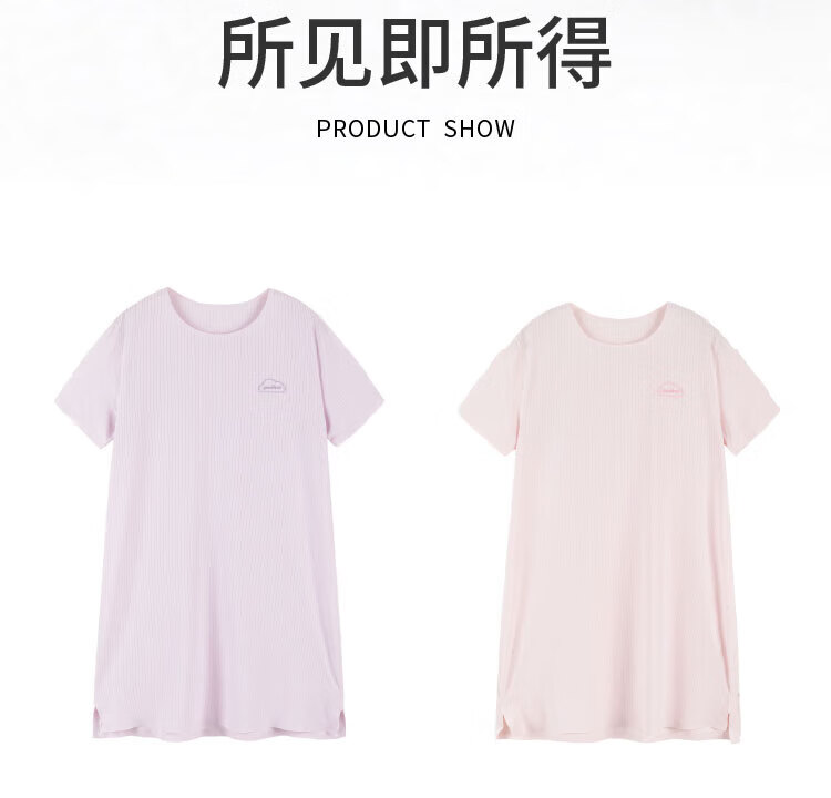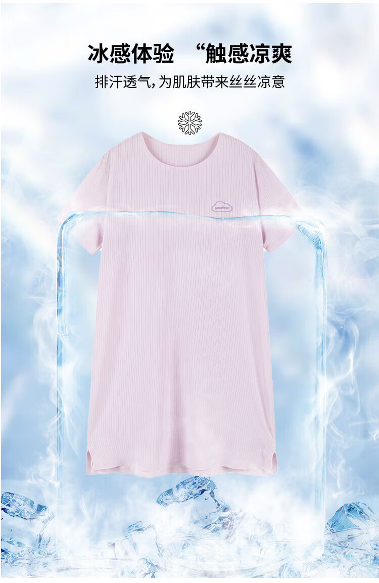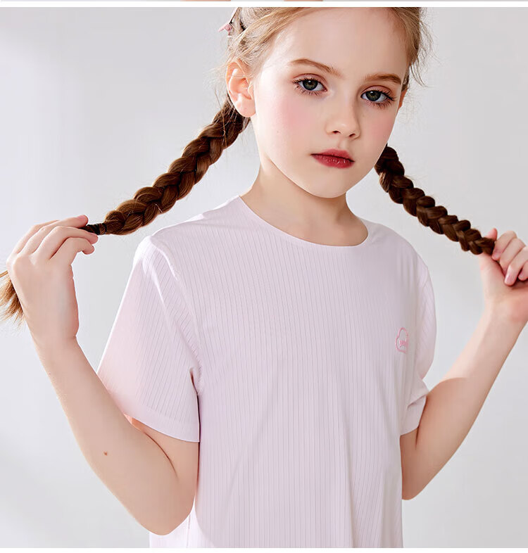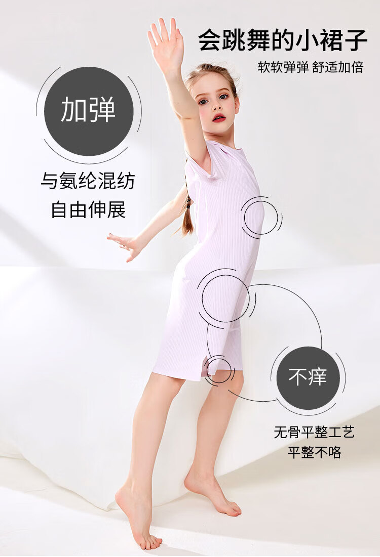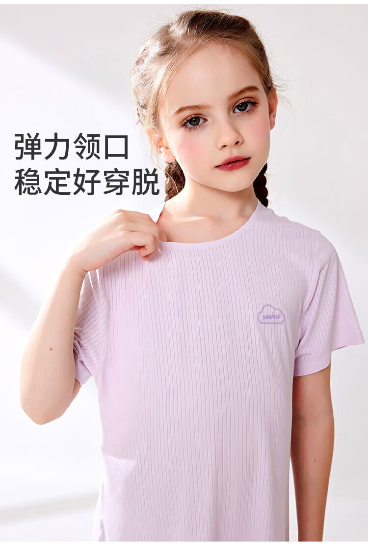 英氏(YEEHOO)儿童睡裙女孩短袖睡裙中童家居服冰丝无痕透气A类小童家居裙 粉色 140