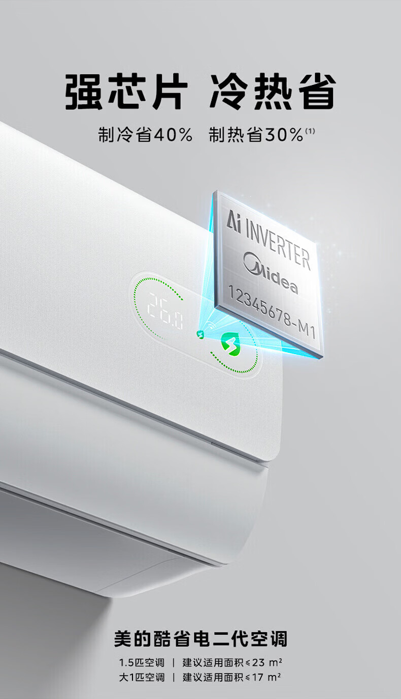 美的(Midea)空调挂机套装 酷省电二代 26年新品 新一级能效变频冷暖卧室空调家用节能 挂挂组合双排纯铜管 【新品】酷省电二代大1匹两台