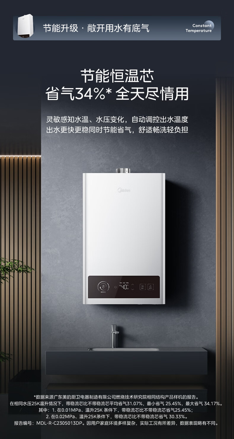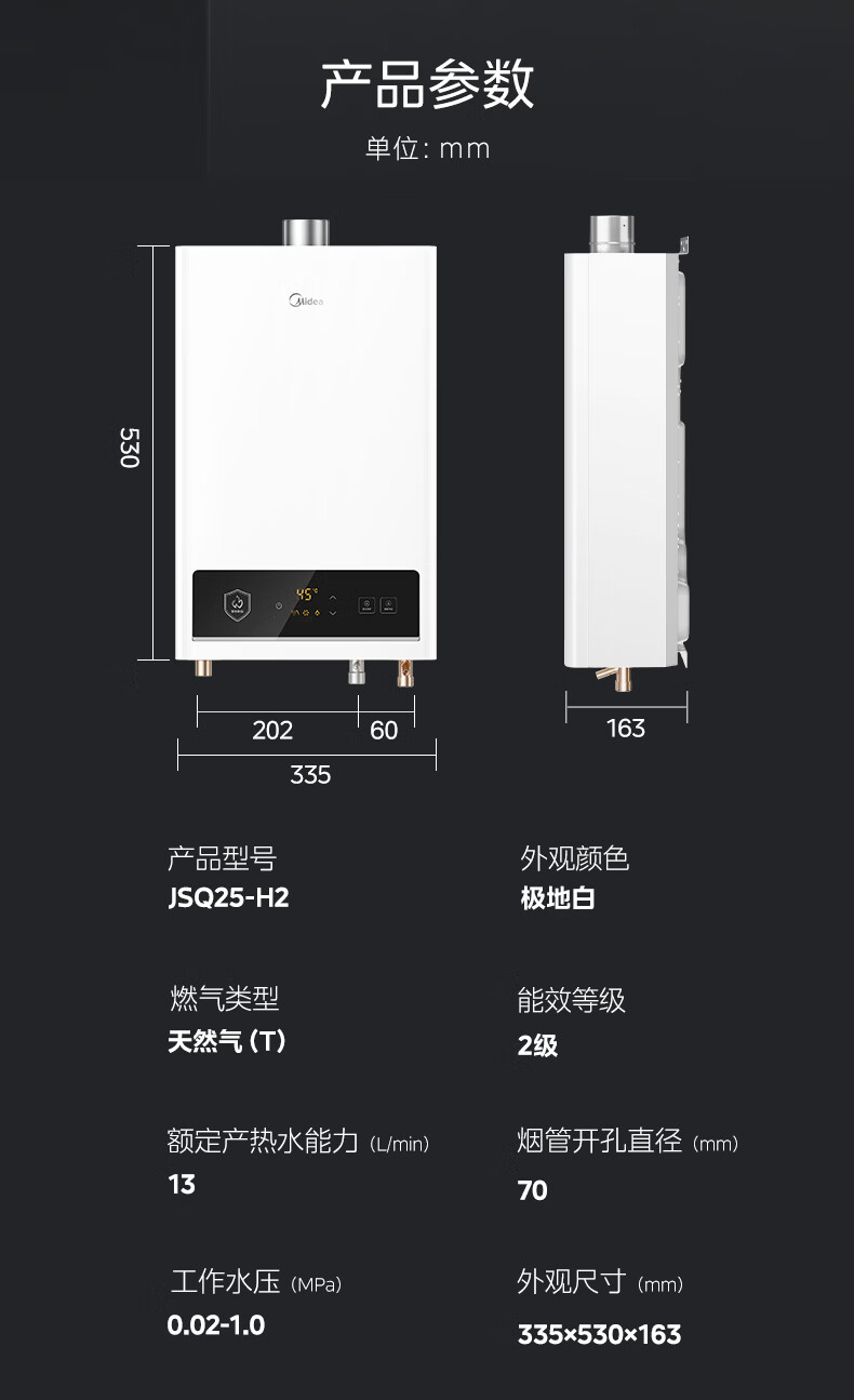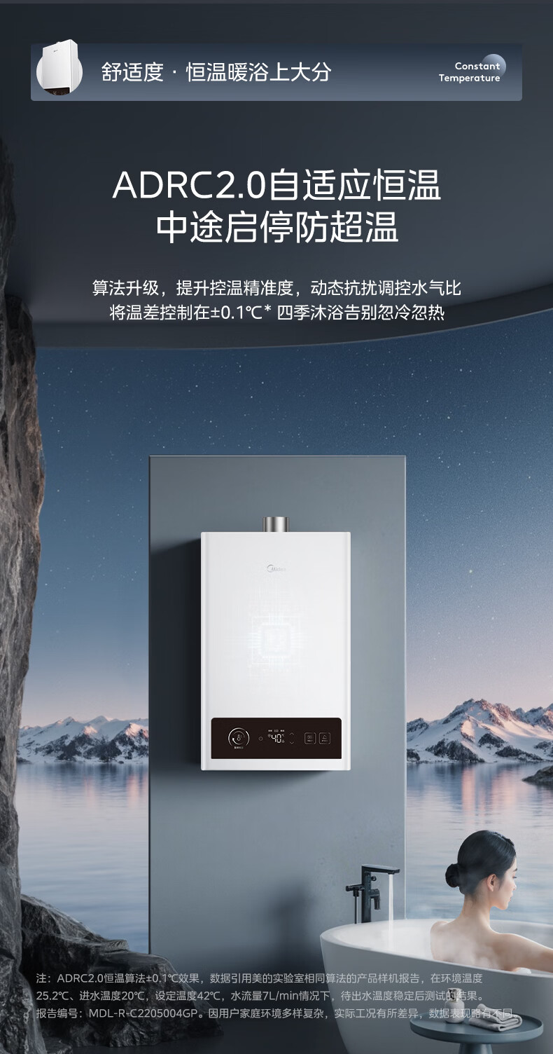 美的(Midea)燃气热水器 ADRC2.0自适应恒温节能 升级大屏按键 5重净滤呵护敏感肌 13L 节能恒温 H2