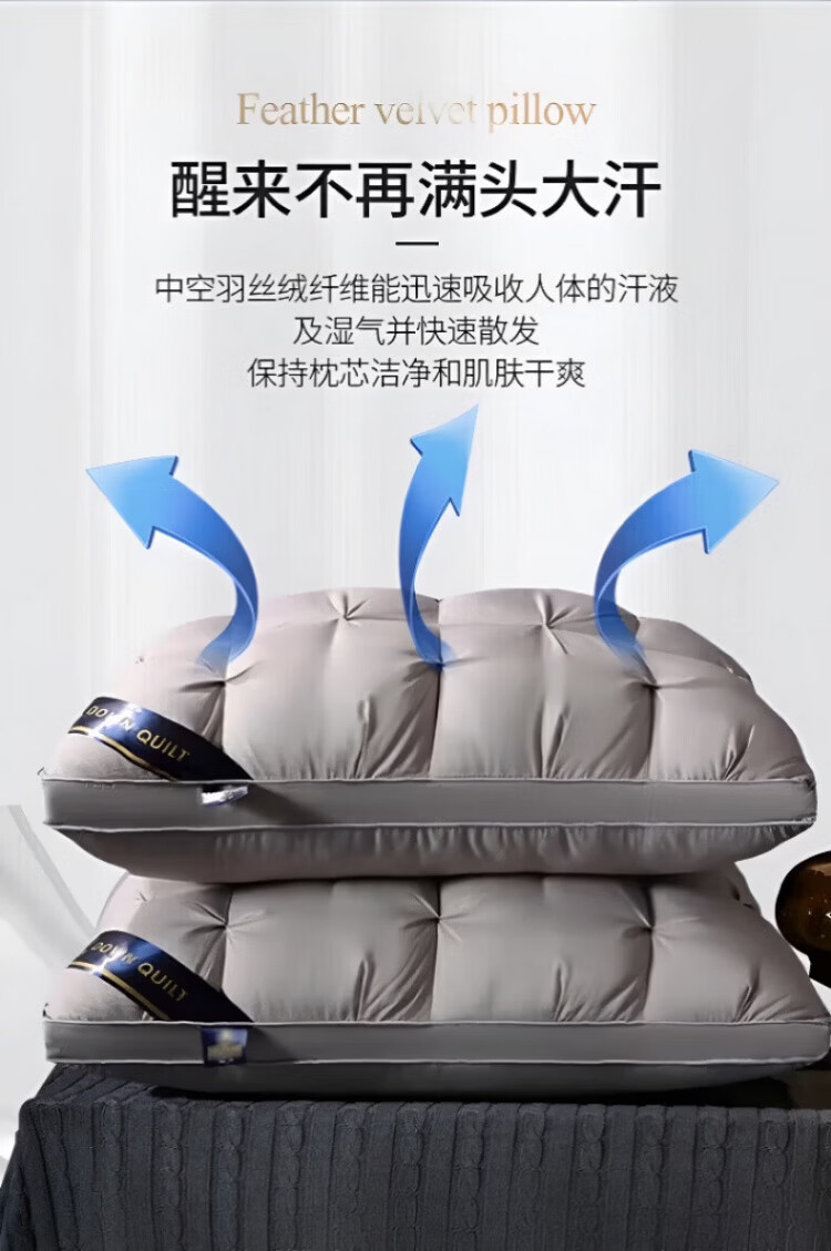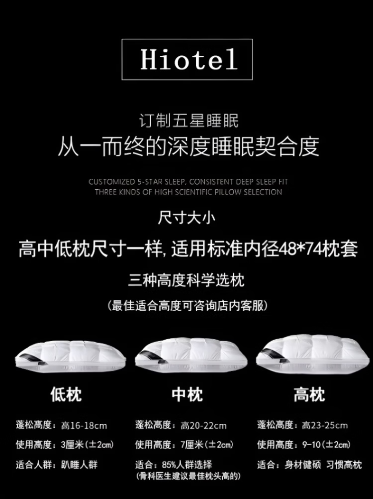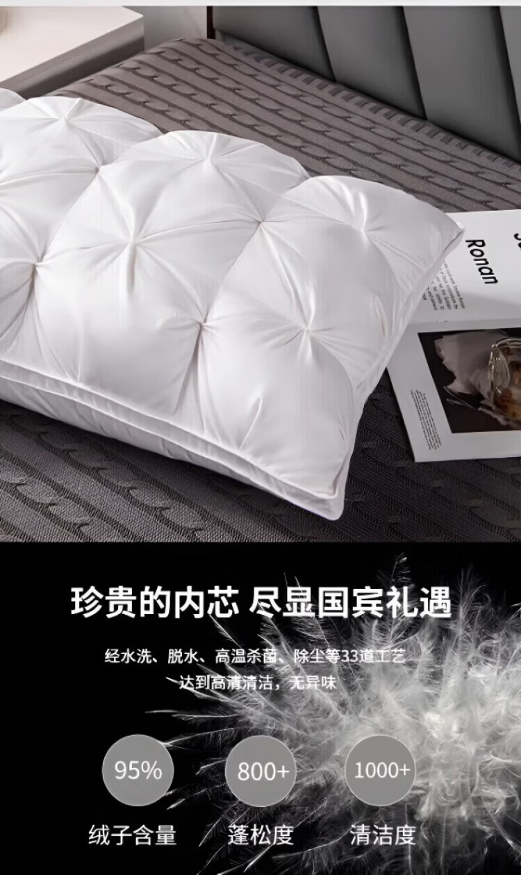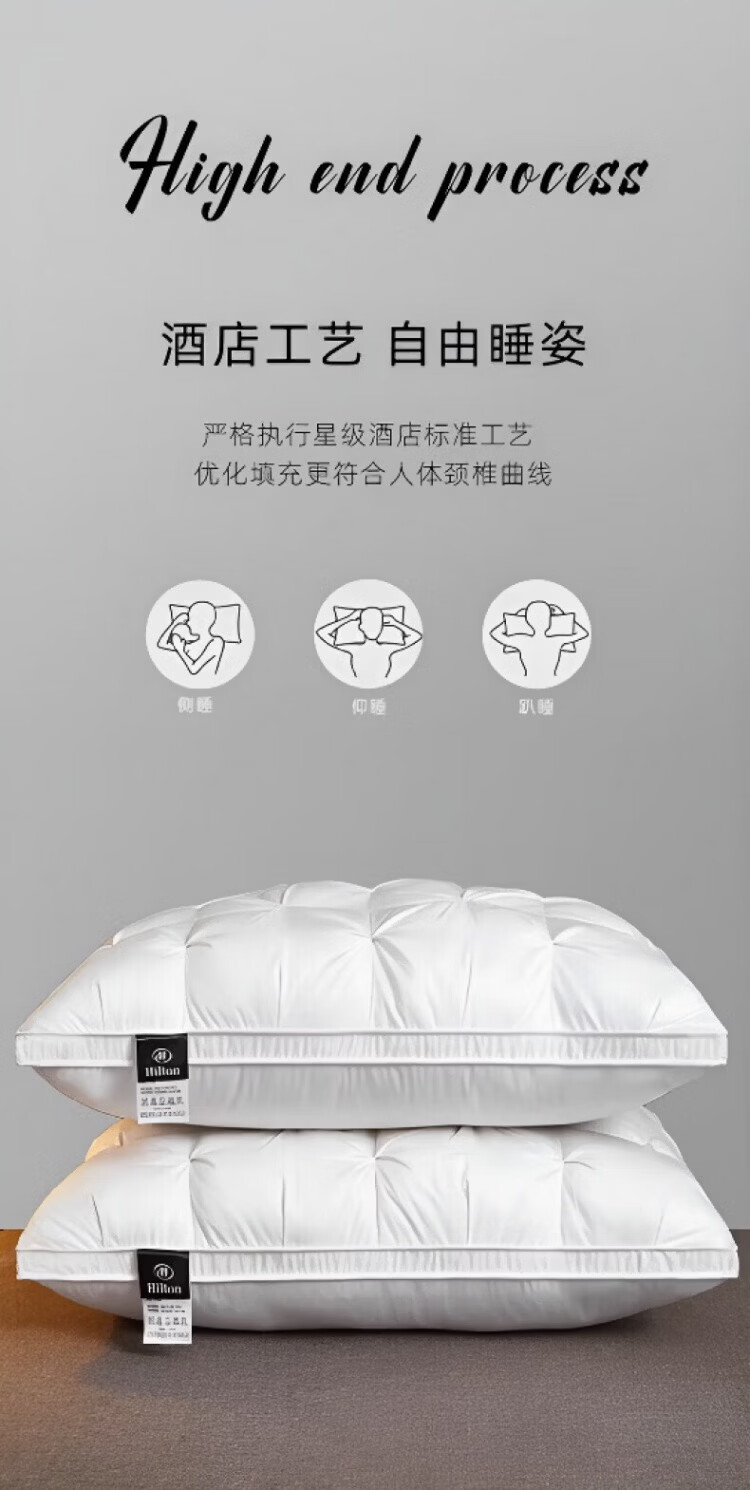 飒望【德国】希尔顿羽丝绒枕头护颈枕颈椎病深度睡眠专用酒店五星级 绅士灰【48*74cm高枕】柔软蓬松 细腻亲肤 A类 单只 至臻品质【全网热销100W+】皇家护颈深睡枕