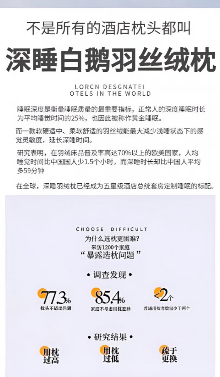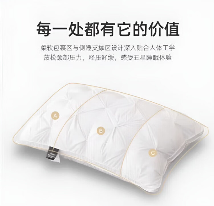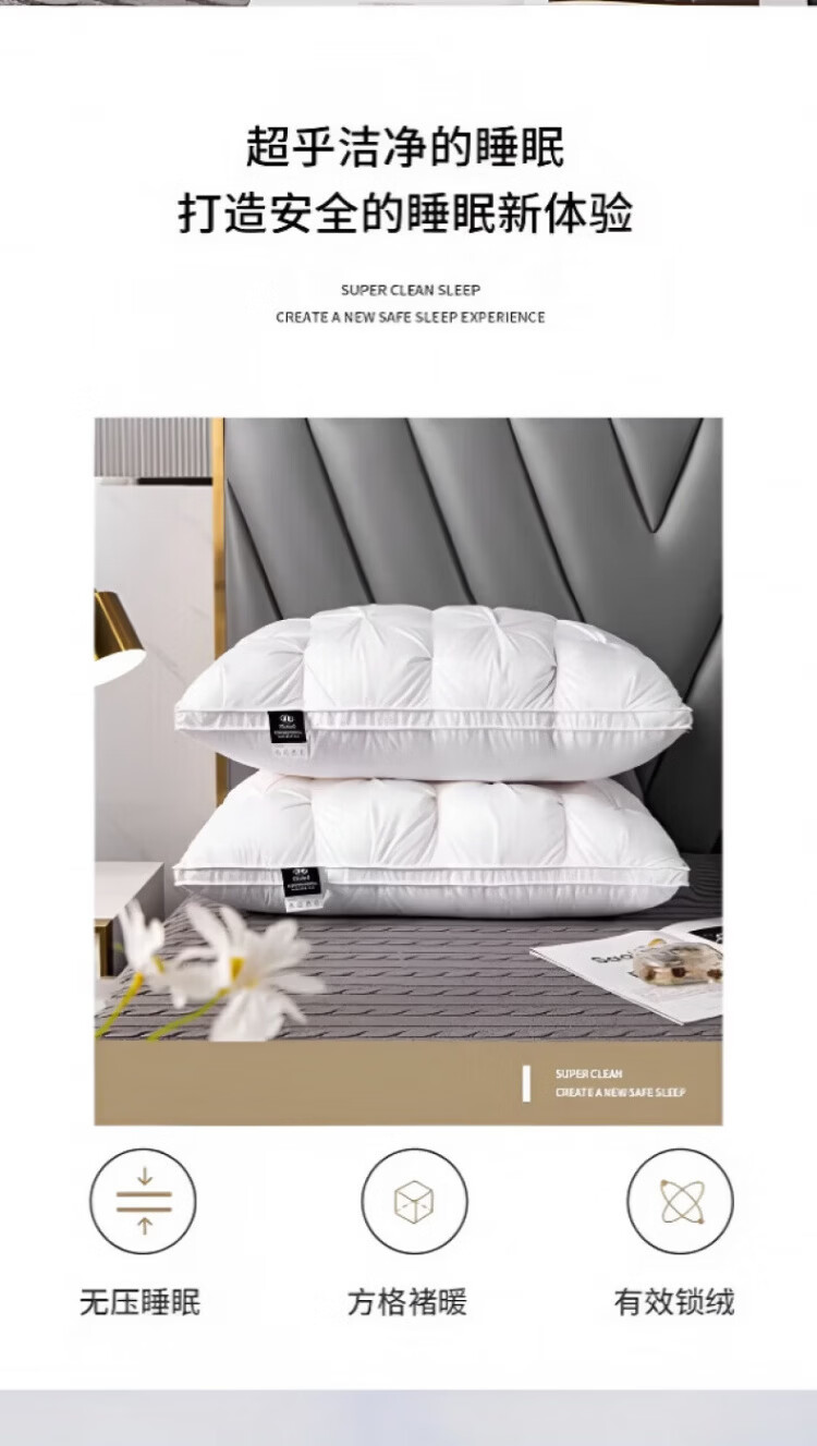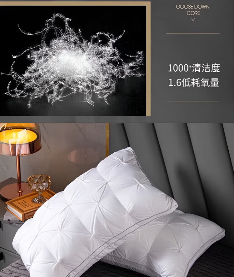 飒望【德国】希尔顿羽丝绒枕头护颈枕颈椎病深度睡眠专用酒店五星级 绅士灰【48*74cm高枕】柔软蓬松 细腻亲肤 A类 单只 至臻品质【全网热销100W+】皇家护颈深睡枕
