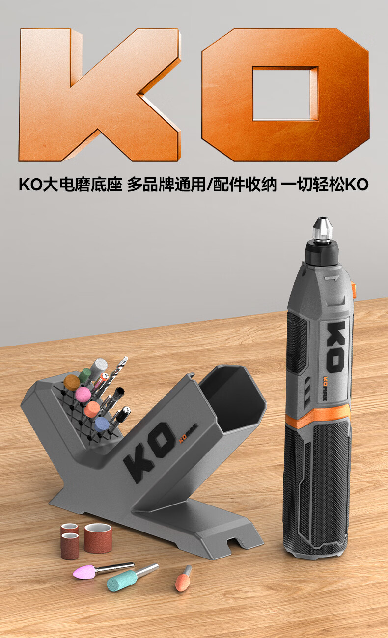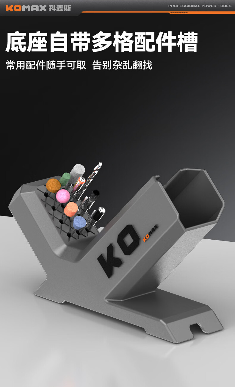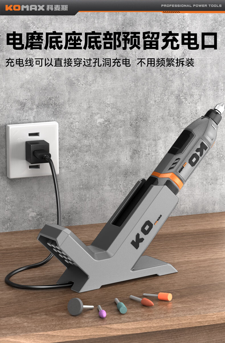 科麦斯(KOMAX)锂电数显8档电磨便携式快速充电底座切割机打磨抛光电动工具套装 灰色底座+【数显8档调速】KO插电款电磨+31件套