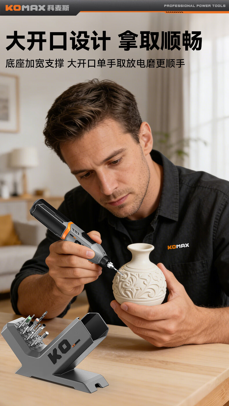 科麦斯(KOMAX)小型手持锂电电磨笔文玩玉石打磨打孔雕刻工具电动工具抛光神器 KO大电磨底座