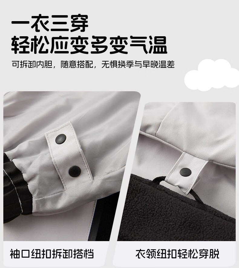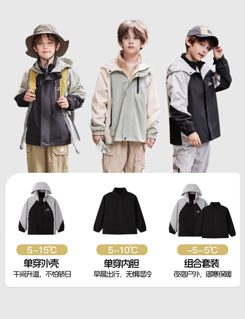 雪中飞【三合一儿童外套】童装男童加厚上衣女童两件套户外可拆卸外套 艾叶绿(0449) 170