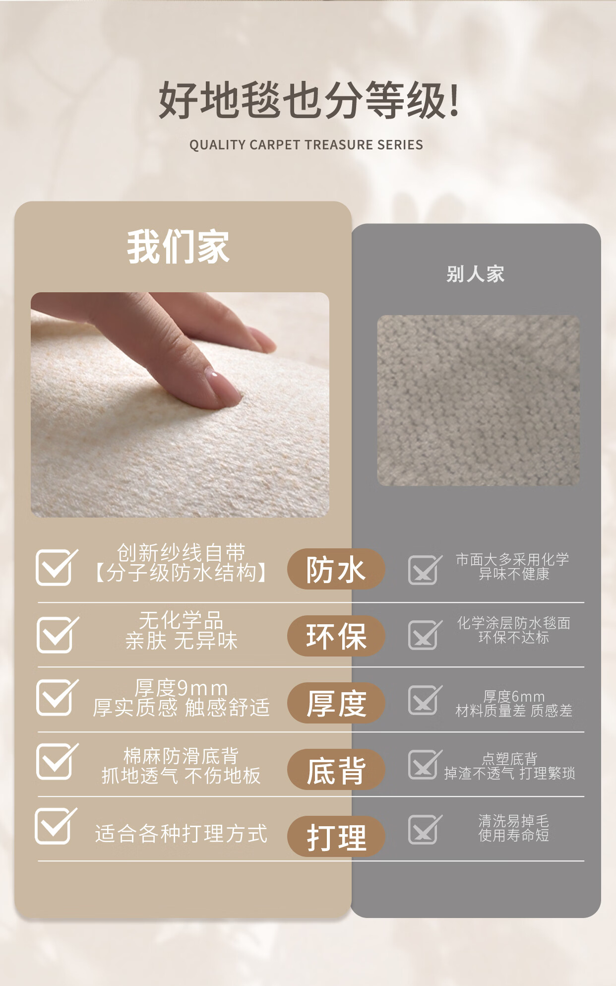 Y U-LIVE地毯客厅侘寂风2026新款轻奢高级全铺大面积免洗可擦沙发卧室 S仿羊绒-逐浪 200*300CM【客厅优选尺寸】