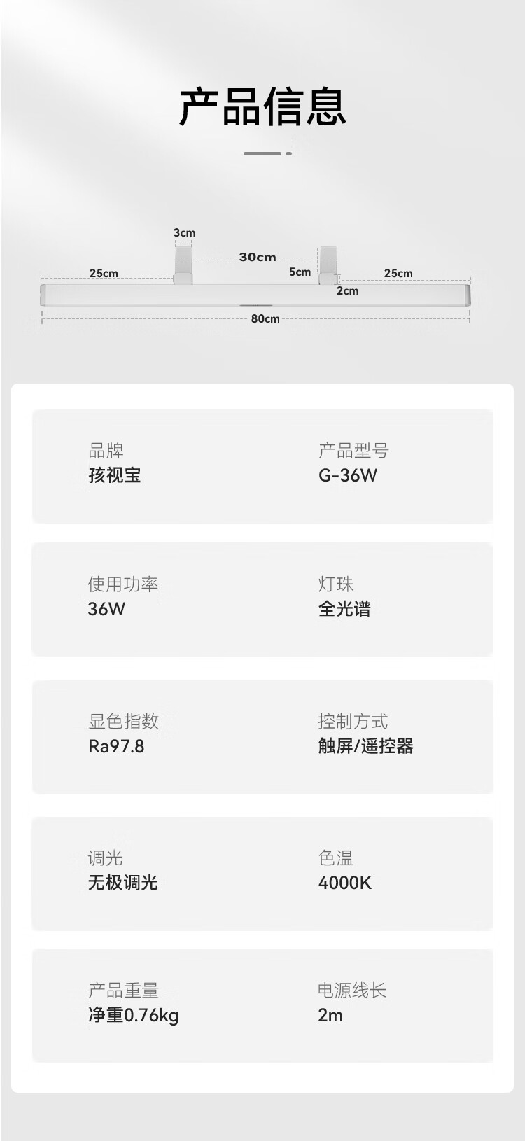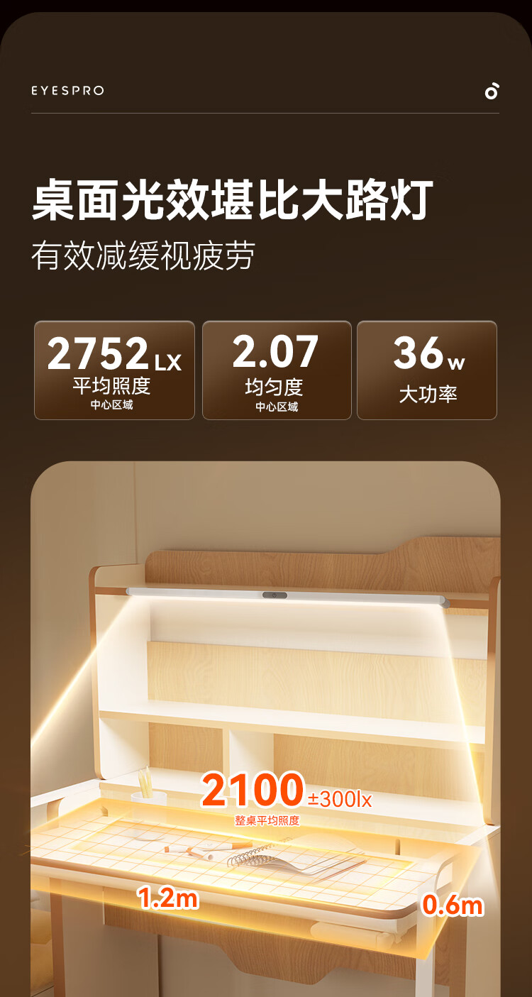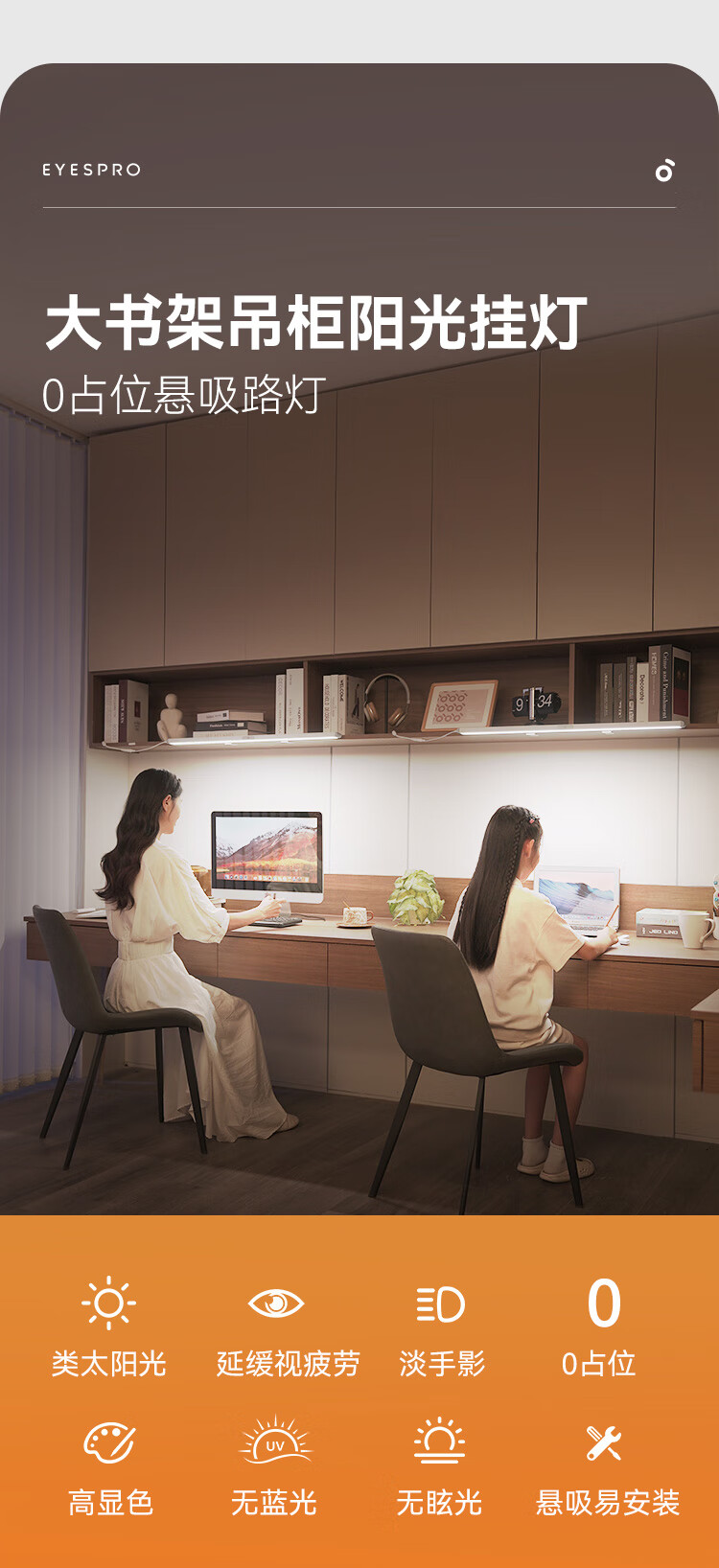 孩视宝夹式护眼台灯吊柜桌面大路灯儿童学生学习全光谱悬挂壁挂灯GA-36W